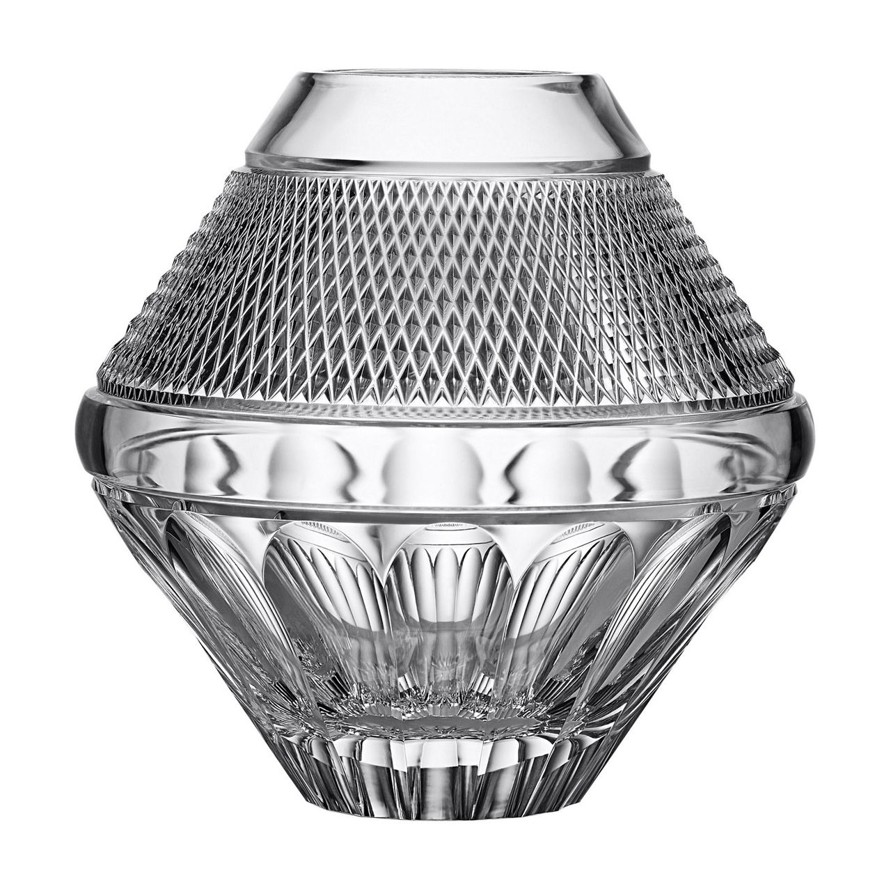 Taking inspiration from the unrefined charm of Ireland's coastal landscapes, the Copper Coast collection is skilfully hand-crafted by the Master Craftsmen at Waterford. This crystal vase, marked by an impressive central band of caro cuts reflecting the rhythmic ebb and flow of the ocean, embodies a time-honored Irish tradition of uniting people.