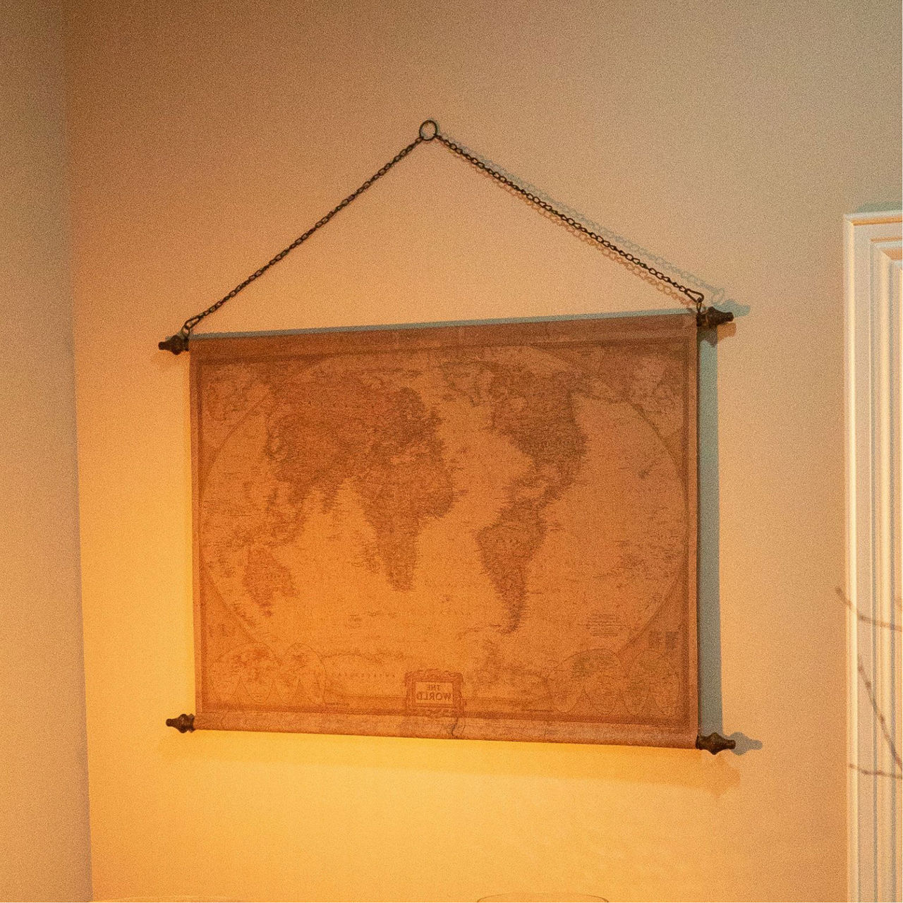 This vintage world map from Mindy Brownes is a classic addition to your home. This hanging wall piece adds an unique element to any space.