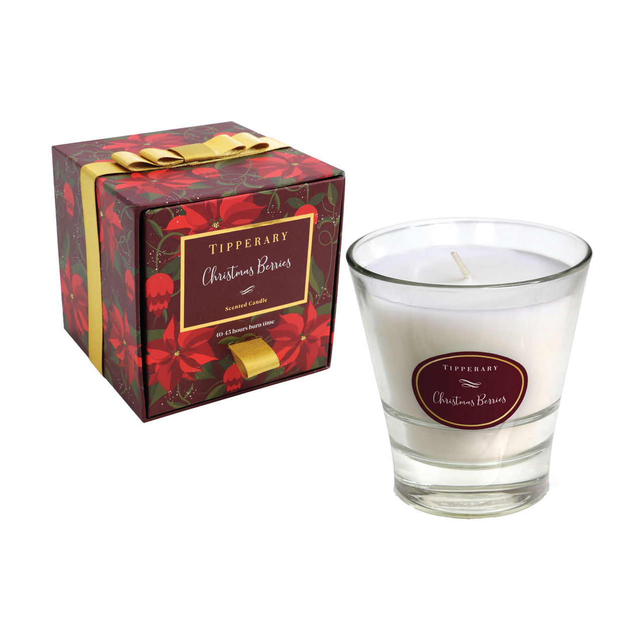 TIPPERARY CRYSTAL Poinsettia Christmas Berries Candle
