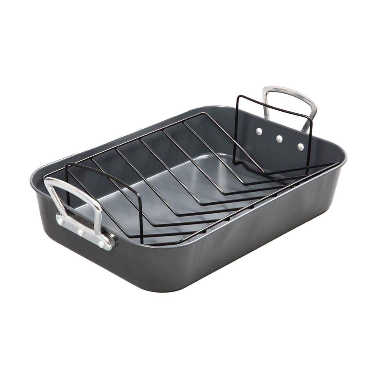 Cook up a storm with the Daewoo Pro Chef roasting tin and rack. With a non-stick Teflon coating it is perfect for catching juices to create that perfect meat gravy.