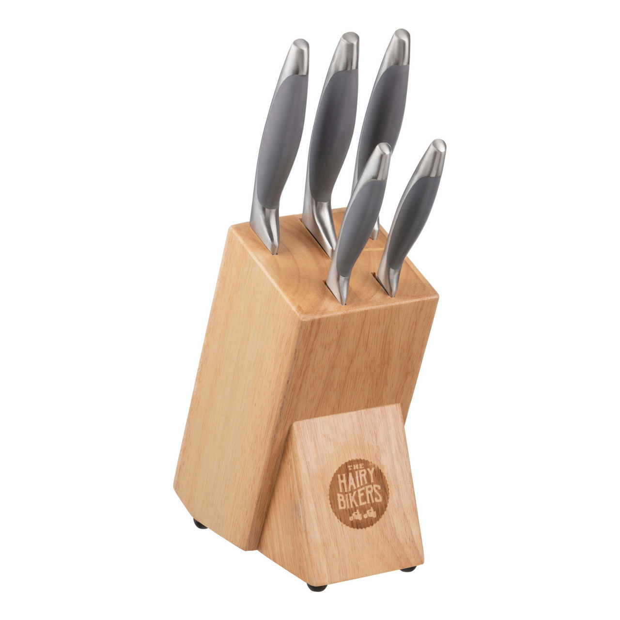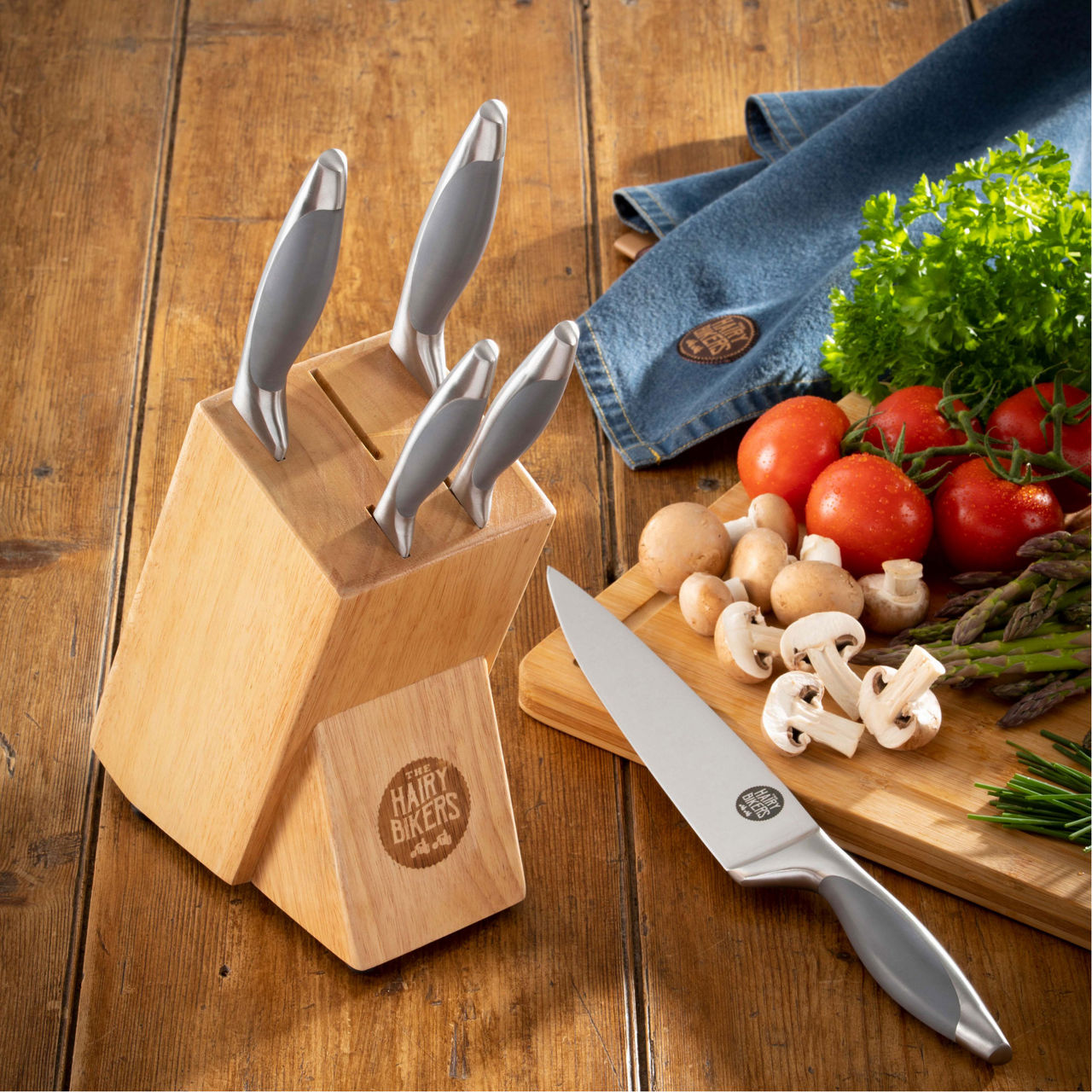 Hairy Bikers 5 piece knife block, solid rubber wood block including 5 knives all suitable for various things