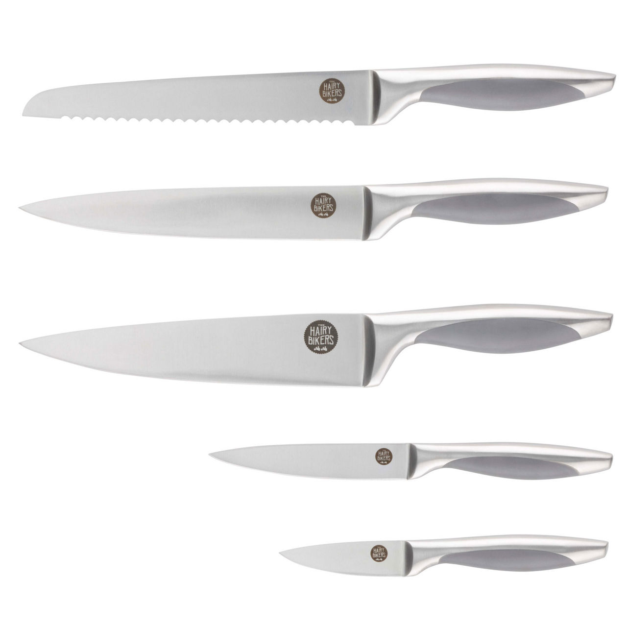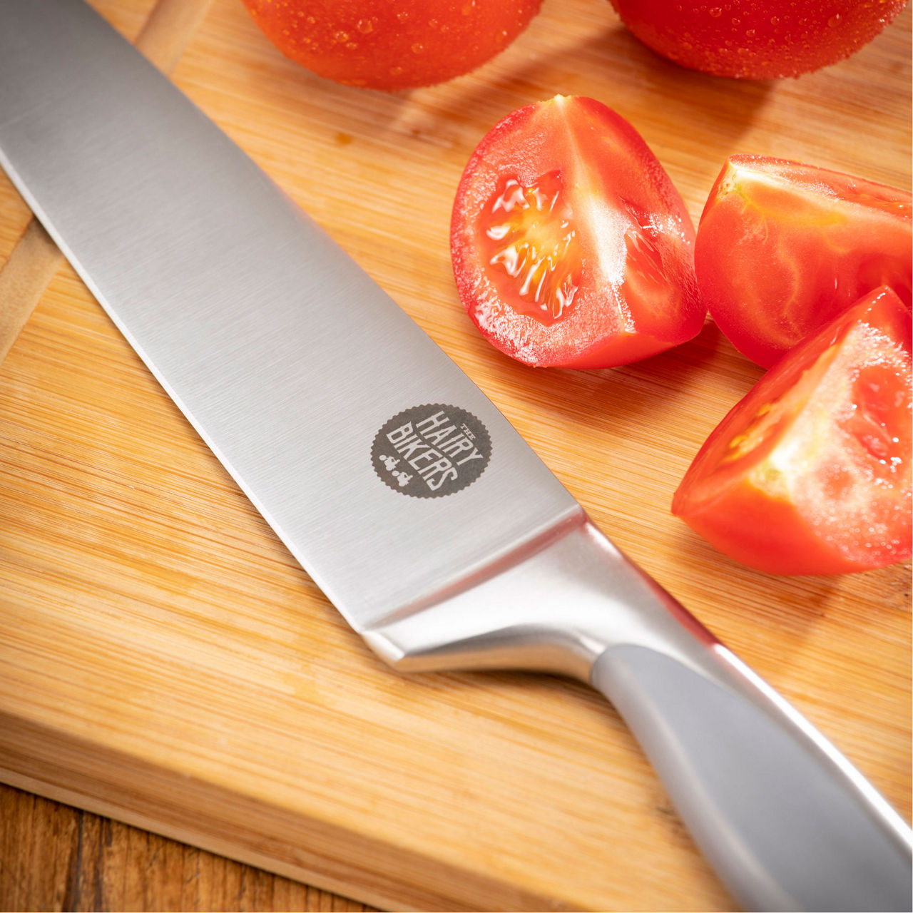 - HAIRY BIKERS 6PCS KNIFE BLOCK 8"CHEF KNIFE 2.5MM 8"CARVING KNIFE 2.5MM, 8"BREAD KNIFE 2.5MM 5"UTILITY KNIFE 2.0MM 3.5"PARING KNIFE 2.0MM BLADE:3CR13S/S SATIN POLISH HANDLE:430S/S+ABS BLOCK:RUBBER WOOD