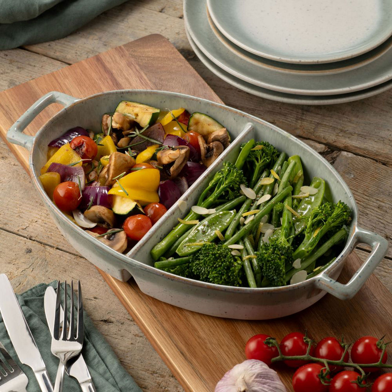 The Tivoli range has been designed and developed to create a durable oven to tableware collection, this robust and hardwearing range is suitable for everyday use. Featuring on trend reactive glazes meaning each piece will have its own individual characteristics and artisanal feel with flowing blue grey tones and mottled effects; no two pieces are the same.