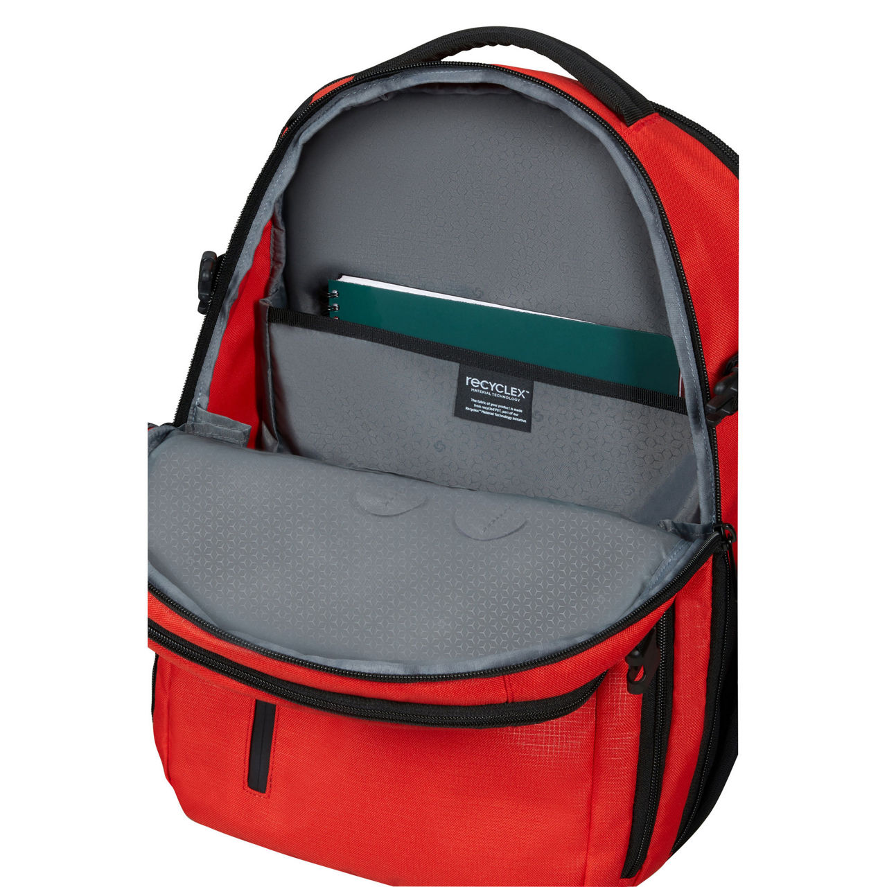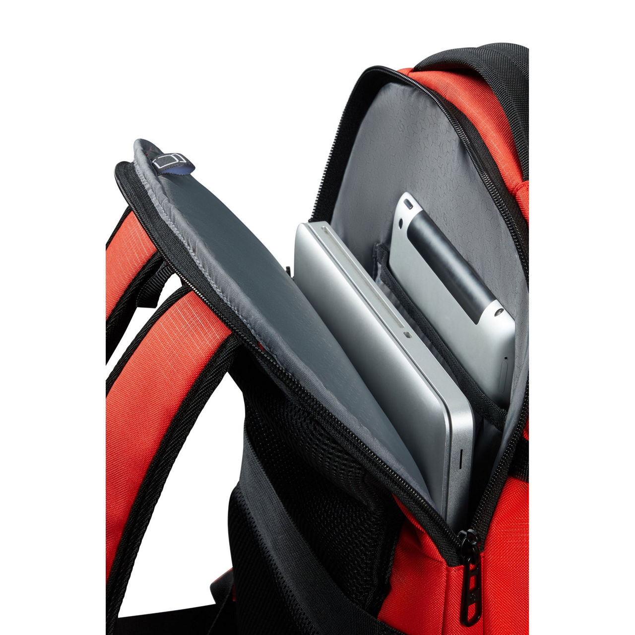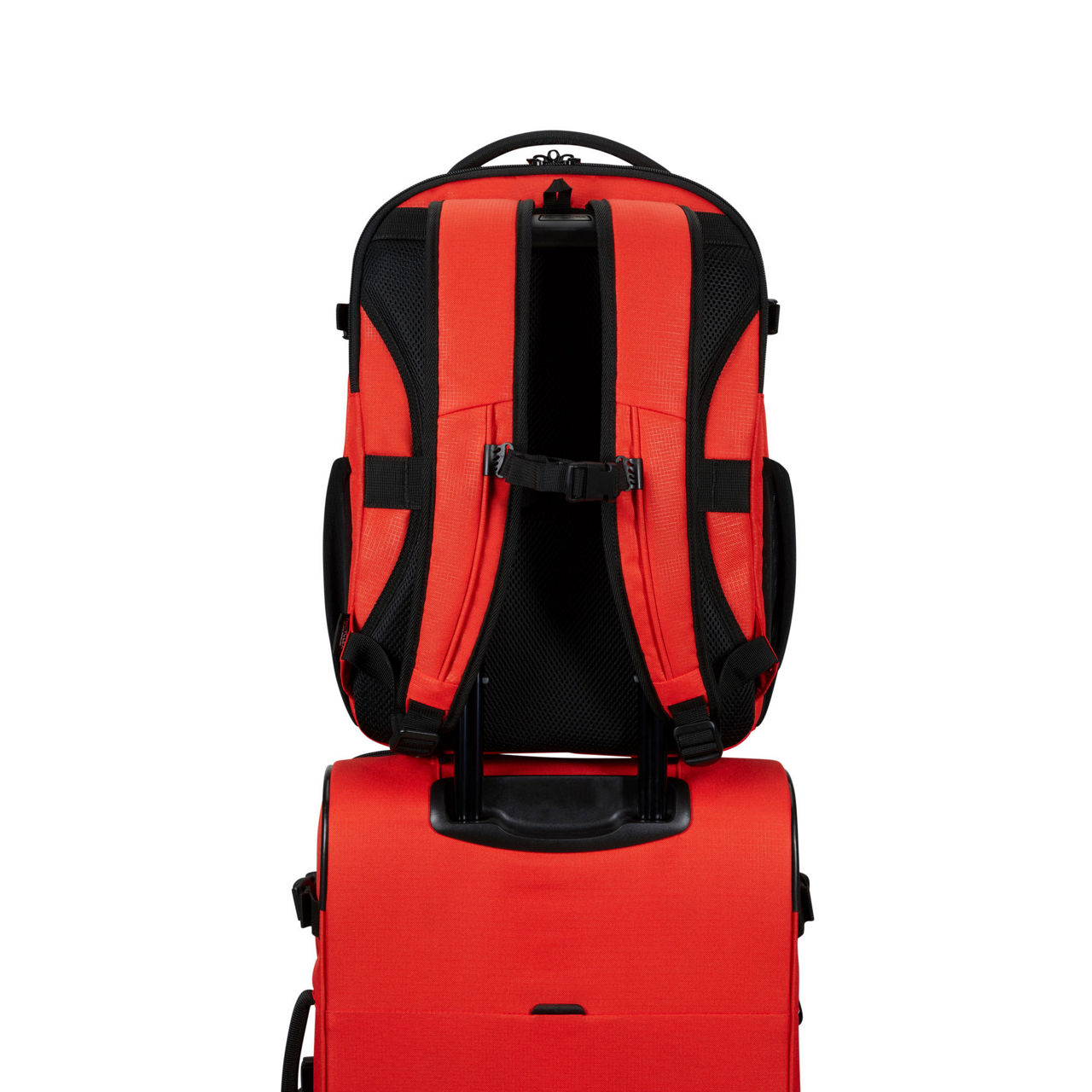- Features: Interior: Main compartment, laptop compartment, tablet pocket, internal organisation. Exterior: Softside outer, zip fastening, top carry handle, ergonomic back straps, sternum strap, expandable, address tag, rain cover, compression straps, two bottle holders, one front pocket