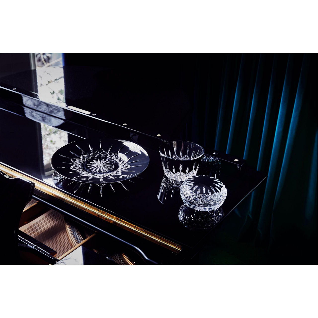 - The bold Lismore Black collection extends from drinkware to specially curated home décor objects. Rich opaque black colour adds a striking contrast to the sparkling clear crystal, accentuating the intricate deep cuts of our timeless Lismore pattern. The Lismore Black 12" plate was designed for serving and home decor making everyday moments special.