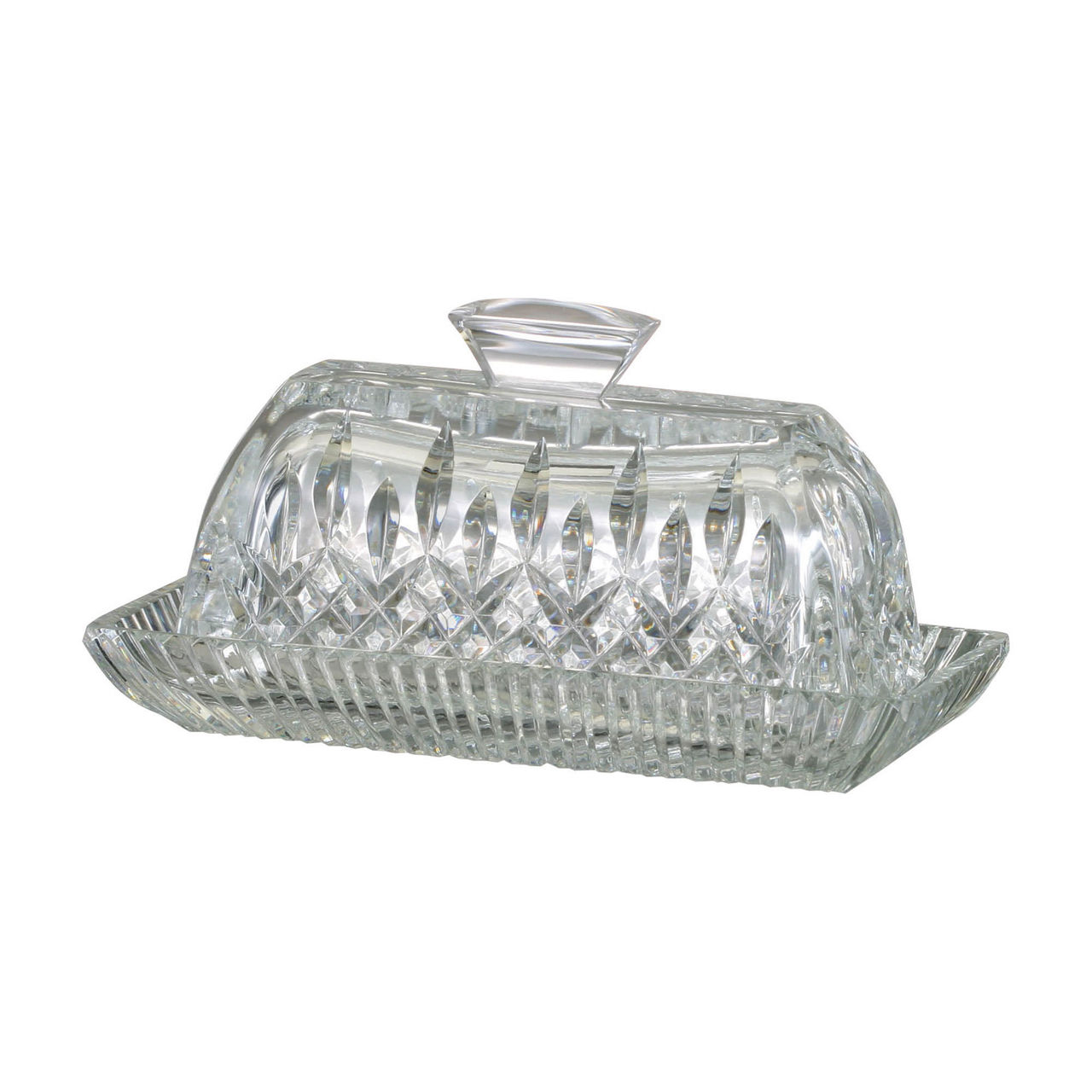 Combining brilliance and clarity, the Waterford Lismore Collection embraces shine and cut. This butter dish and lid feature signature diamond and wedge cuts, weighted and timeless in style.