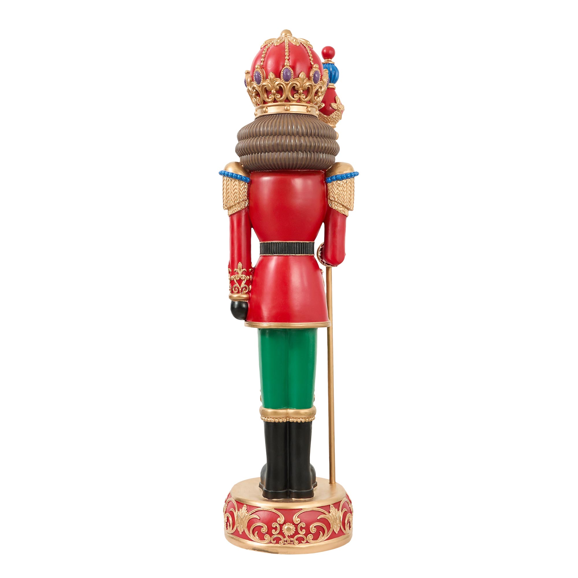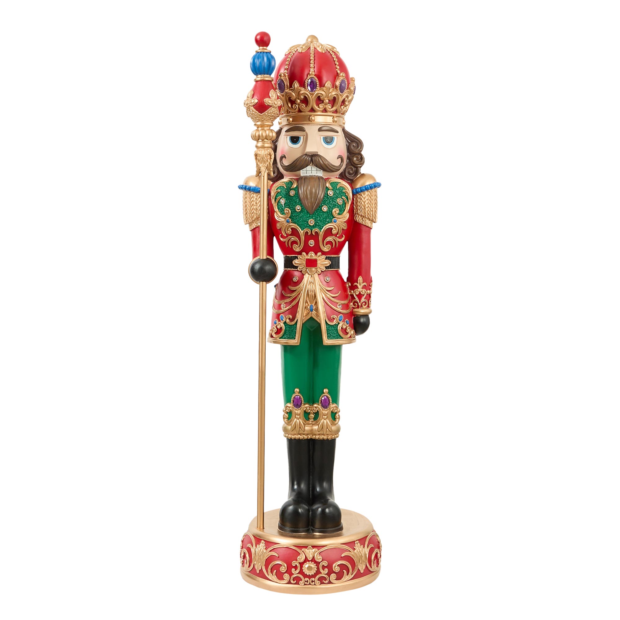 - Soldier nutcracker, standing ornament, intricate detailing, festive colours, LED lights