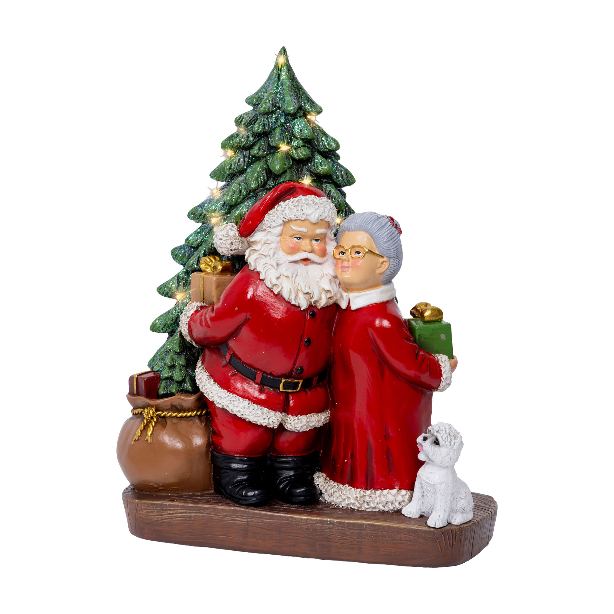 - Standing LED ornament, Santa & Mrs. Claus design, festive colours, intricate detailing