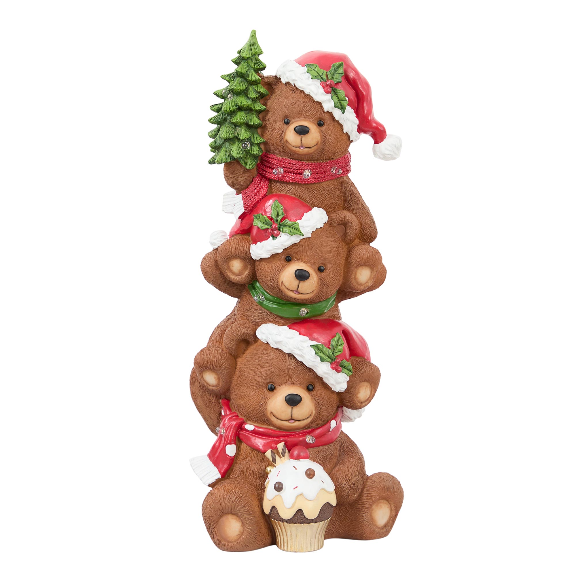 • Three bear design, standing ornament, intricate detailing, festive colours