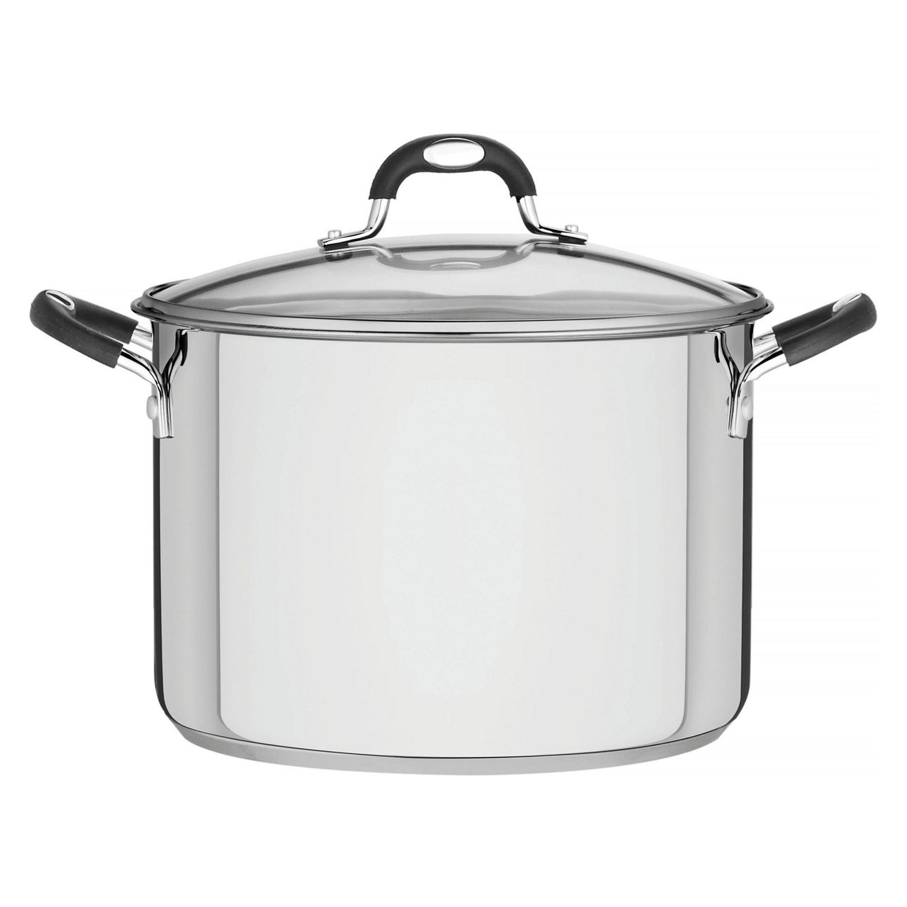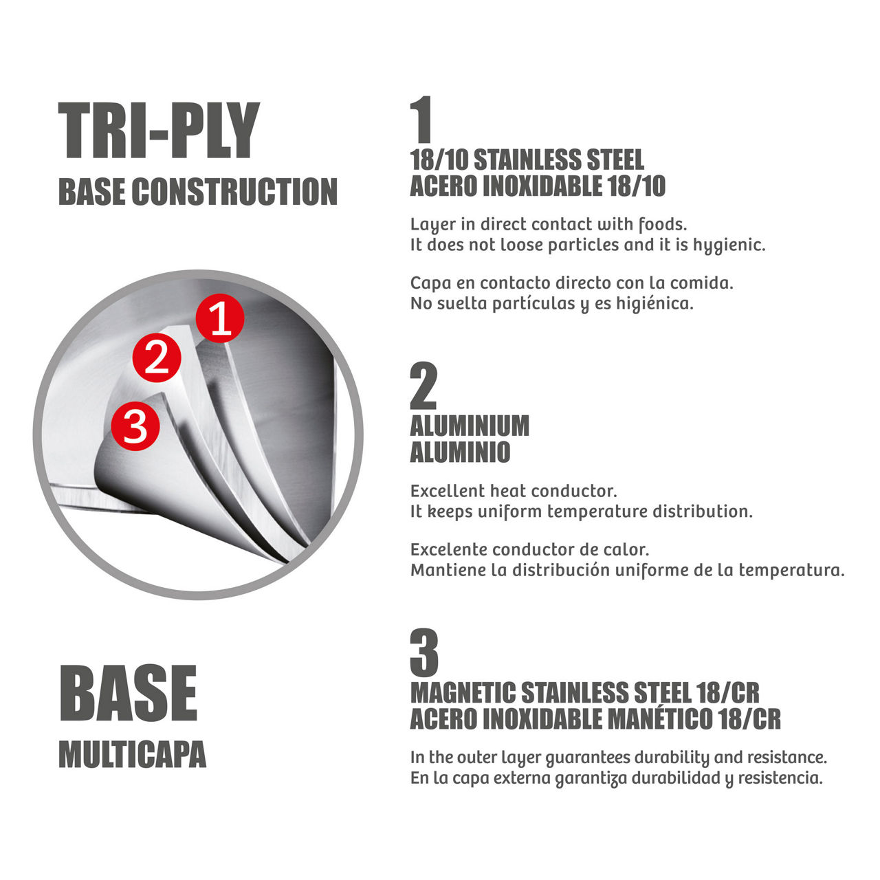This versatile stainless steel stock pot from Tramontina offers durability and increased cooking performance at an affordable price. The triple layer base, which comprises a sandwich of stainless steel-aluminium-stainless steel, ensures even heat distribution and more efficient cooking and is suitable for all hob types including induction. Comfortable silicone handles and tempered glass lids feature across the collection.