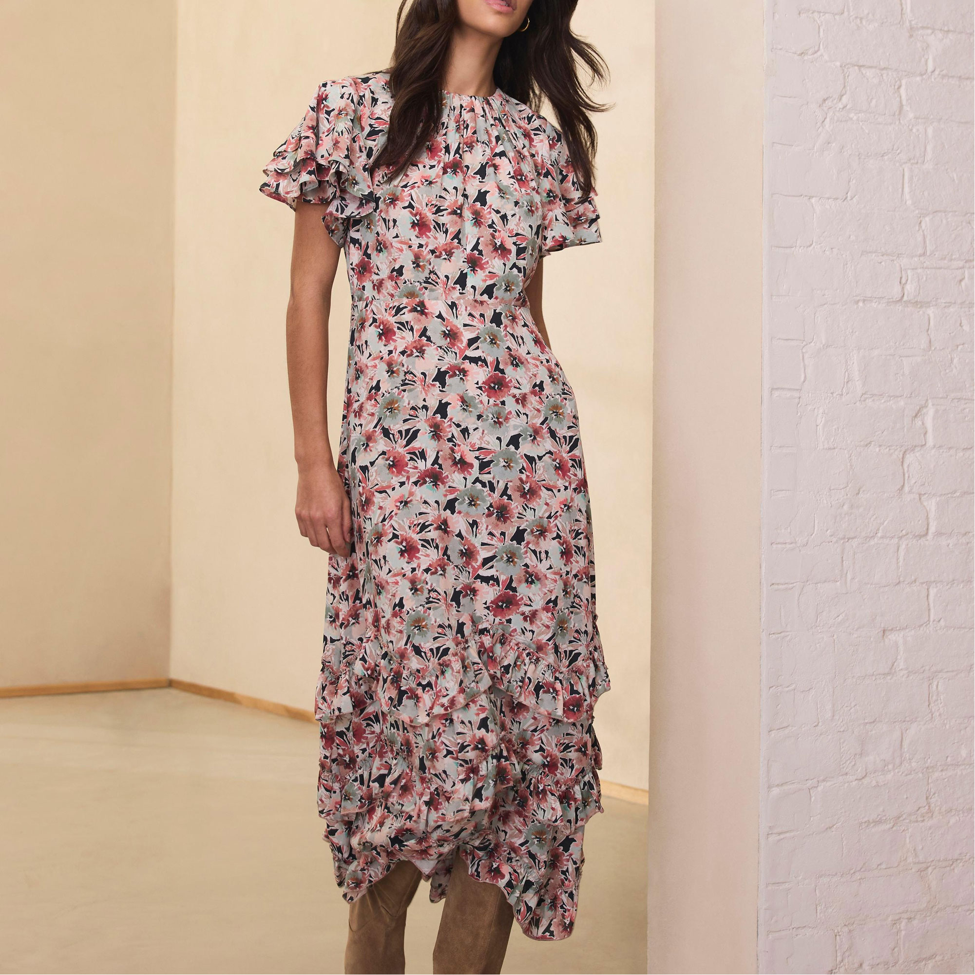 MINT VELVET Floral Tiered Flared Dress