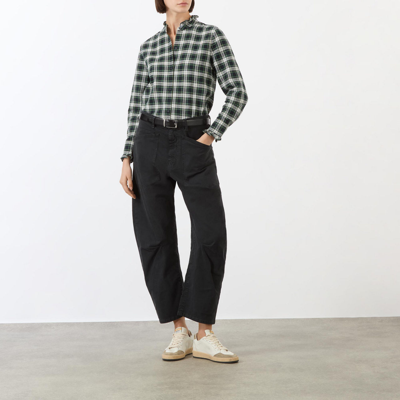 Nili Lotan takes inspiration from quintessentially British style for the AW24 collection, featuring classic silhouettes adorned with herringbones, houndstooths, and Prince of Wales checks, seen here in the design of the Lydia shirt. Cut to a regular fit, it boasts ruffled trims and is finished with a classic check pattern.