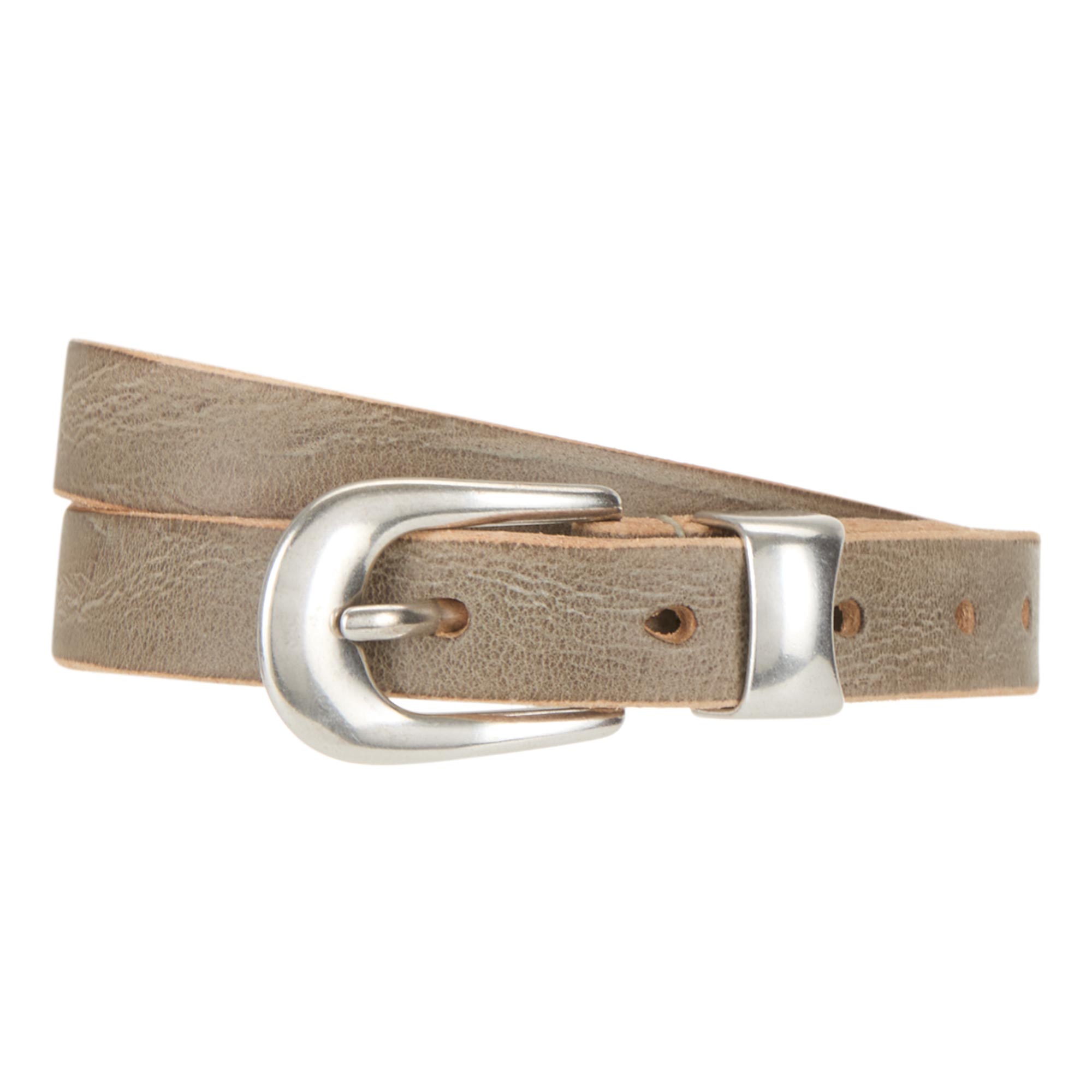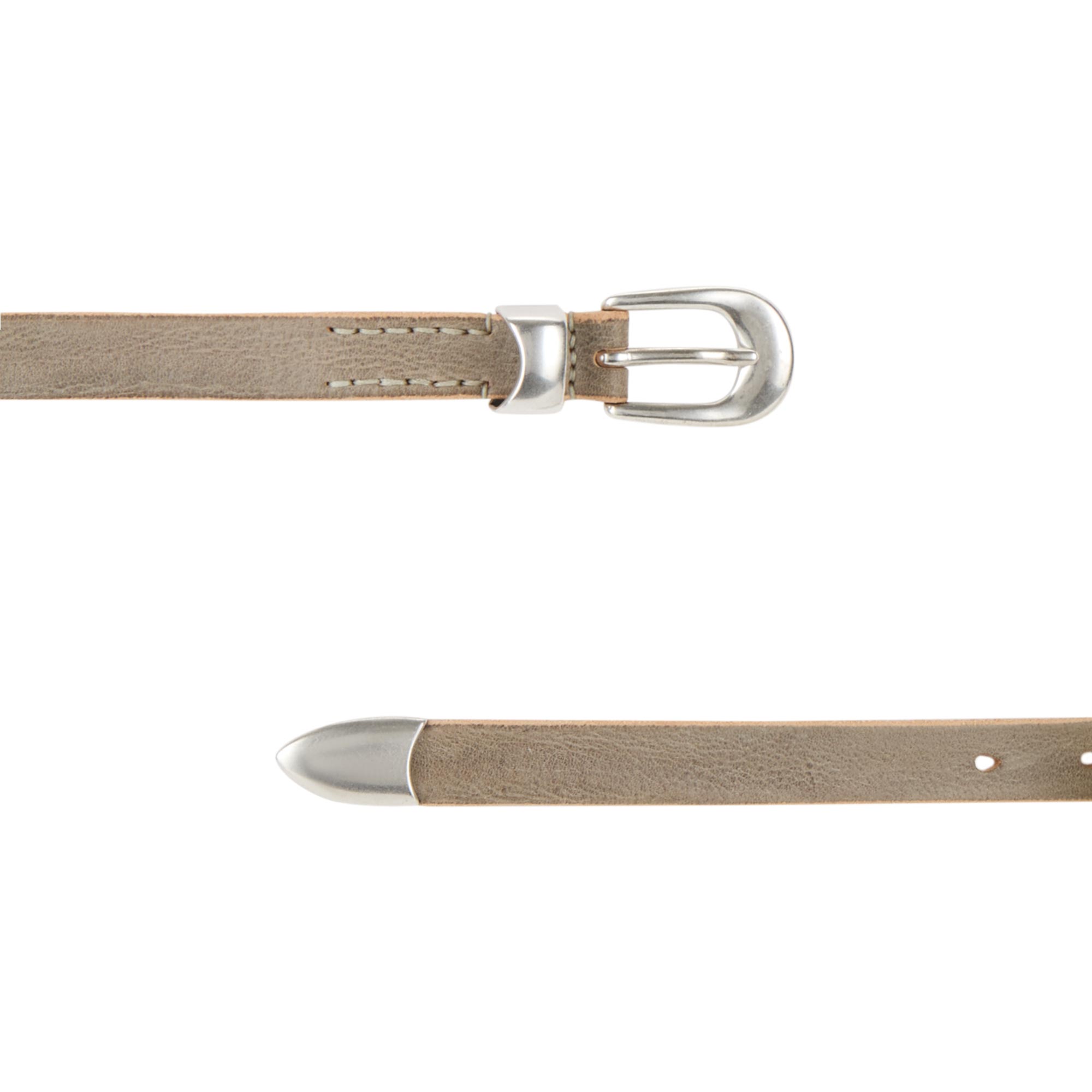- Rounded tip, buckle fastening, belt keeper loop, silver-tone hardware