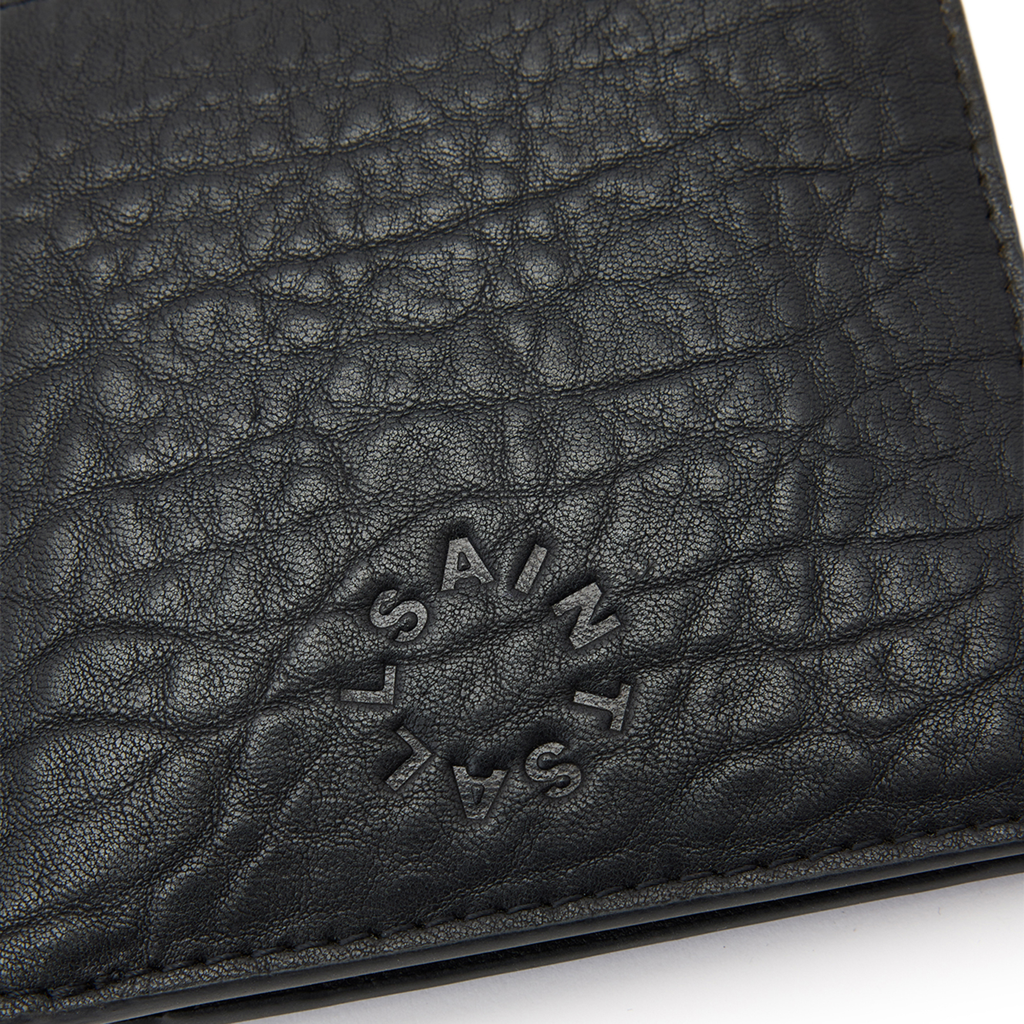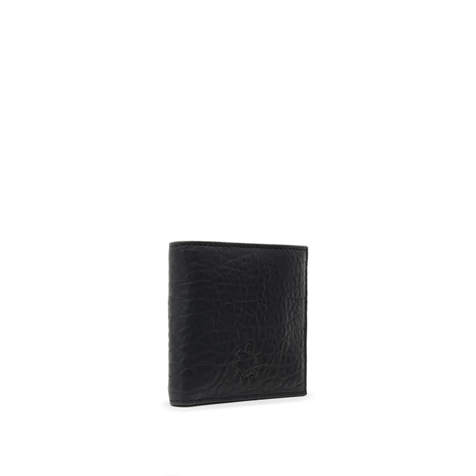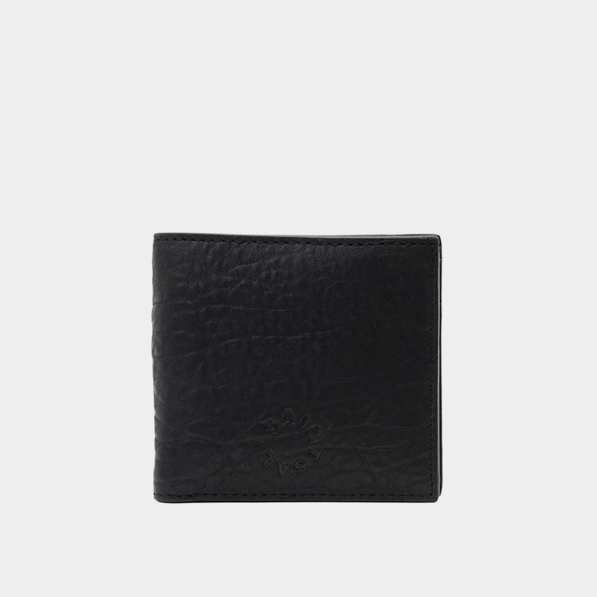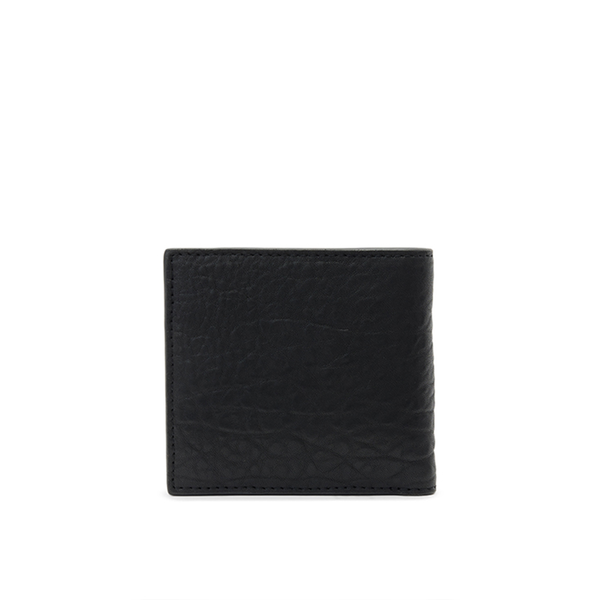 • Standard billfold wallet, V-shaped card slots, note slot, coin pouch, raw-cut edges, full-grain leather, logo detail
