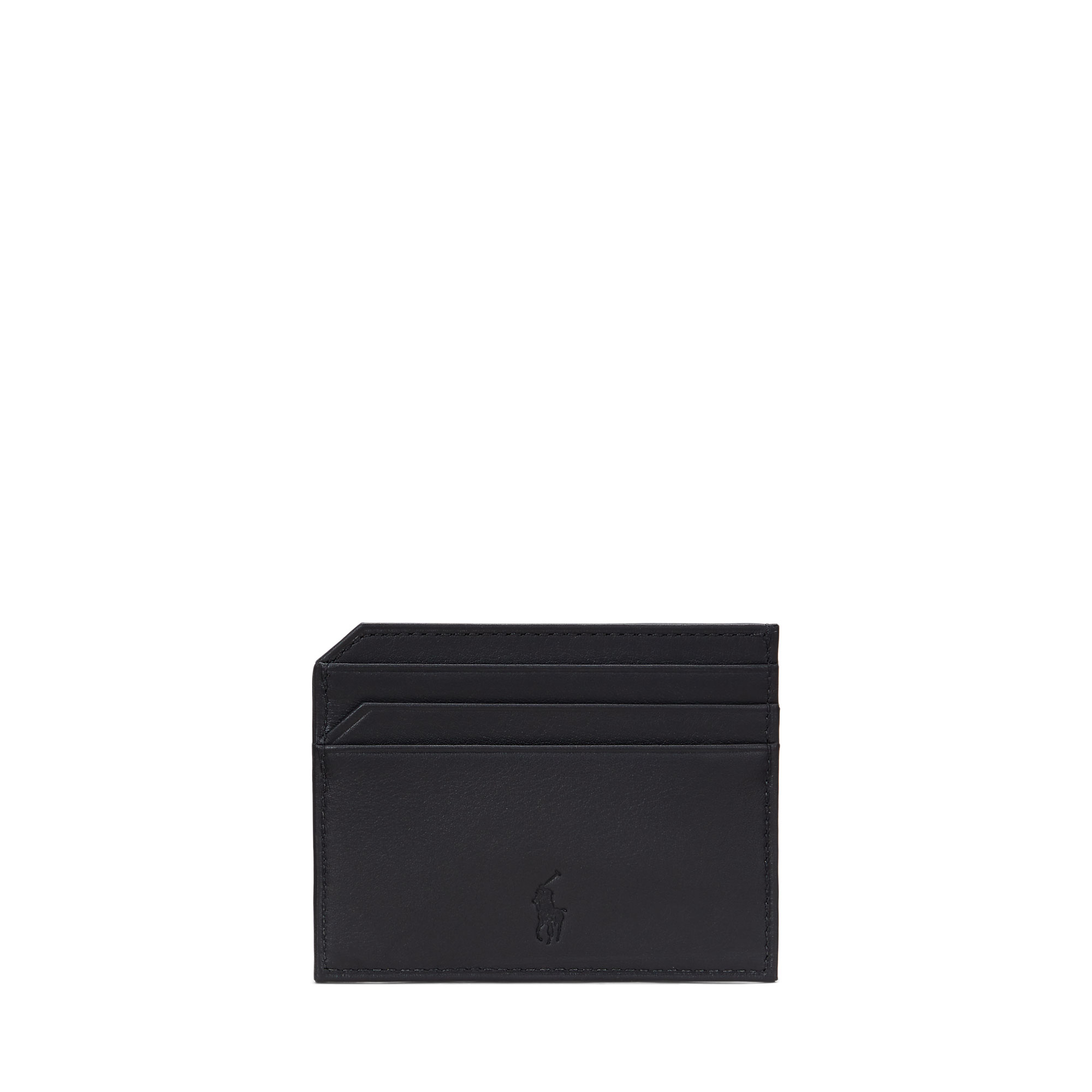 • Slim design, single-needle–stitched edges, three card slots at each side, median slip pocket, script logo, signature Pony logo, pockets lined with polyester, smooth leather construction