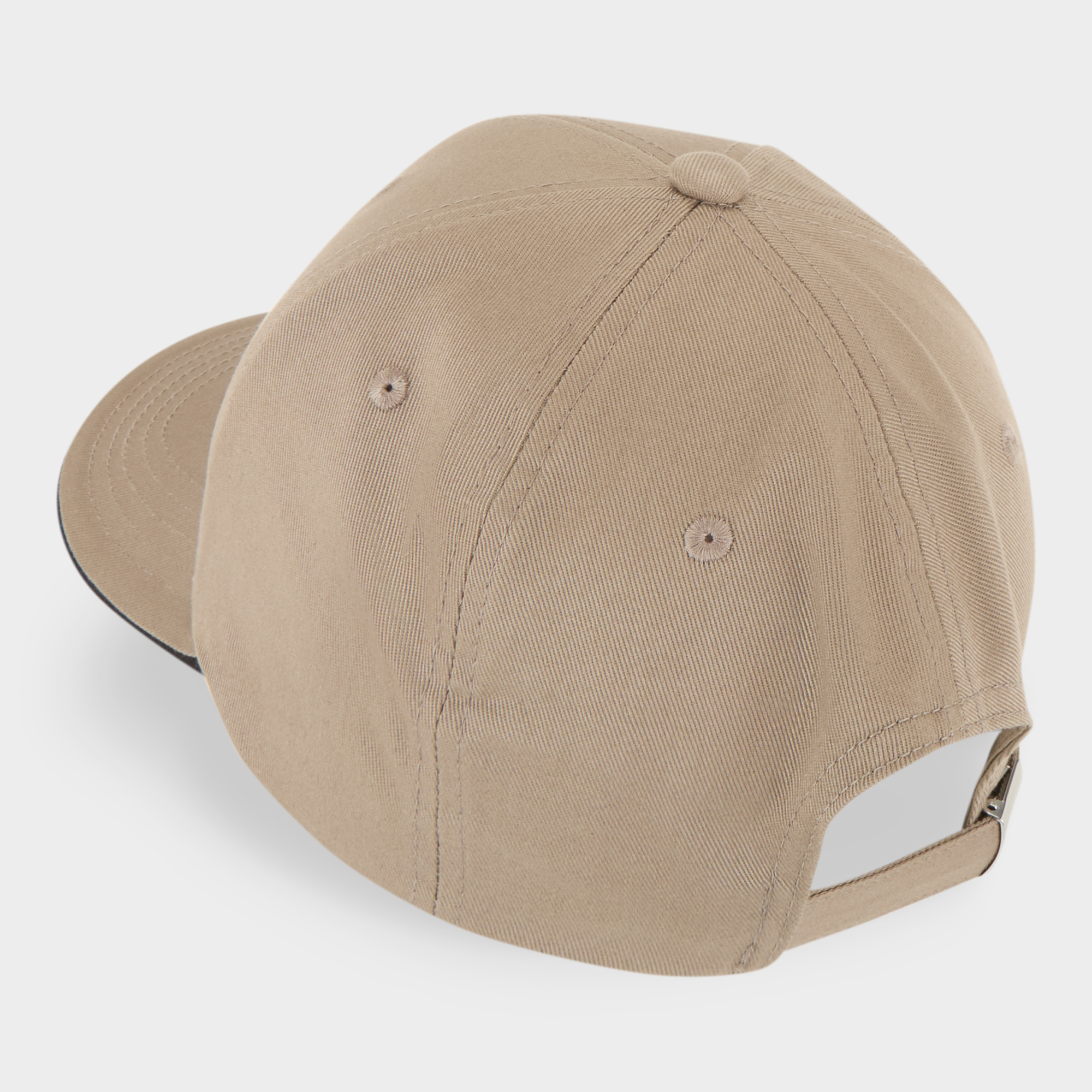 - Peaked visor with contrast trim, six-panel design, embroidered eyelets, adjustable back, logo detail
