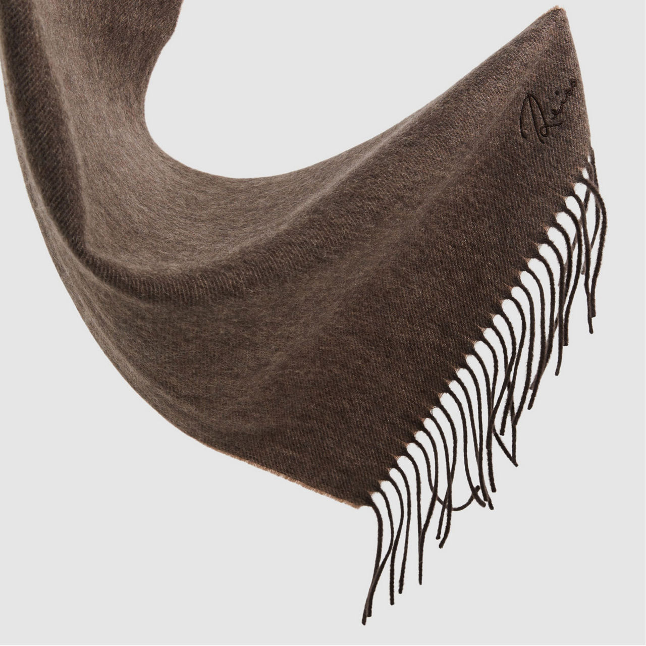 - Brushed wool-cashmere blend, embroidered logo, fringed edges