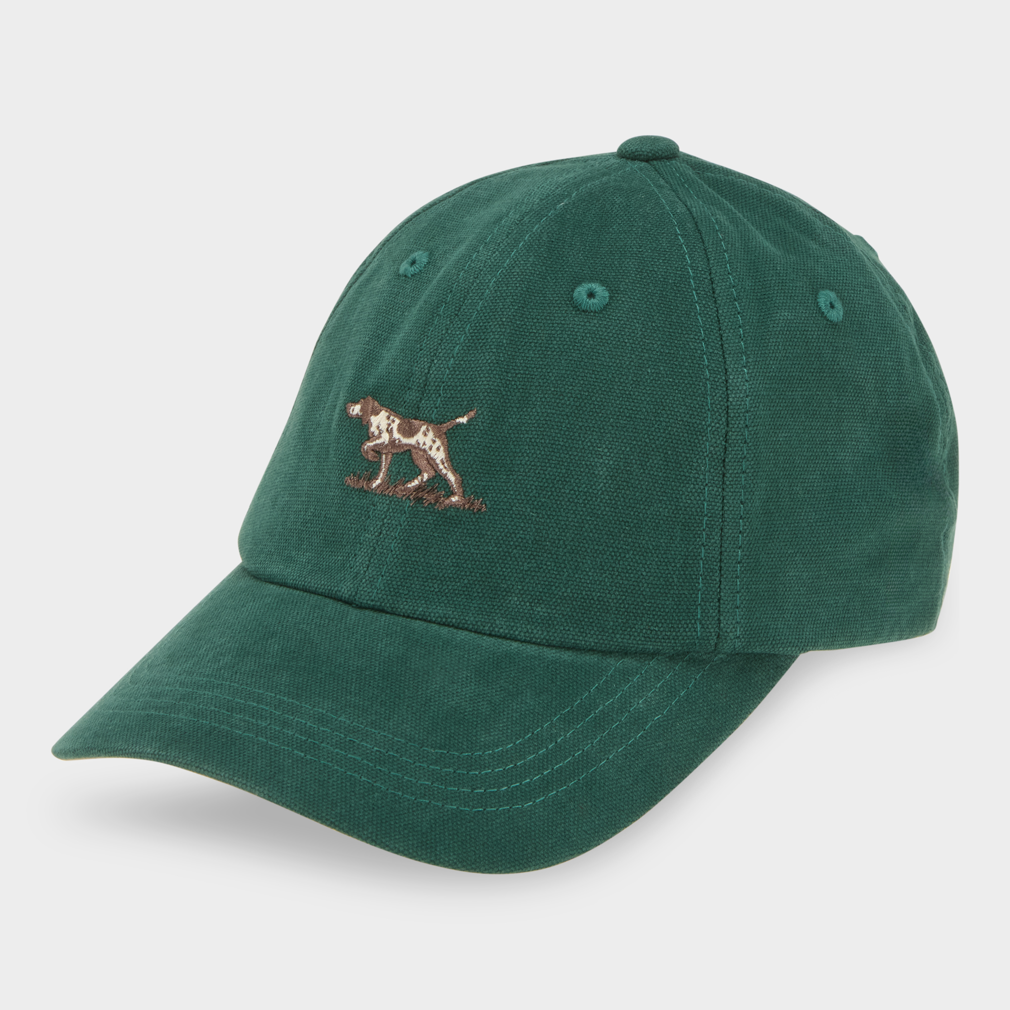- Peak visor, six-panel design, embroidered eyelets, adjustable strap, embroidered two-tone Pointer dog at the front, embroidered logo at the back, heavy-duty fabric