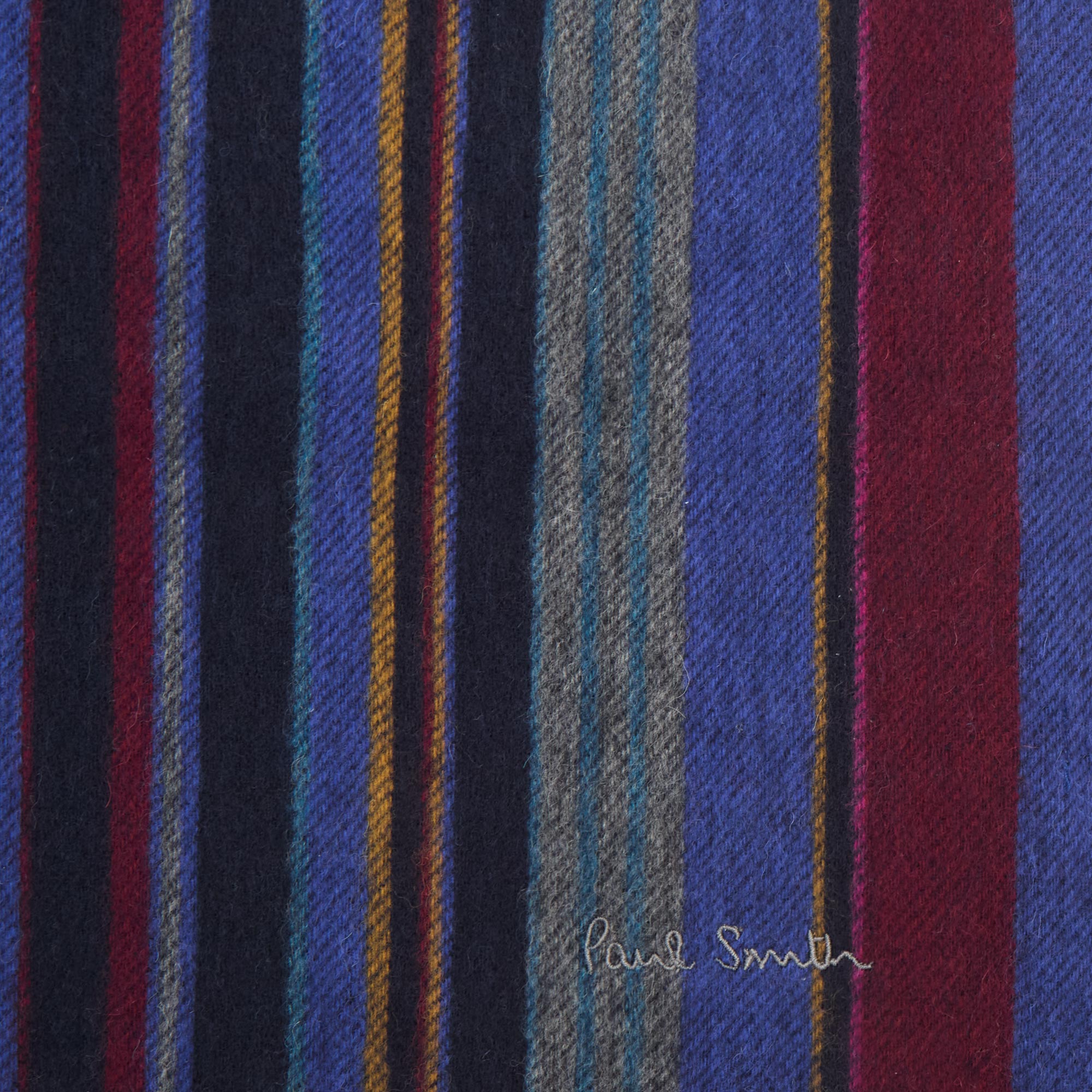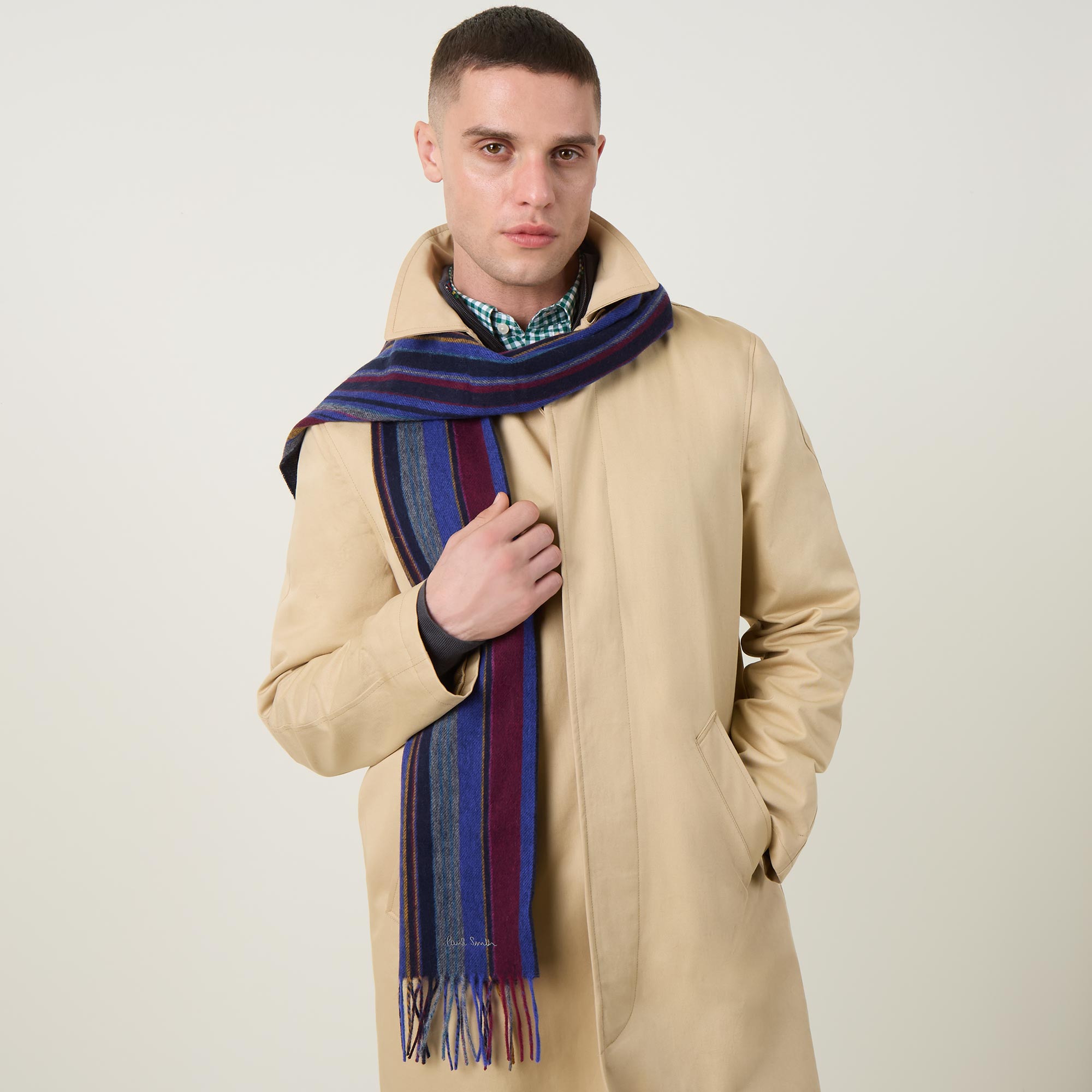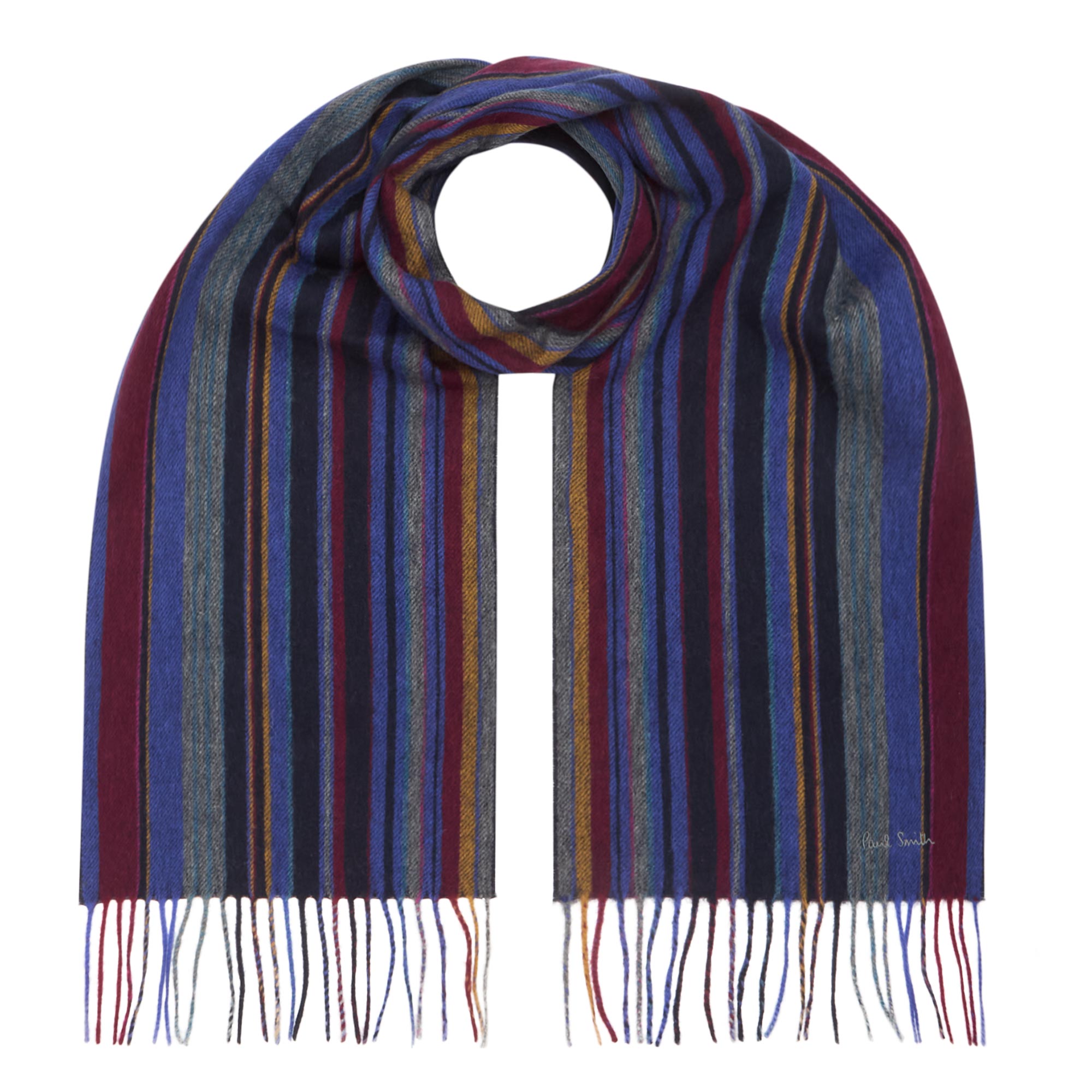 • Wrap design, signature 'Artist Stripe' design, logo embroidery, contrasting colours, fringed tassels, smooth fabric
