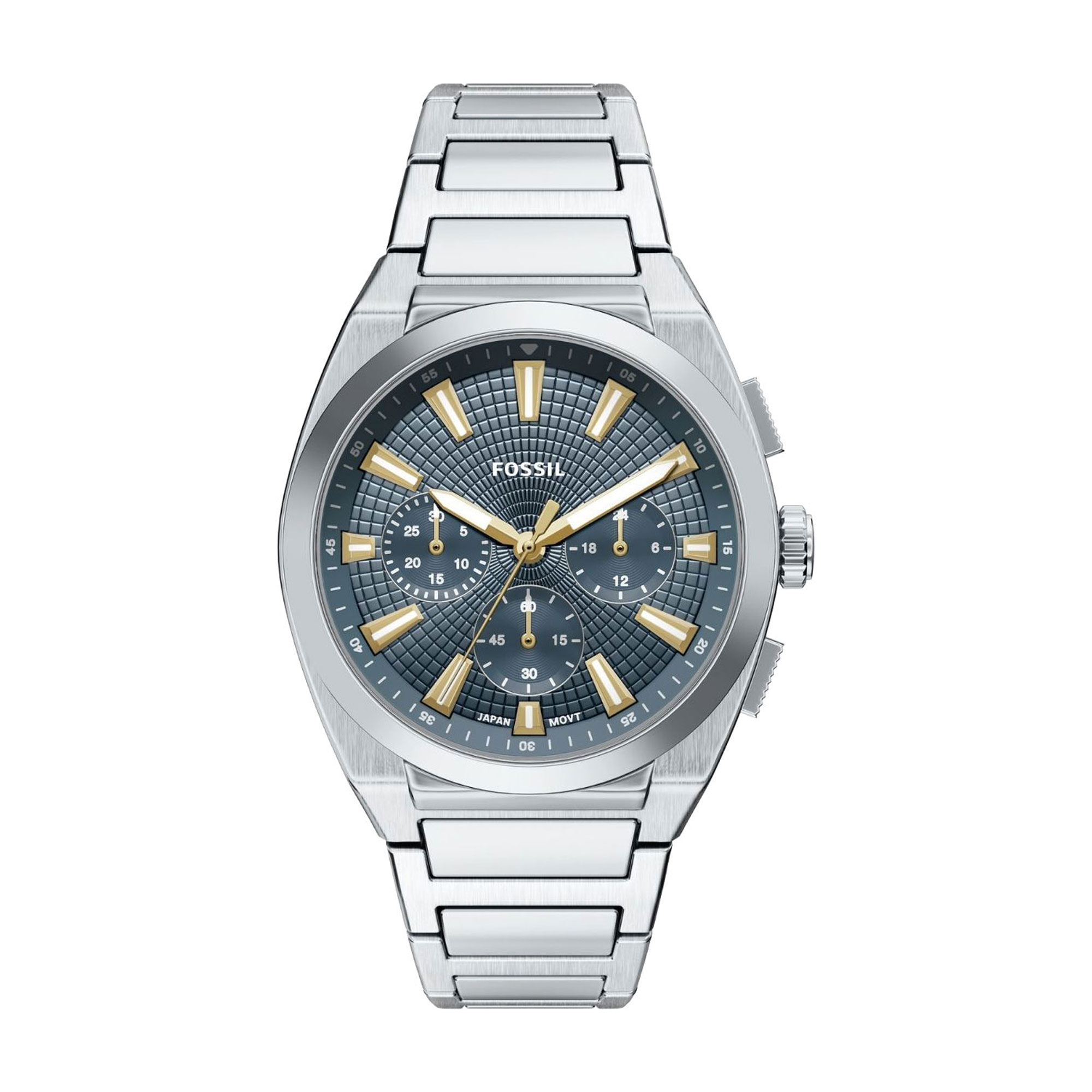 Exuding effortless style, the Everett Chronograph by Fossil. This sporty stainless watch balances casual cool with refined sophistication. The sunray light blue dial, encased in a 44mm round stainless steel case, lends a touch of modern inspiration. Functional details like Japanese chronograph quartz movement and a solid steel bracelet ensure this versatile timepiece keeps you on schedule. Slip on this iconic accessory and take on whatever comes your way.