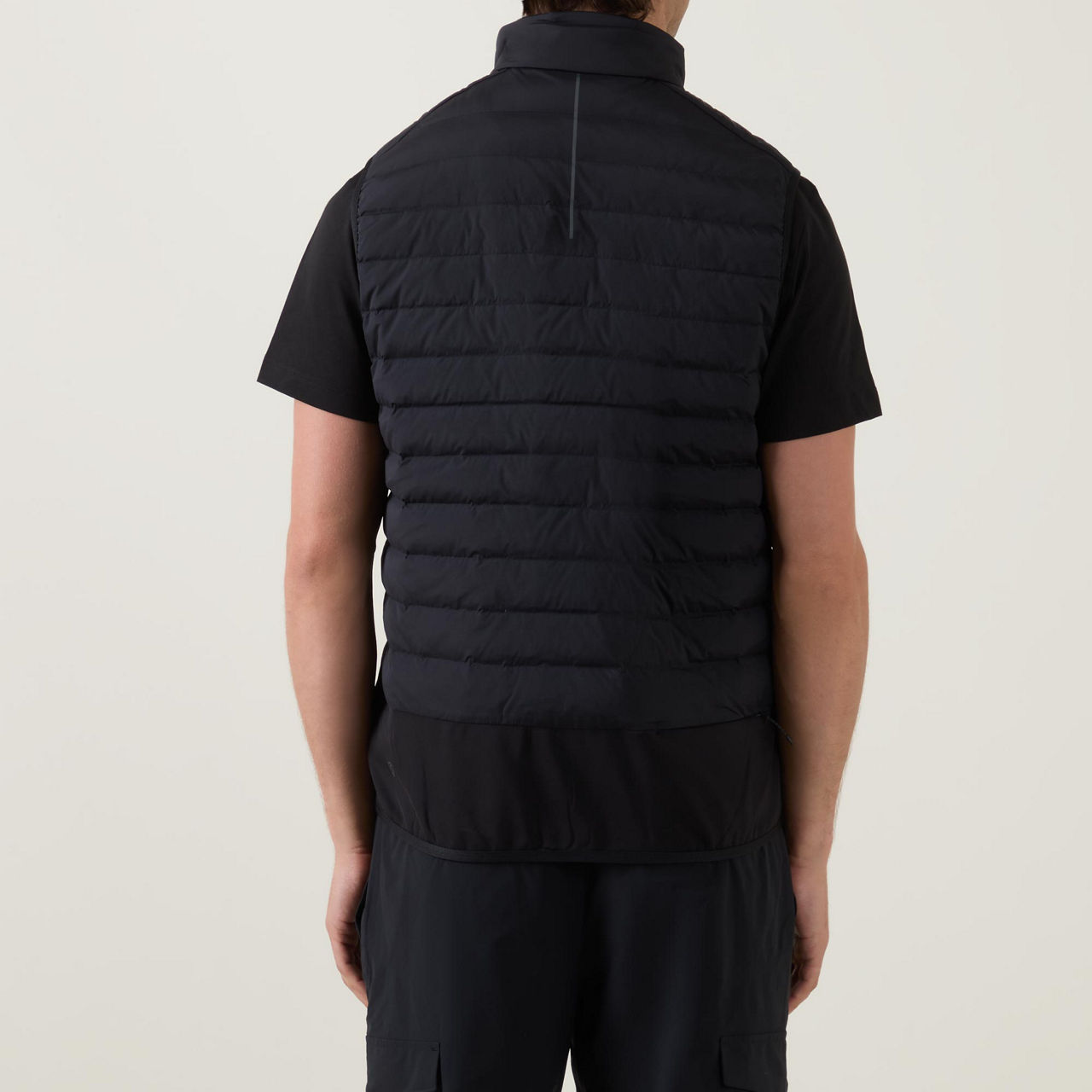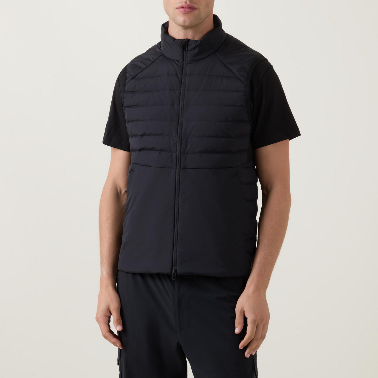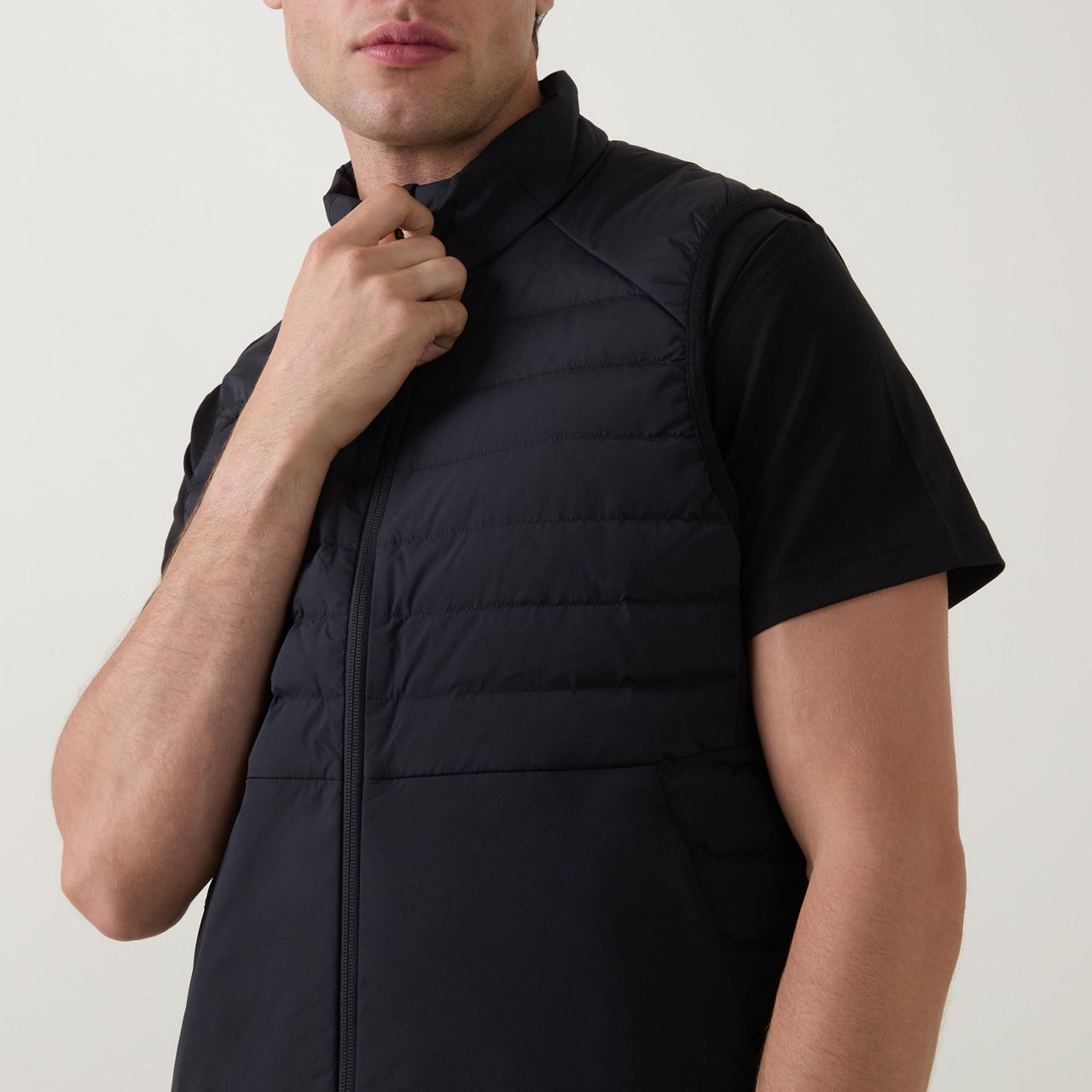 When the temperature drops, this water-repellent vest keeps up. Lightweight goose down helps keep you warm, while stretchy fabric panels let you move with ease.