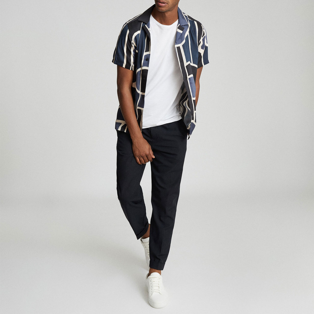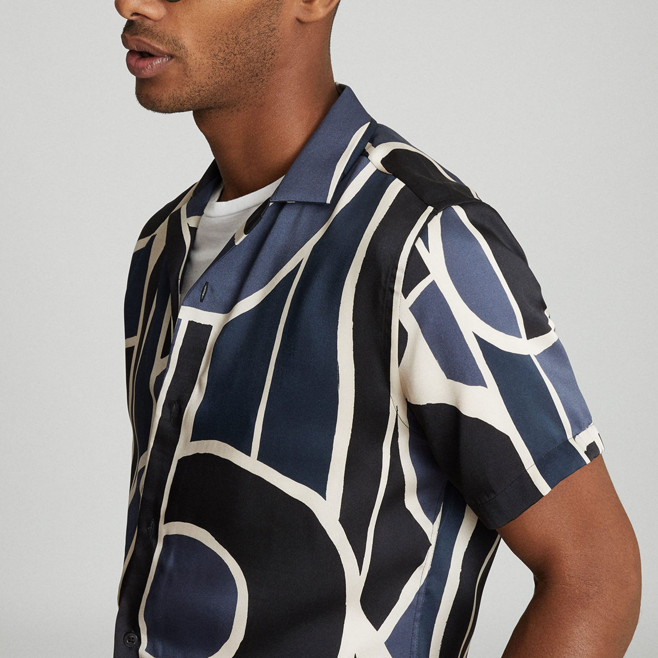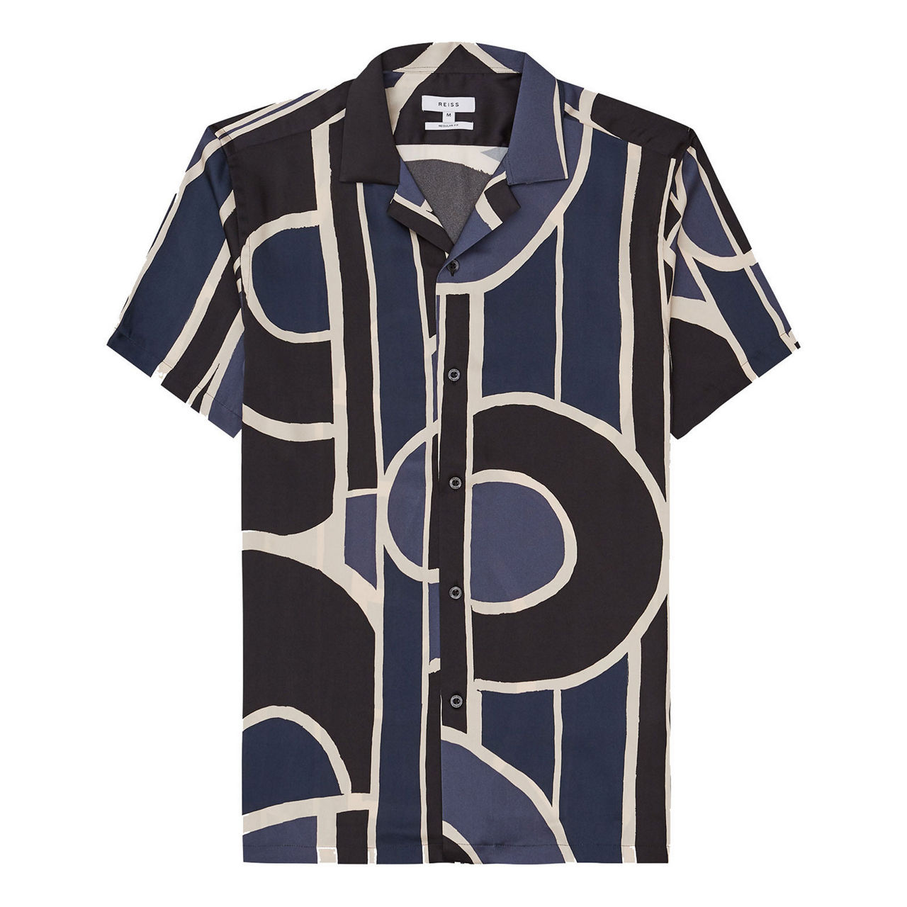 Reiss' Deco shirt works a Cuban collar and bold abstract print to standout effect. Keep things casual and team with denim and trainers.