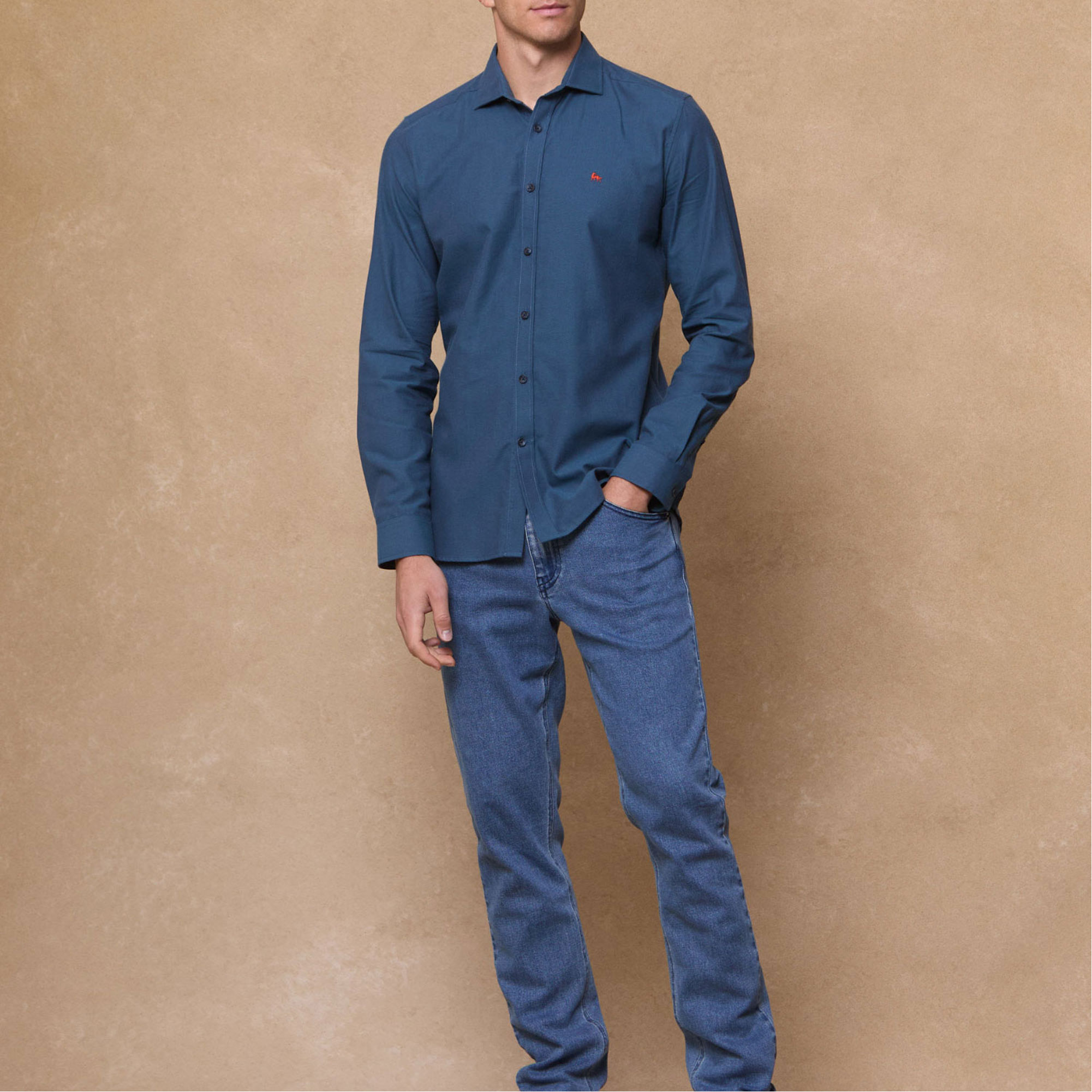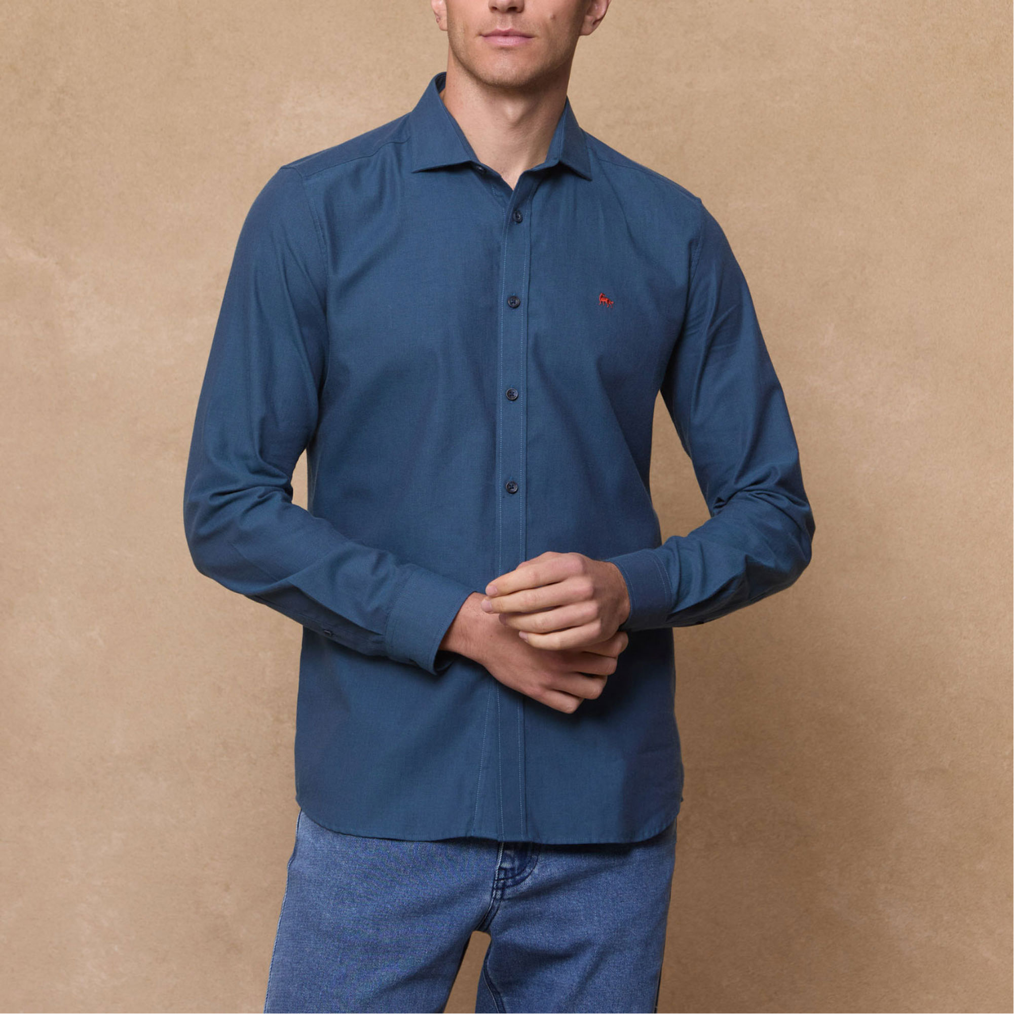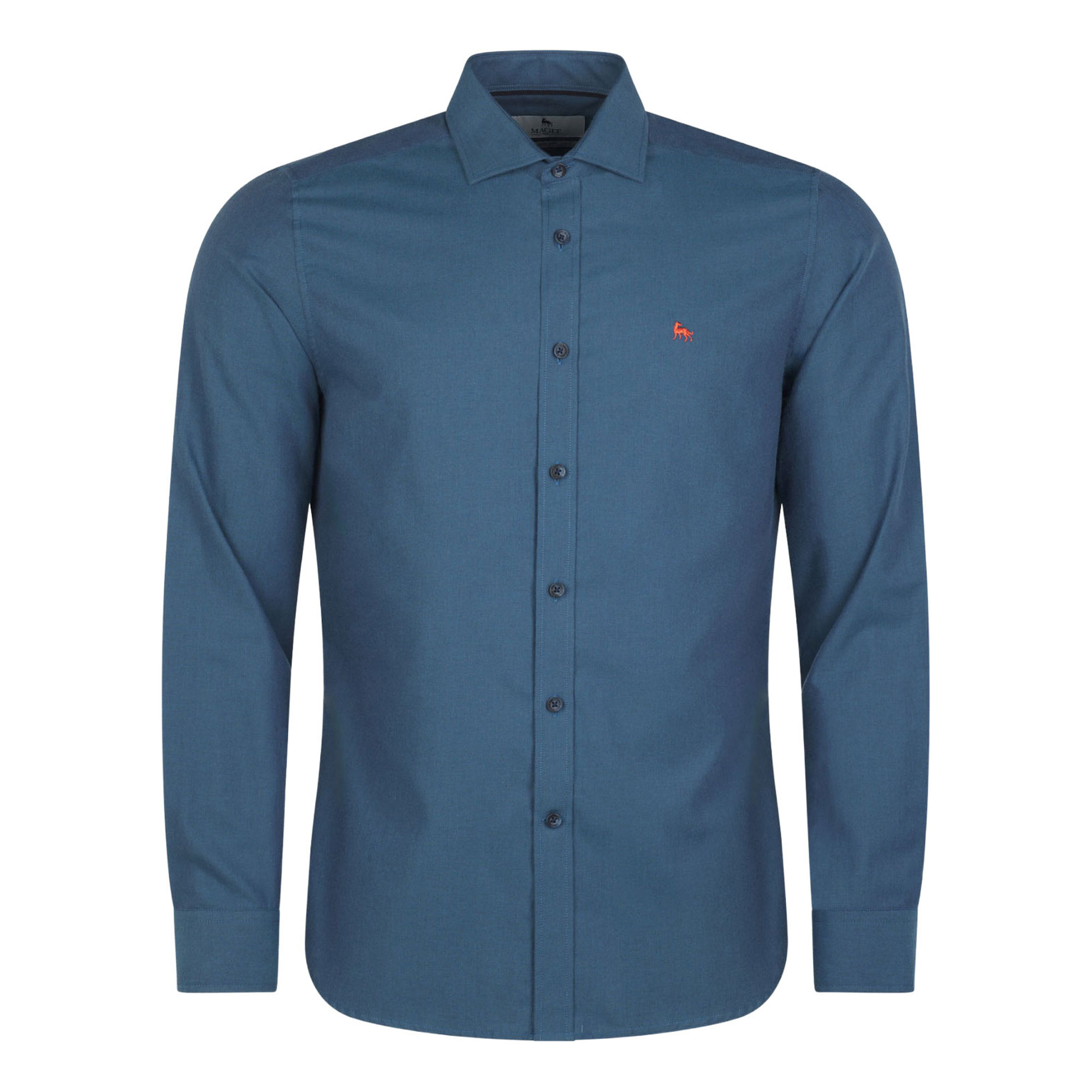 The Kippure Tailored Fit Shirt is our sharpest, most fitted style, designed to offer a clean, contemporary look. Crafted this season in soft denim blue brushed cotton, it delivers both comfort and refined style. Featuring a contrast Magee 1866 wolfhound logo, this versatile shirt is perfect for dressing up with a blazer or wearing casually with chinos or denim.