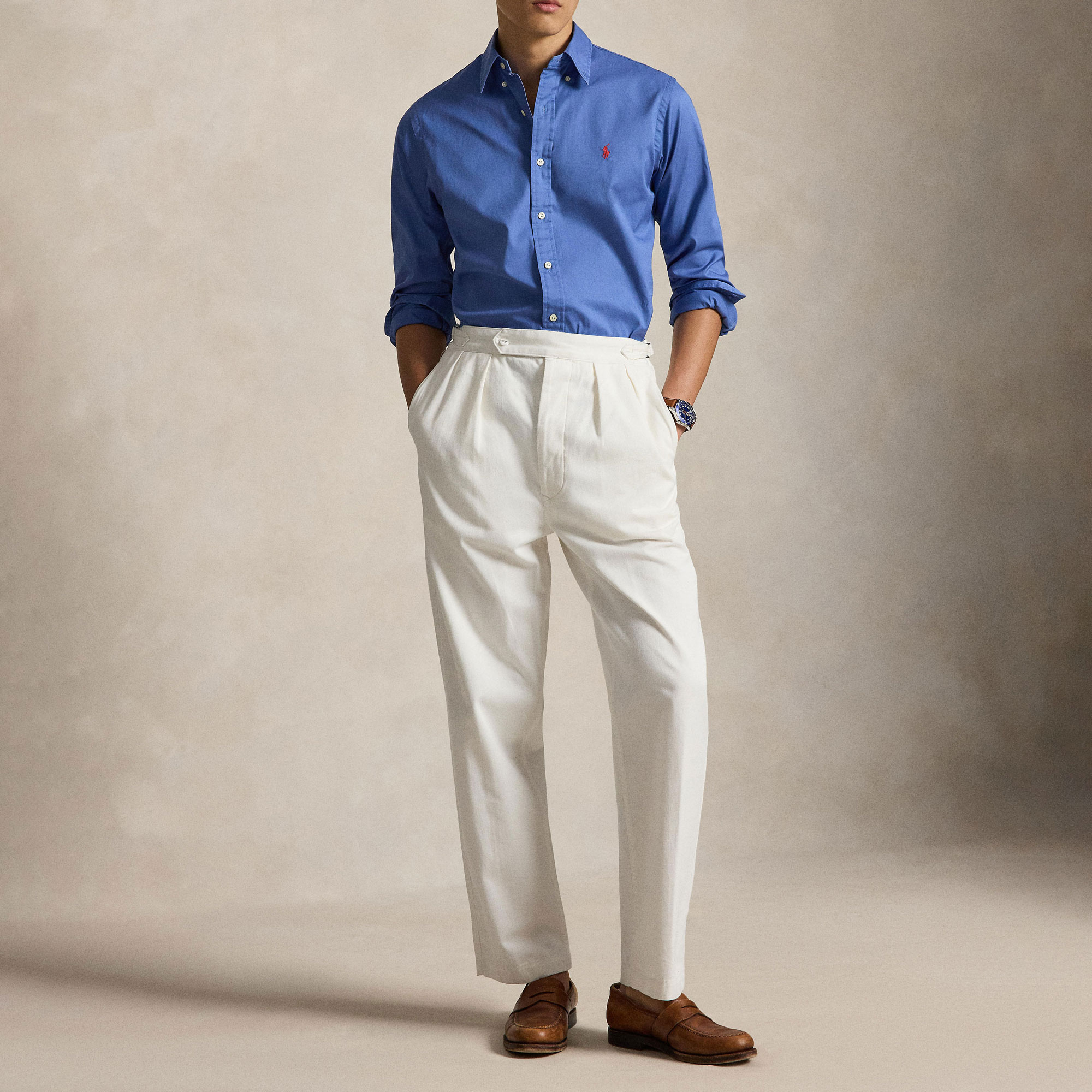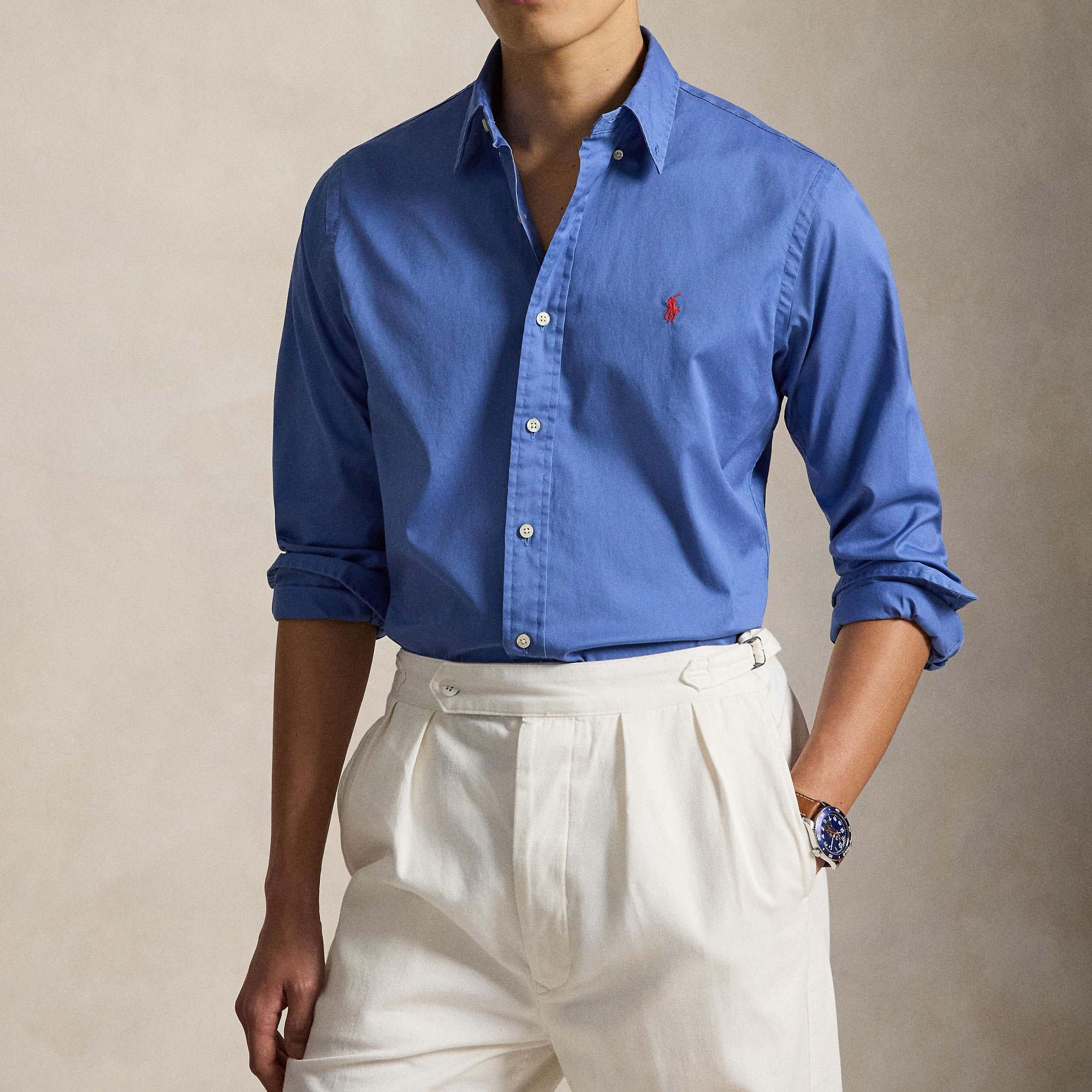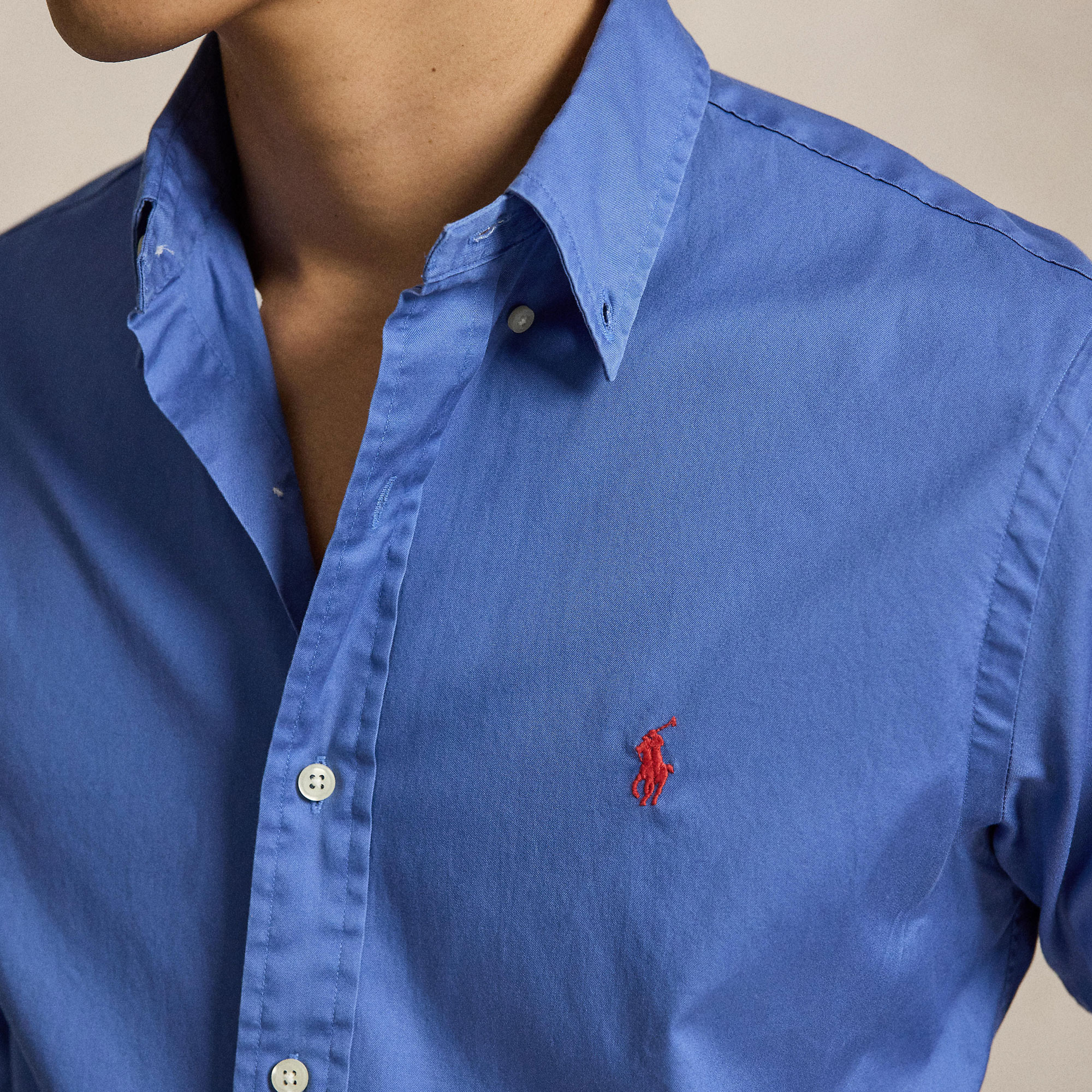 - Button-down collar, buttoned placket, long sleeves, buttoned barrel cuffs, split back yoke, box pleat, signature embroidered Pony logo detail, featherweight twill fabric