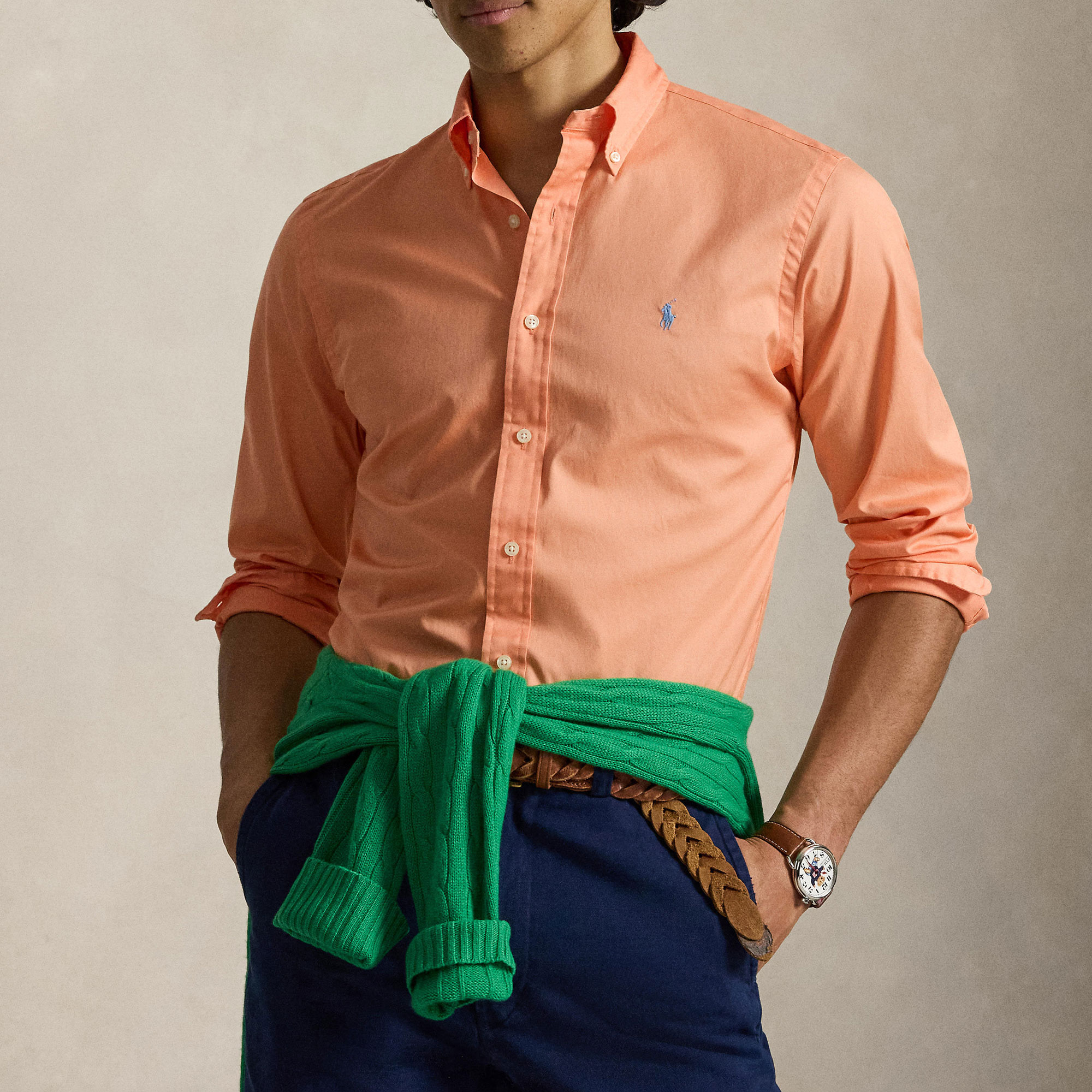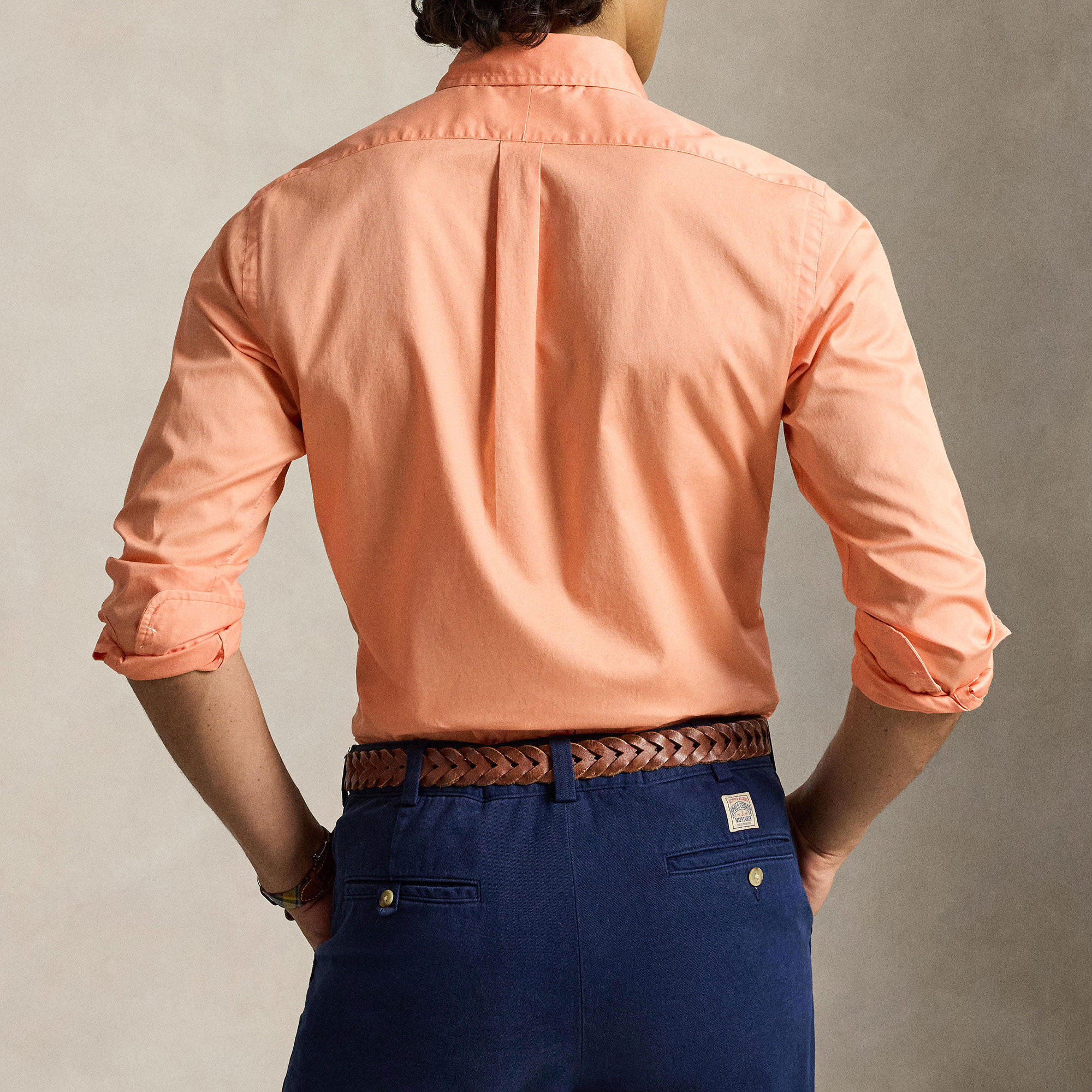 - Button-down collar, buttoned placket, long sleeves, buttoned barrel cuffs, split back yoke, box pleat, signature embroidered Pony logo detail, featherweight twill fabric