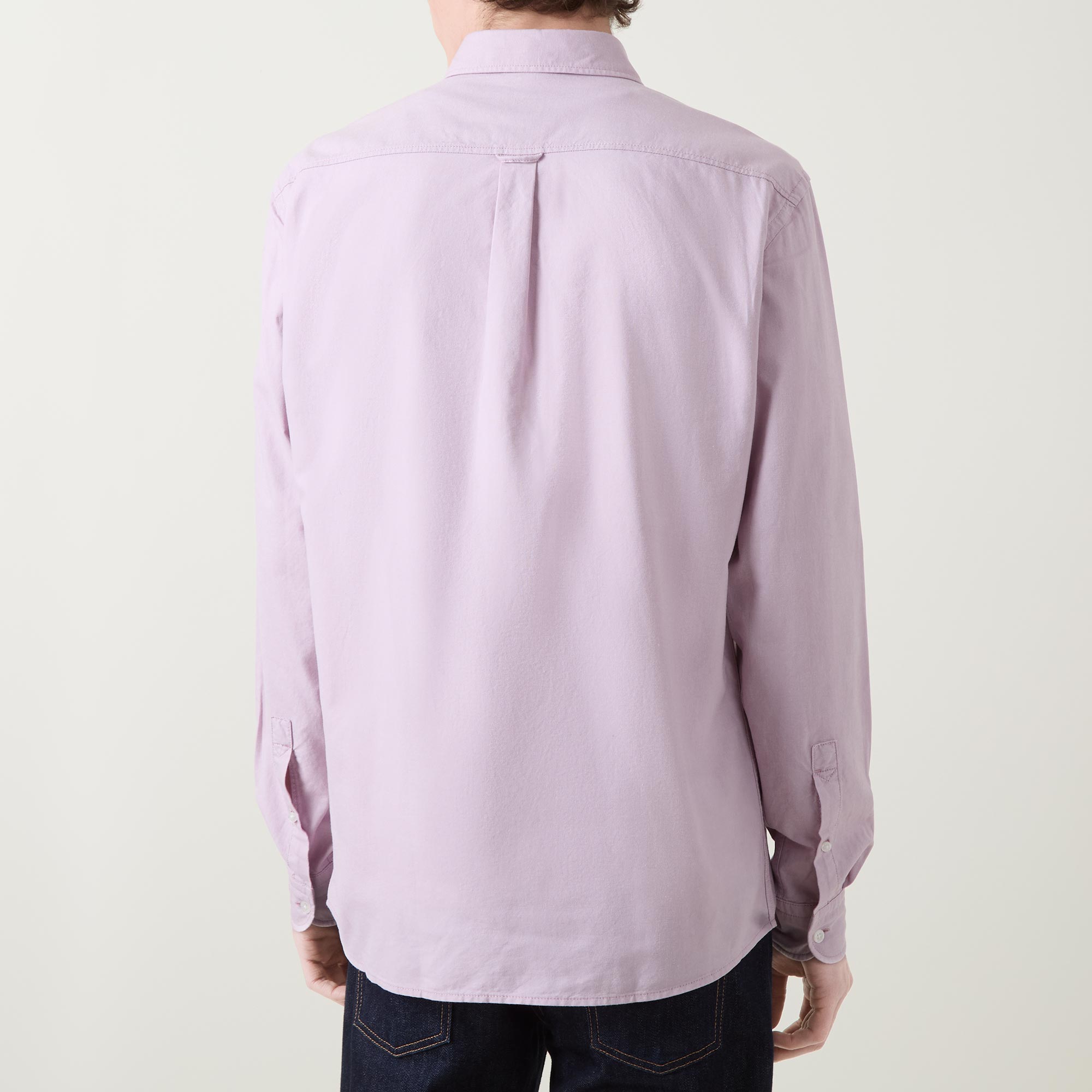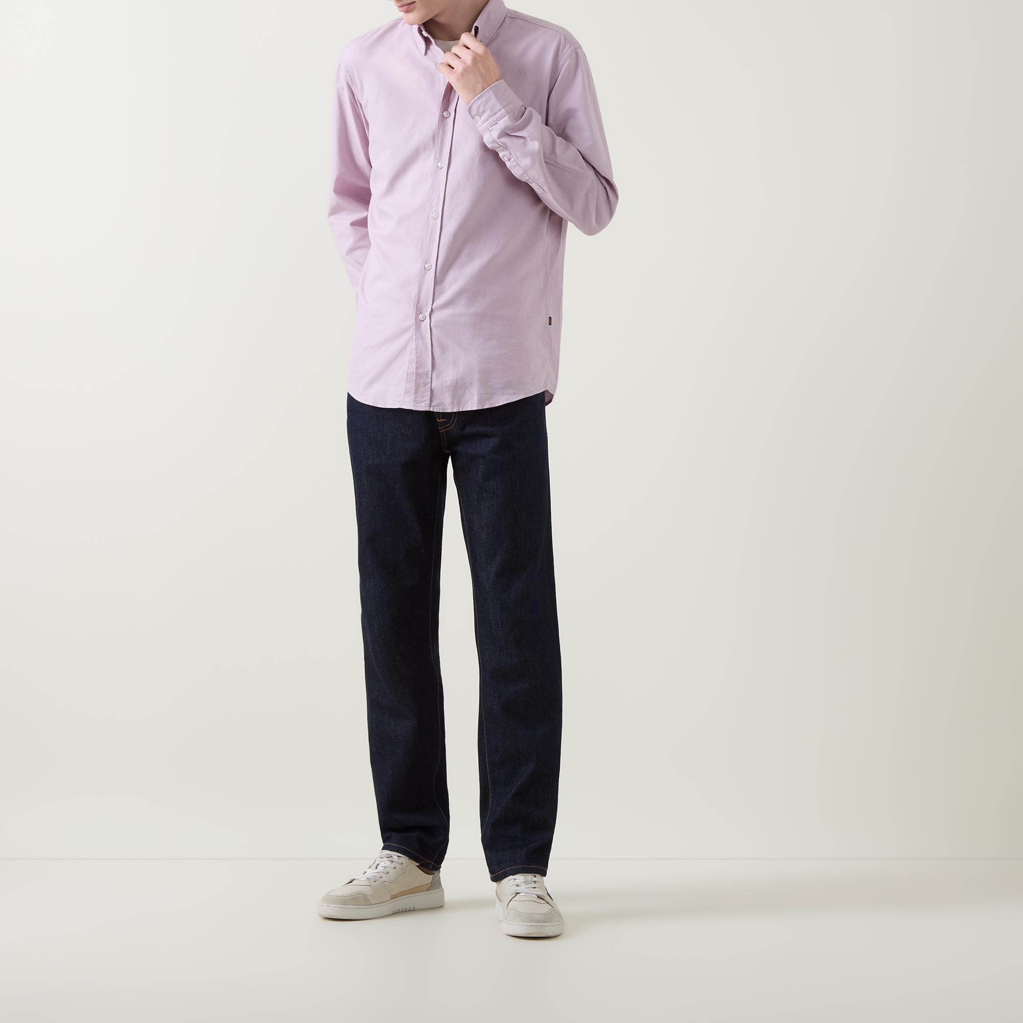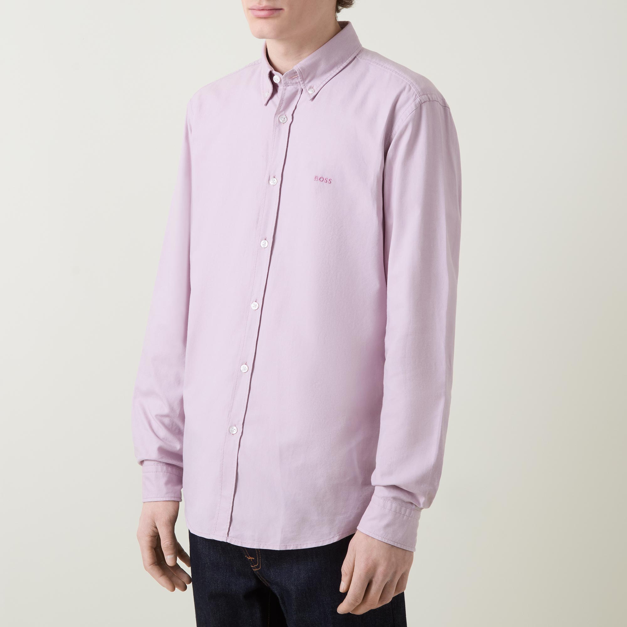 • Button-down collar, long sleeves, button fastenings, logo detail, curved hemline