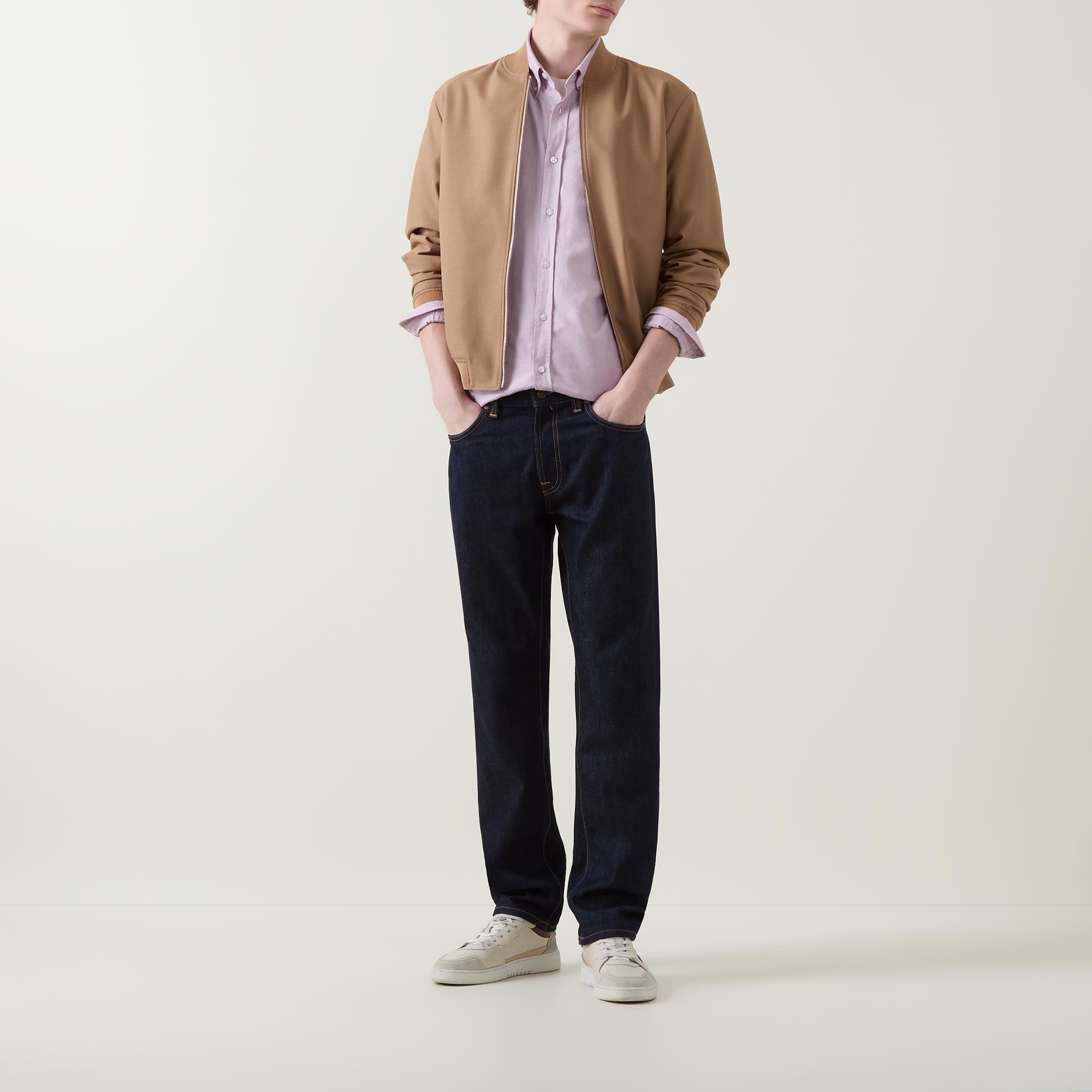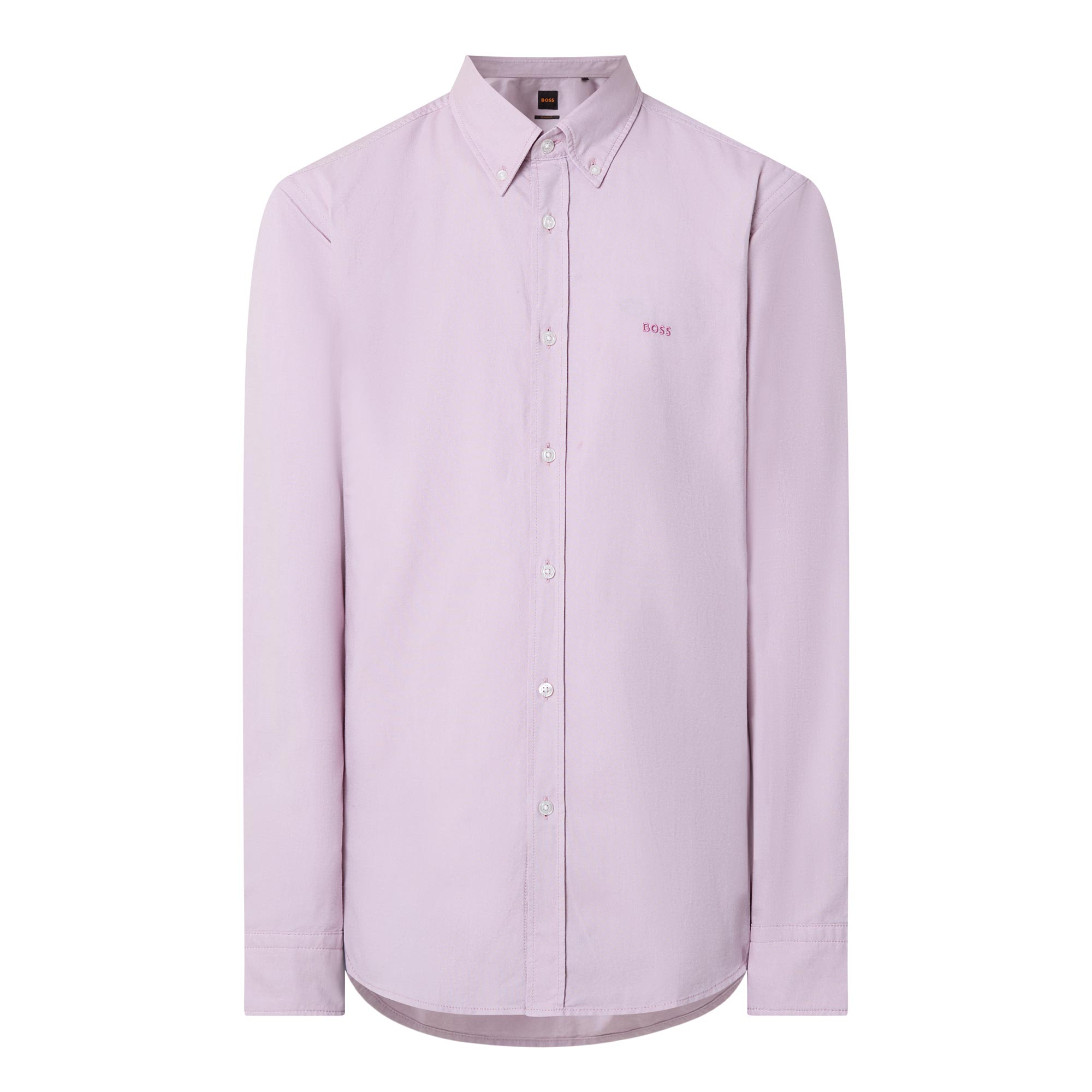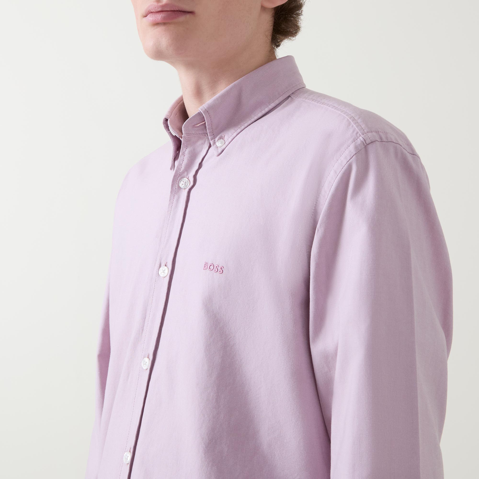 • Button-down collar, long sleeves, button fastenings, logo detail, curved hemline