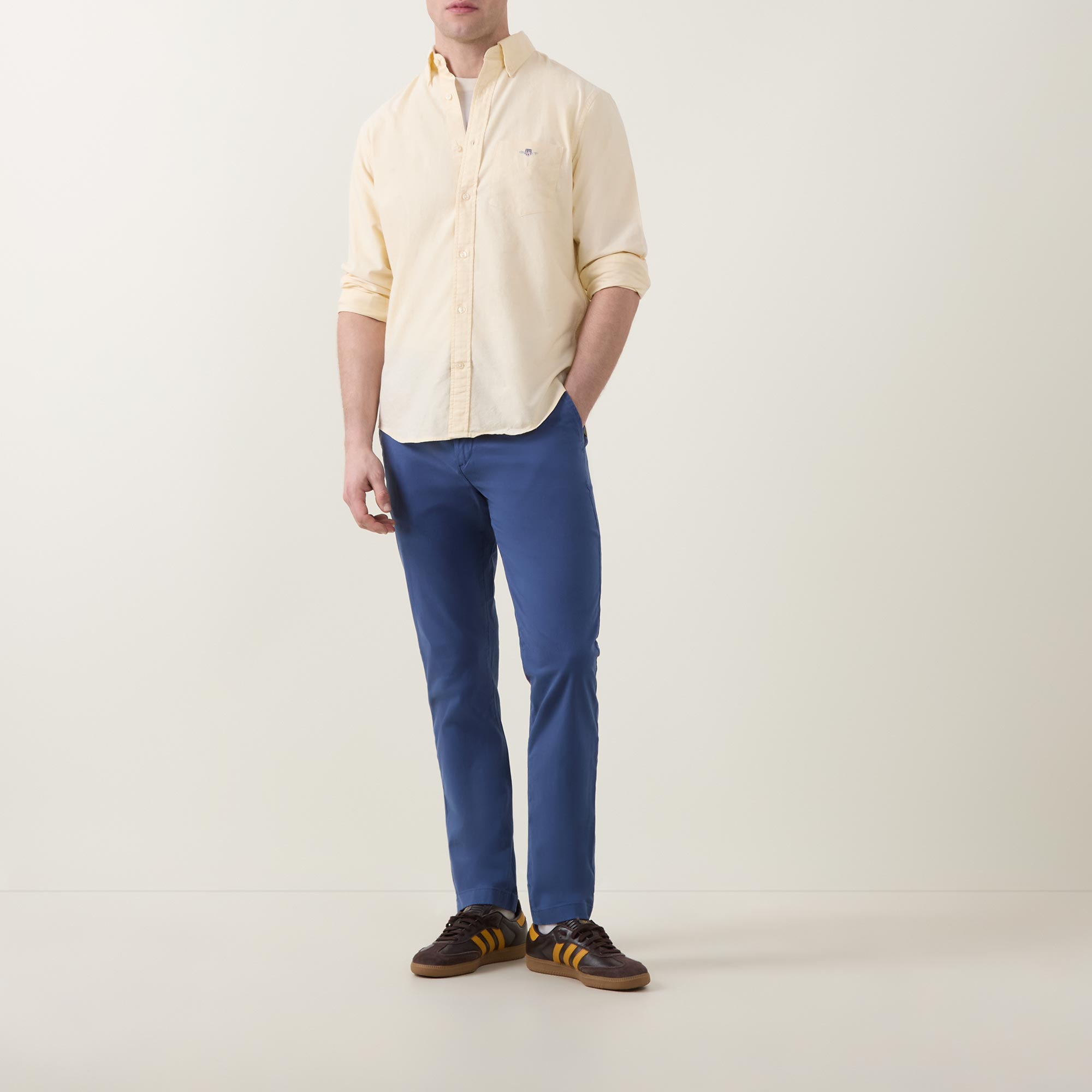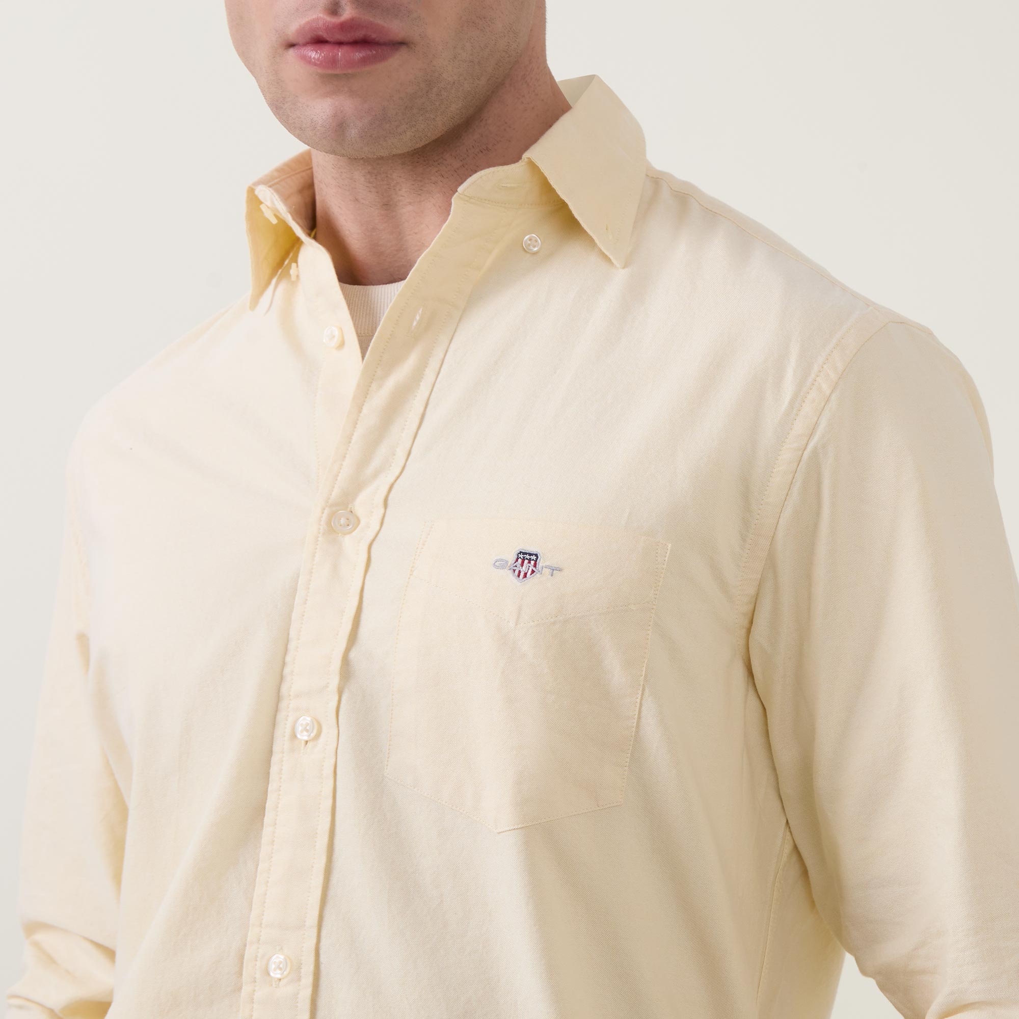 • Button down point collar, long sleeves, buttoned cuffs, one chest patch pocket, front button fastening, curved hem, rear box pleat, locker loop, Shield logo embroidery on the chest