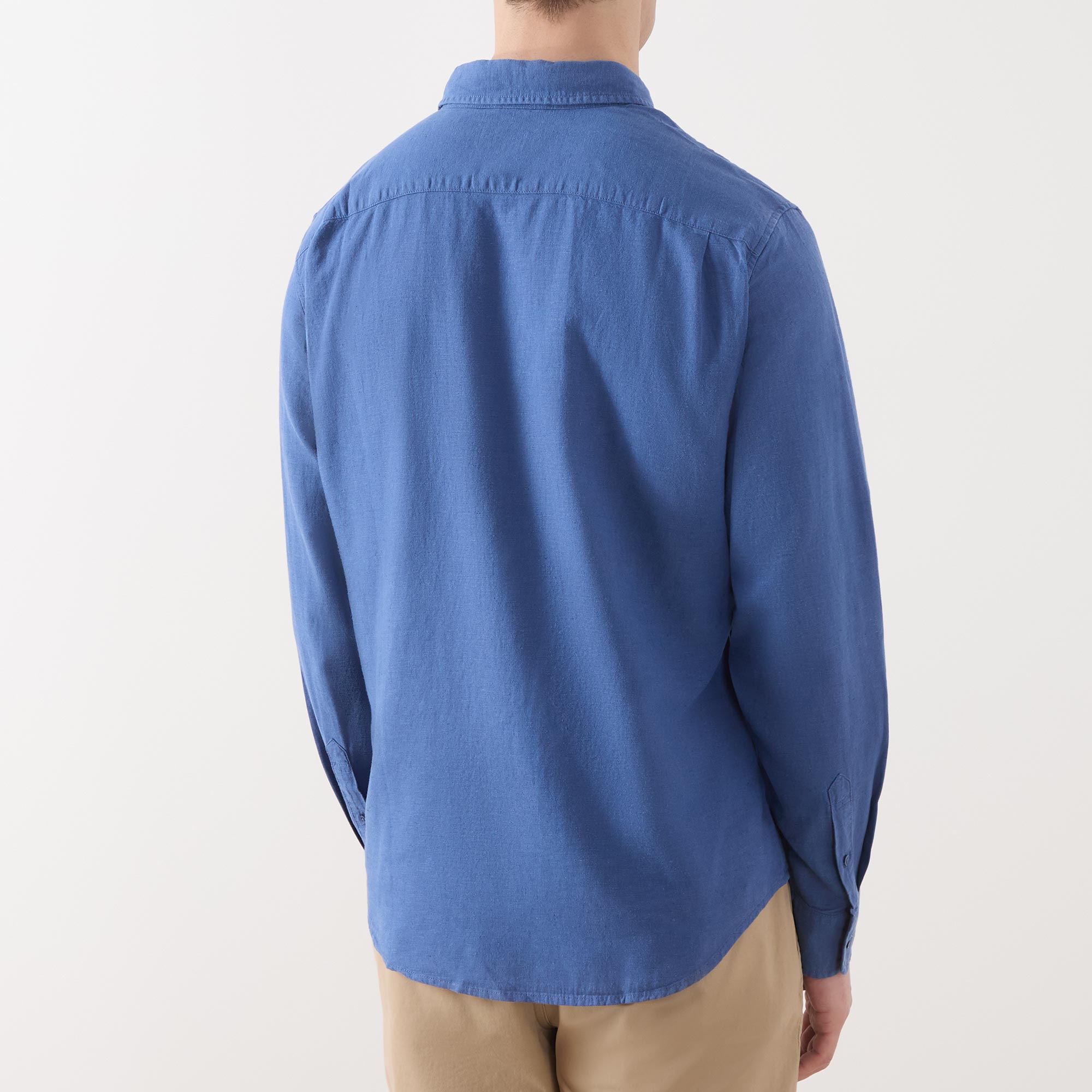 • Point collar, long sleeves, buttoned cuffs, front button fastening, one chest patch pocket, curved hem, signature logo tag, solid design