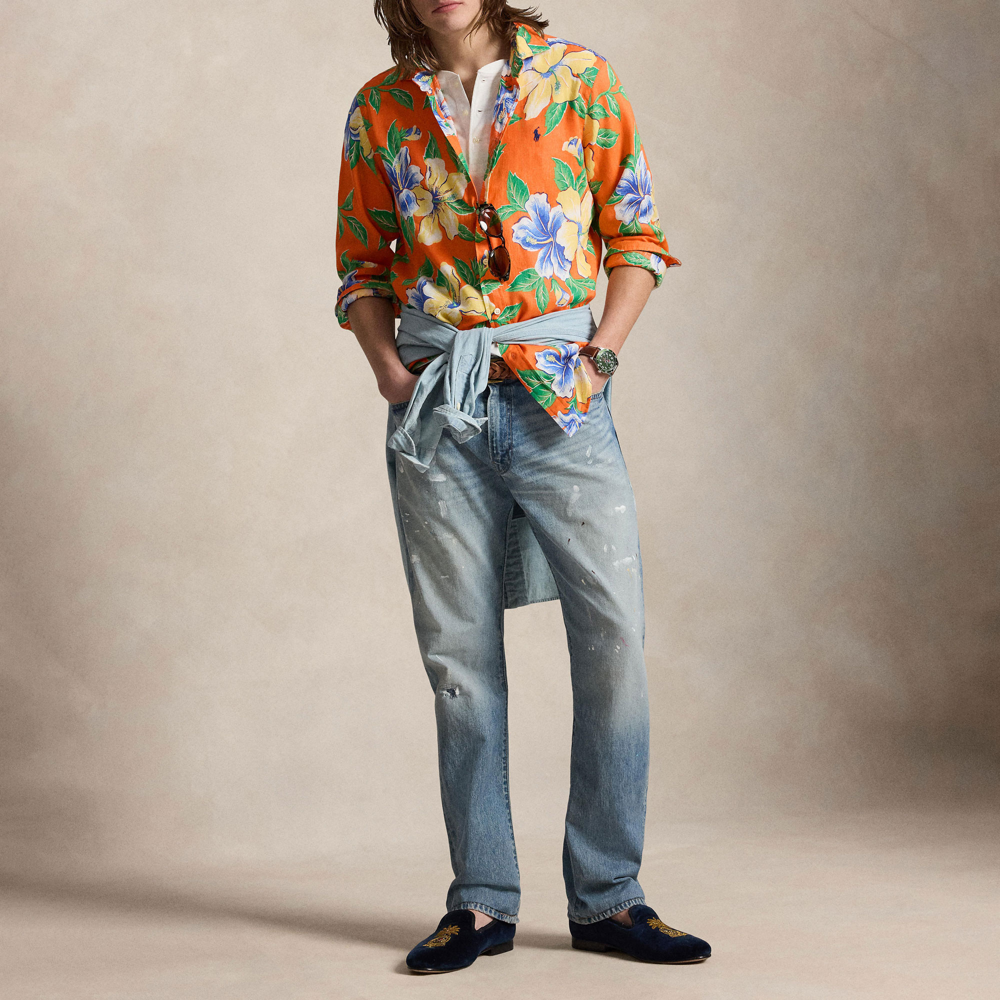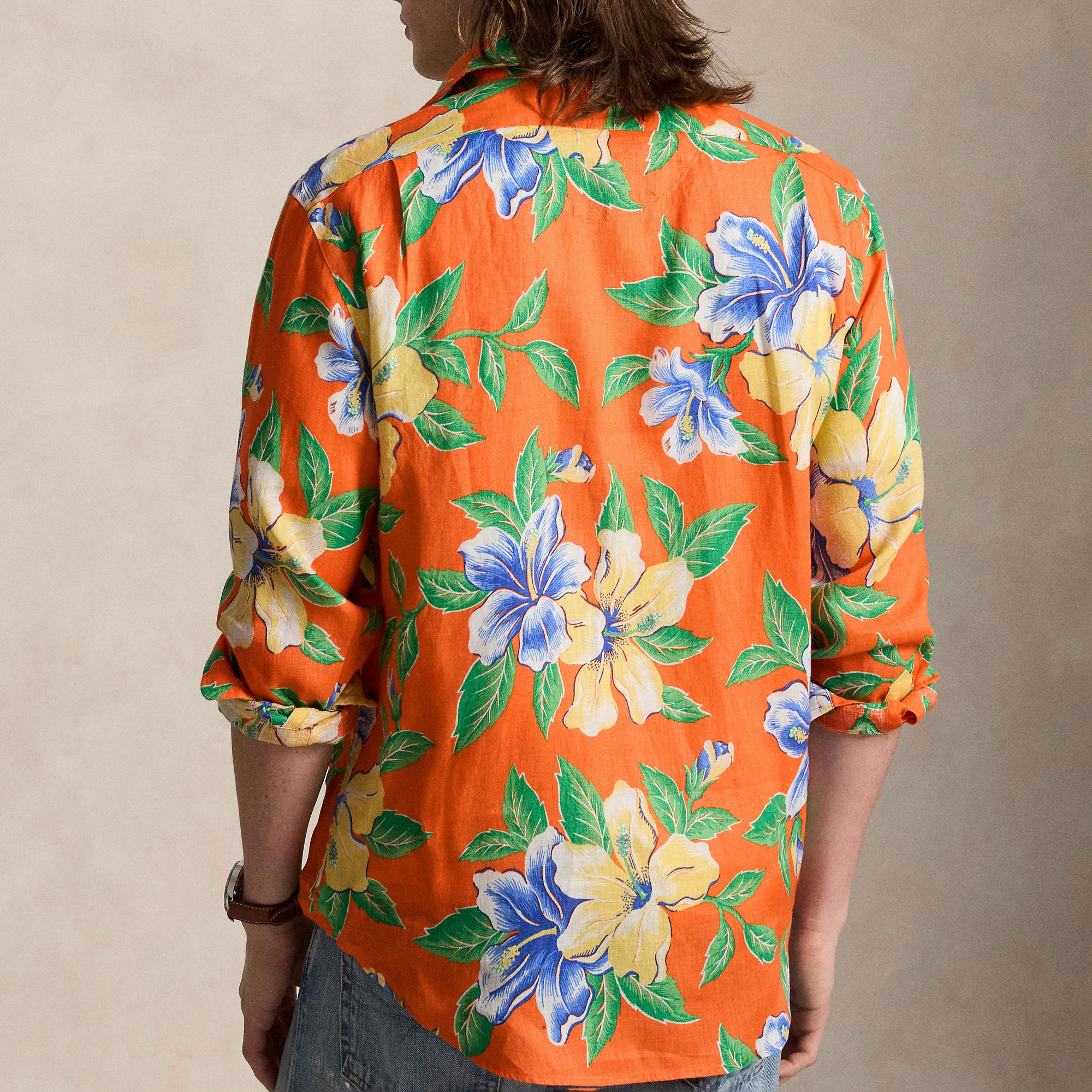 POLO RALPH LAUREN Beach Summer Collection Tropical Floral Pony Logo Linen Shirt