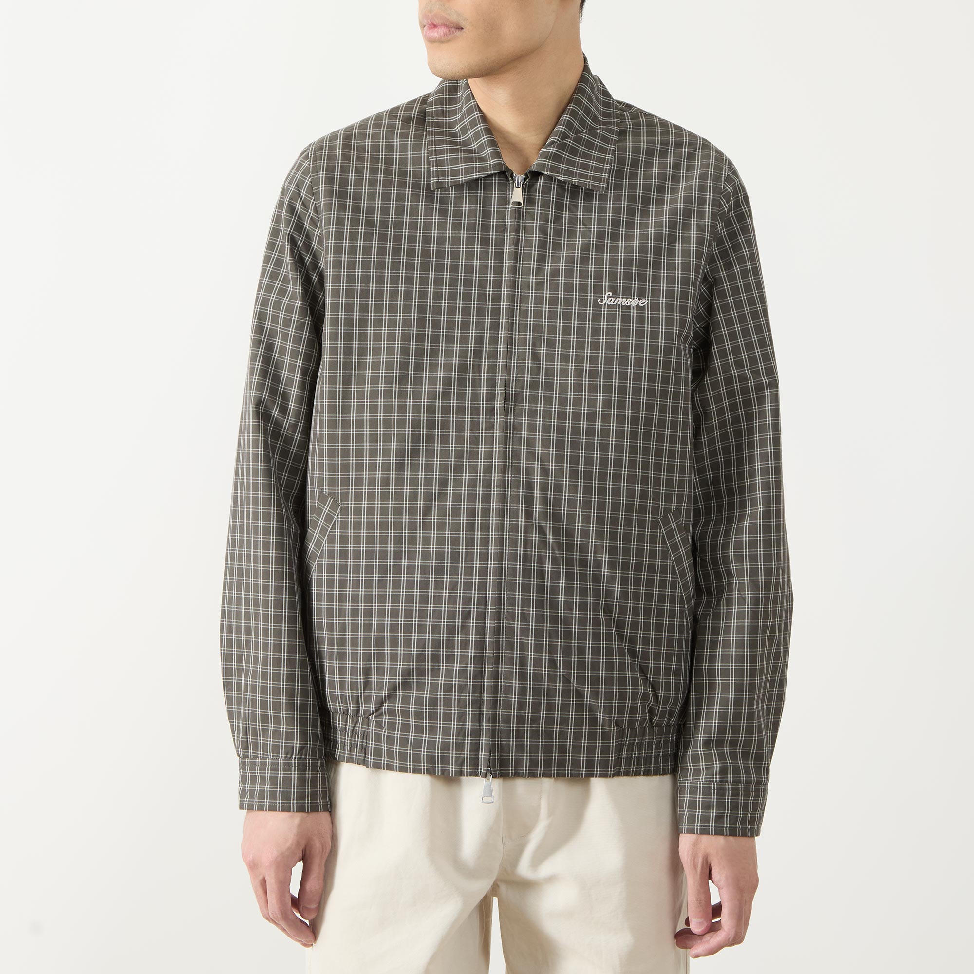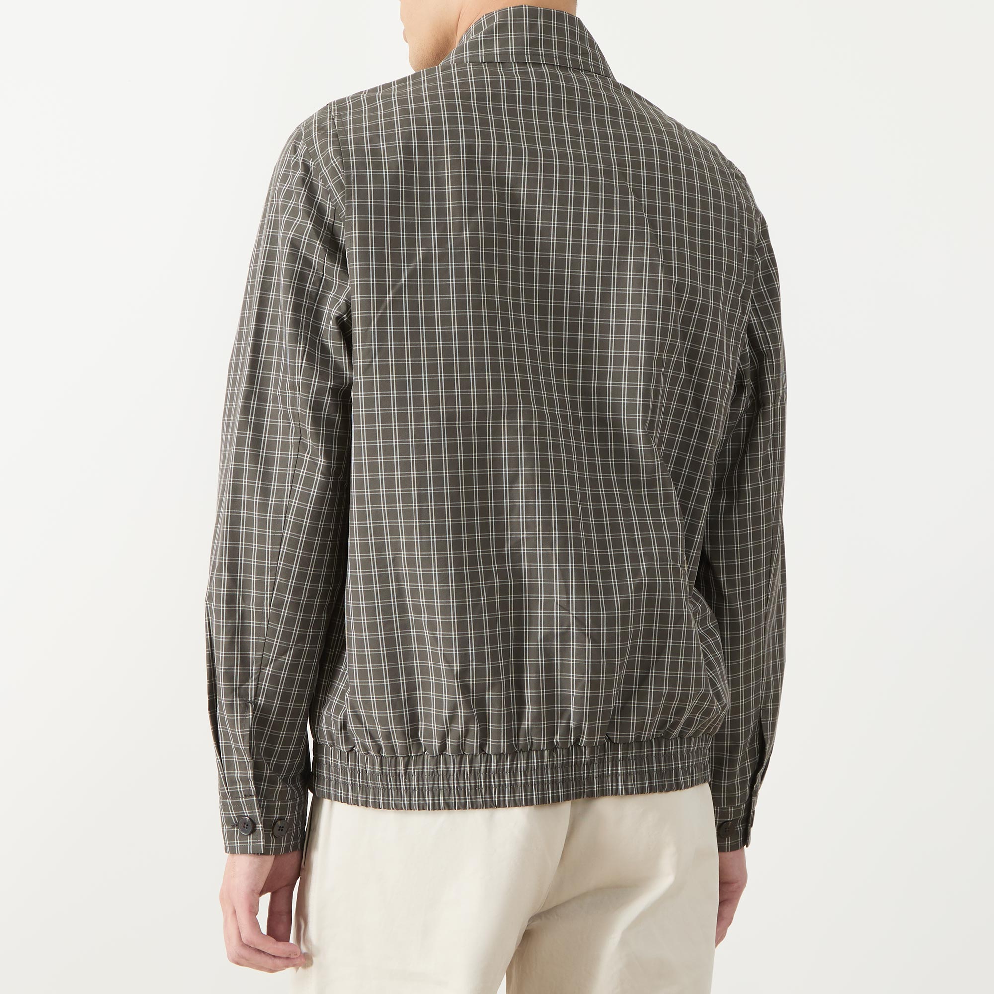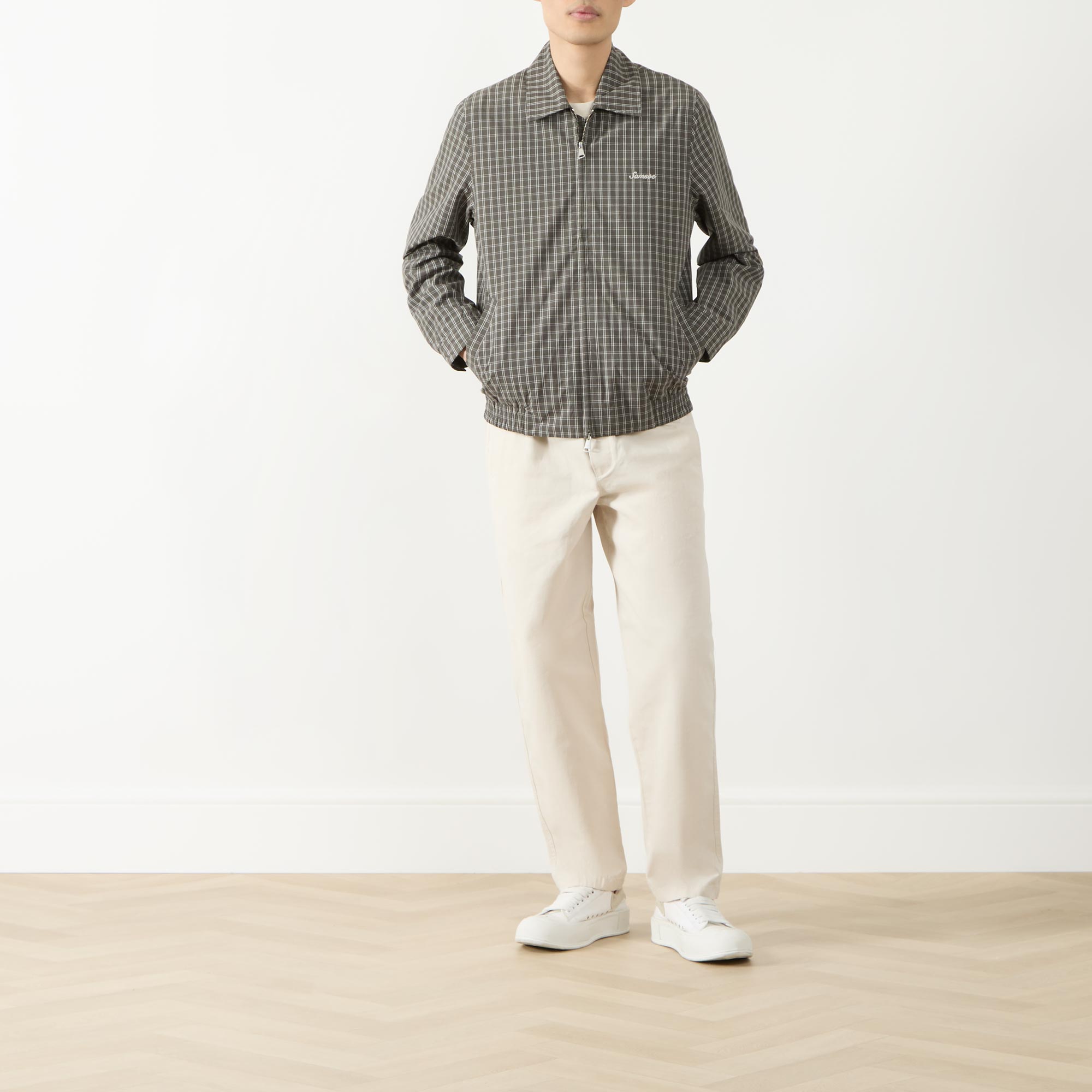 - Checked print, zip fastening, pointed collar, embroidered logo, elasticated hem, structured cuffs