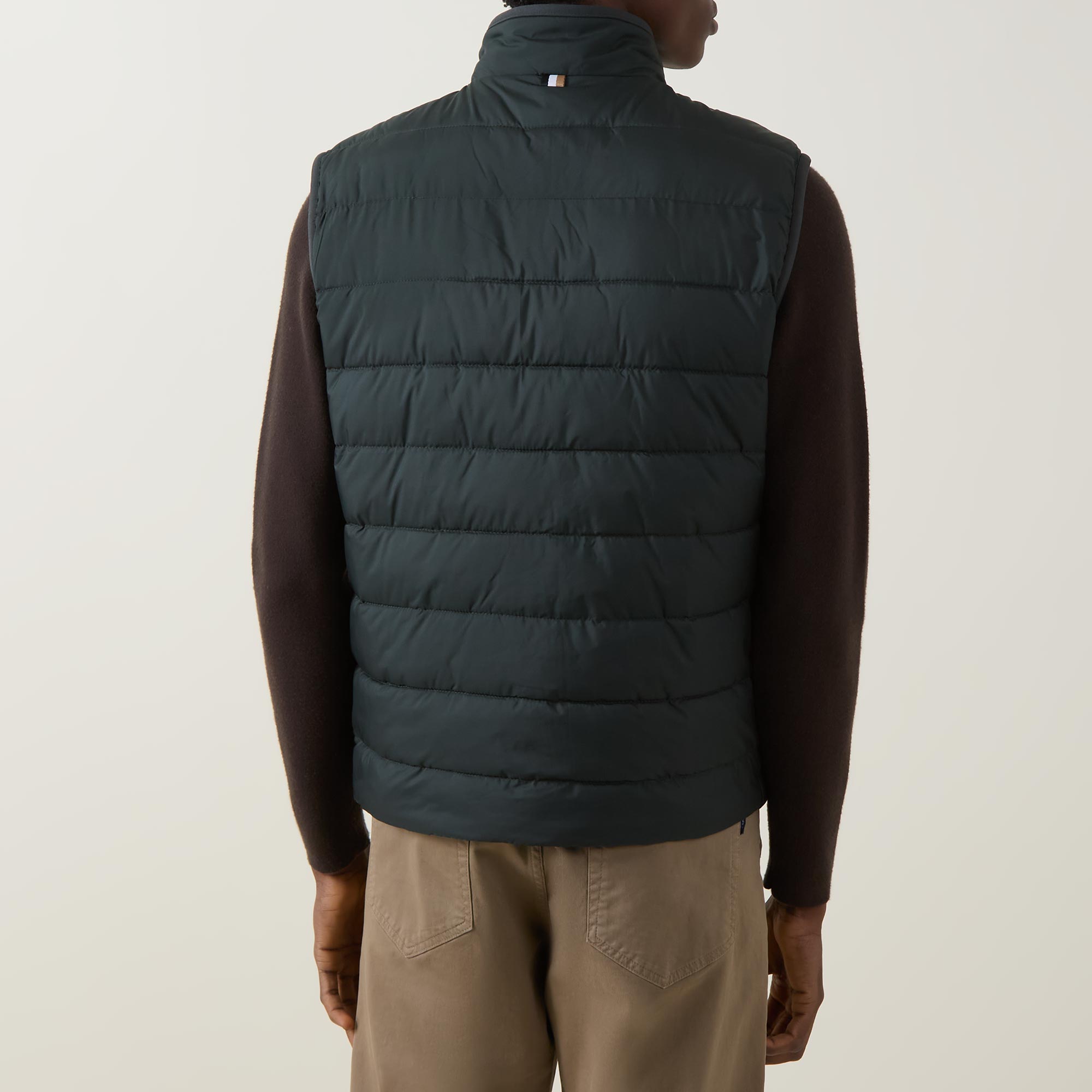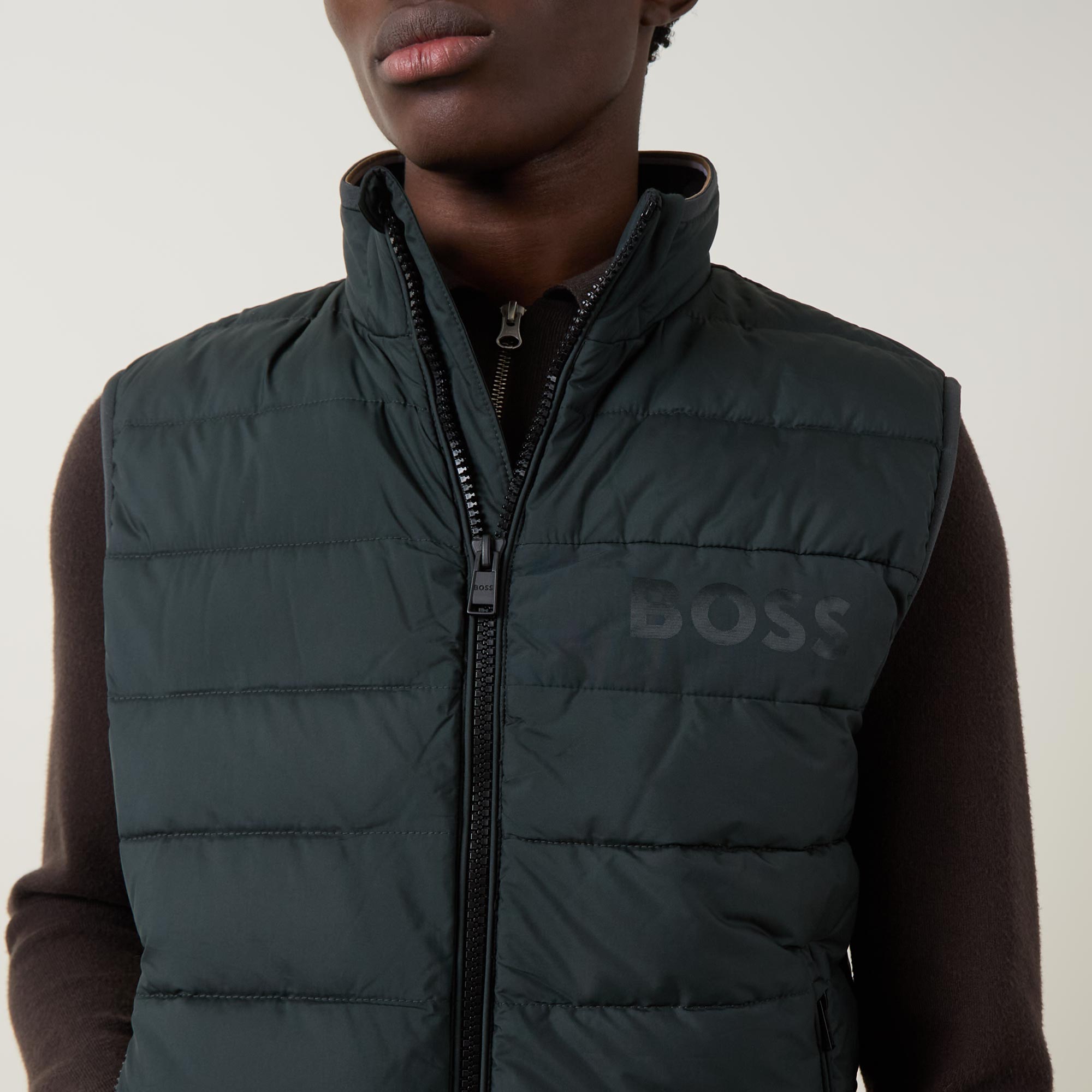 - High neckline, zip fastening, sleeveless, bound trims, padded, logo details, zipped pockets, water-repellent