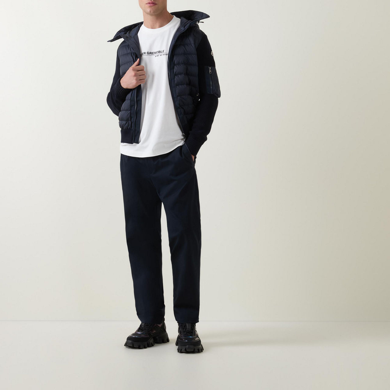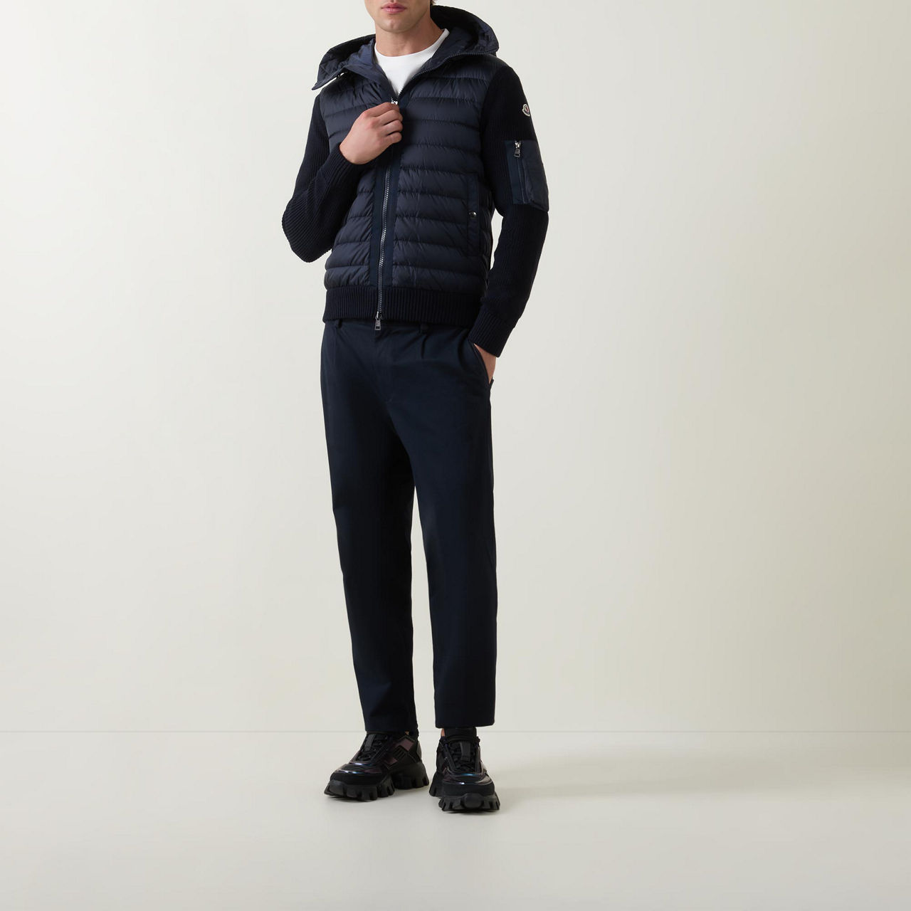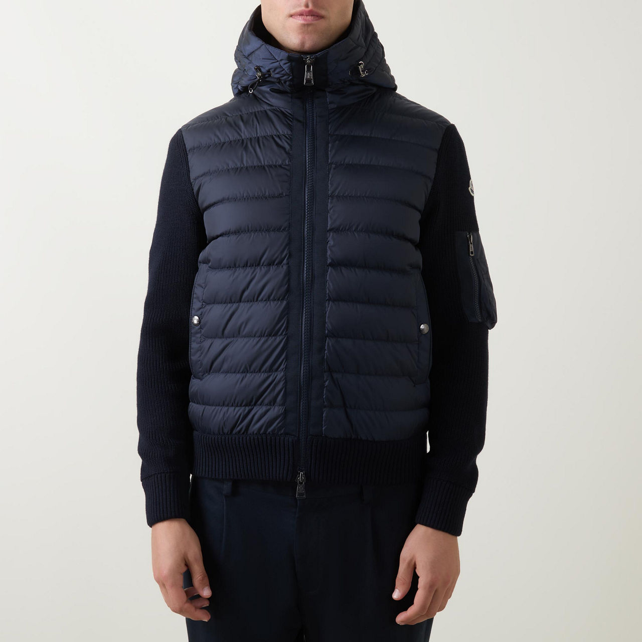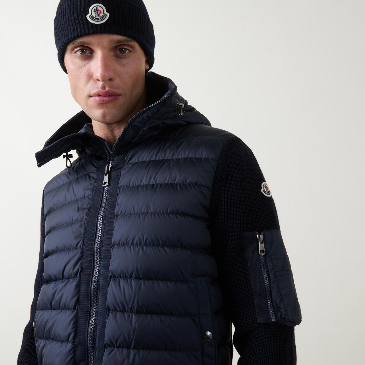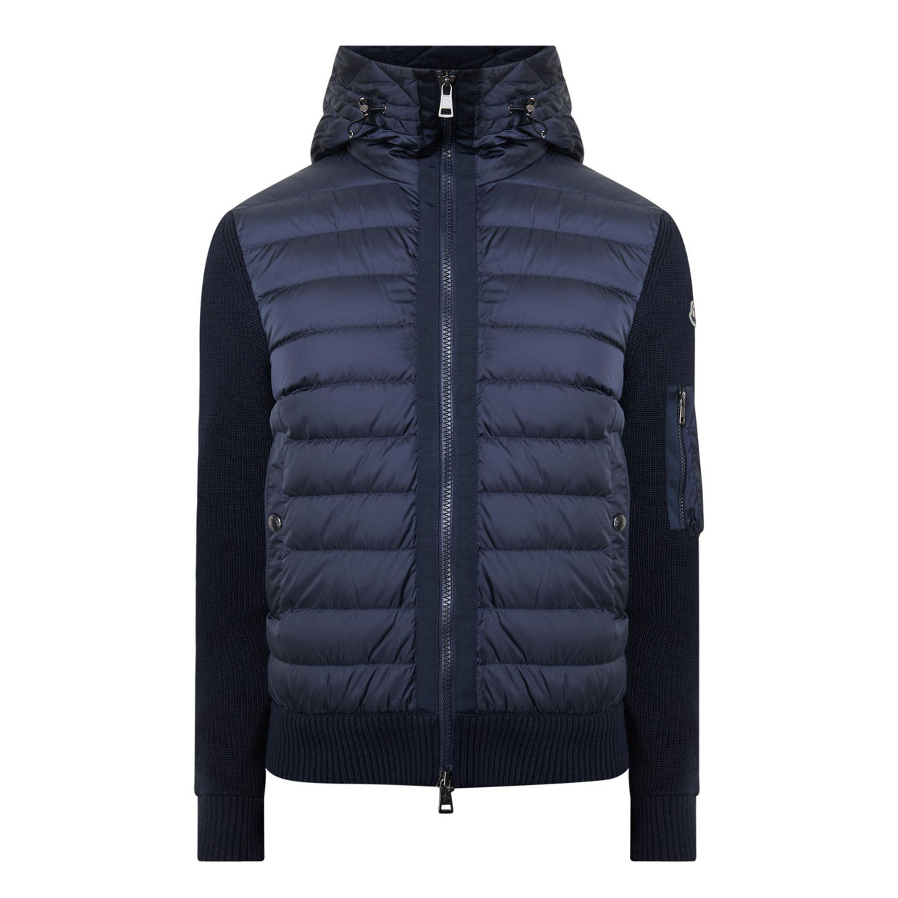 Moncler's Tricot jacket combines the design of a cosy cardigan with the weather-resistant protection you'd expect from the label's outerwear. The body is padded with down and feather to keep in the heat to contrast with the super-soft knitted sleeves and back and it's stitched with the brand's signature logo at the side.