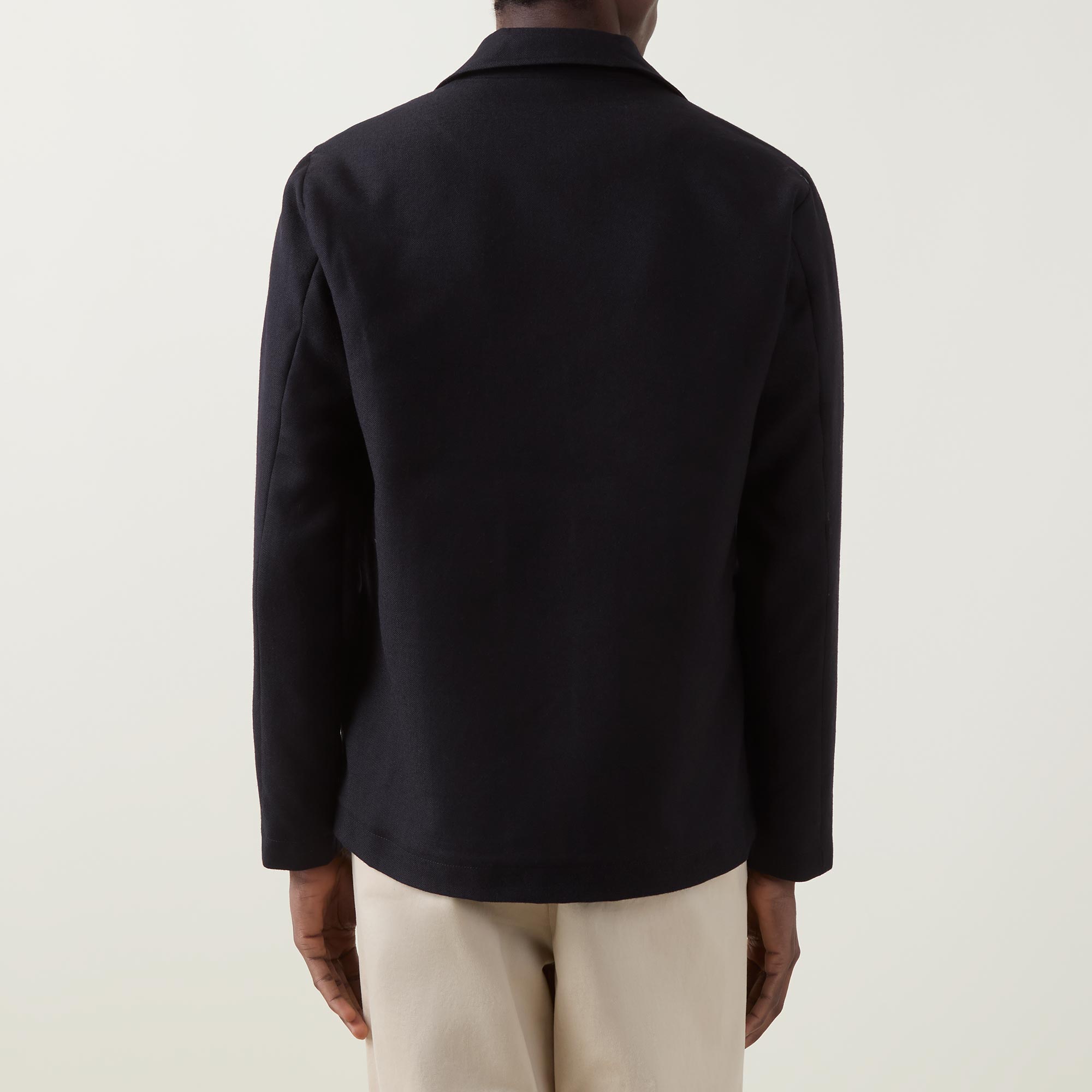 - Notched collar, long sleeves, single-breasted, front slip pockets, button fastenings