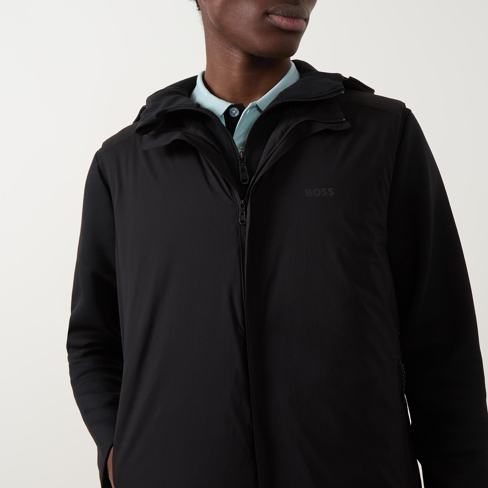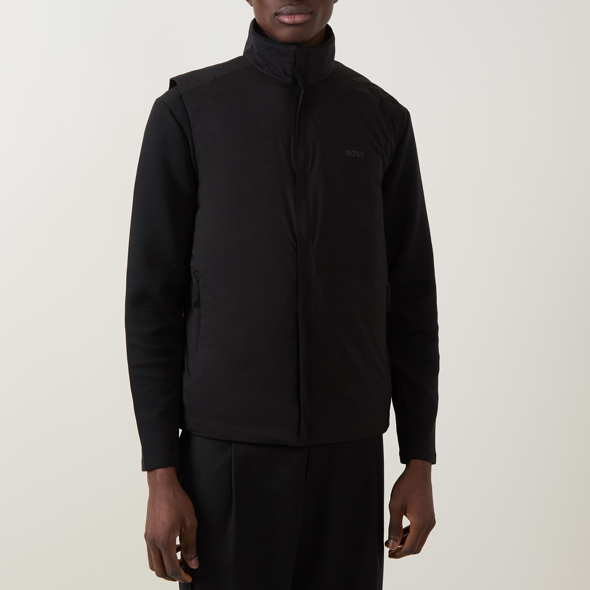 • Sleeveless, high neckline, zip fastening, side zipped pockets, logo detail