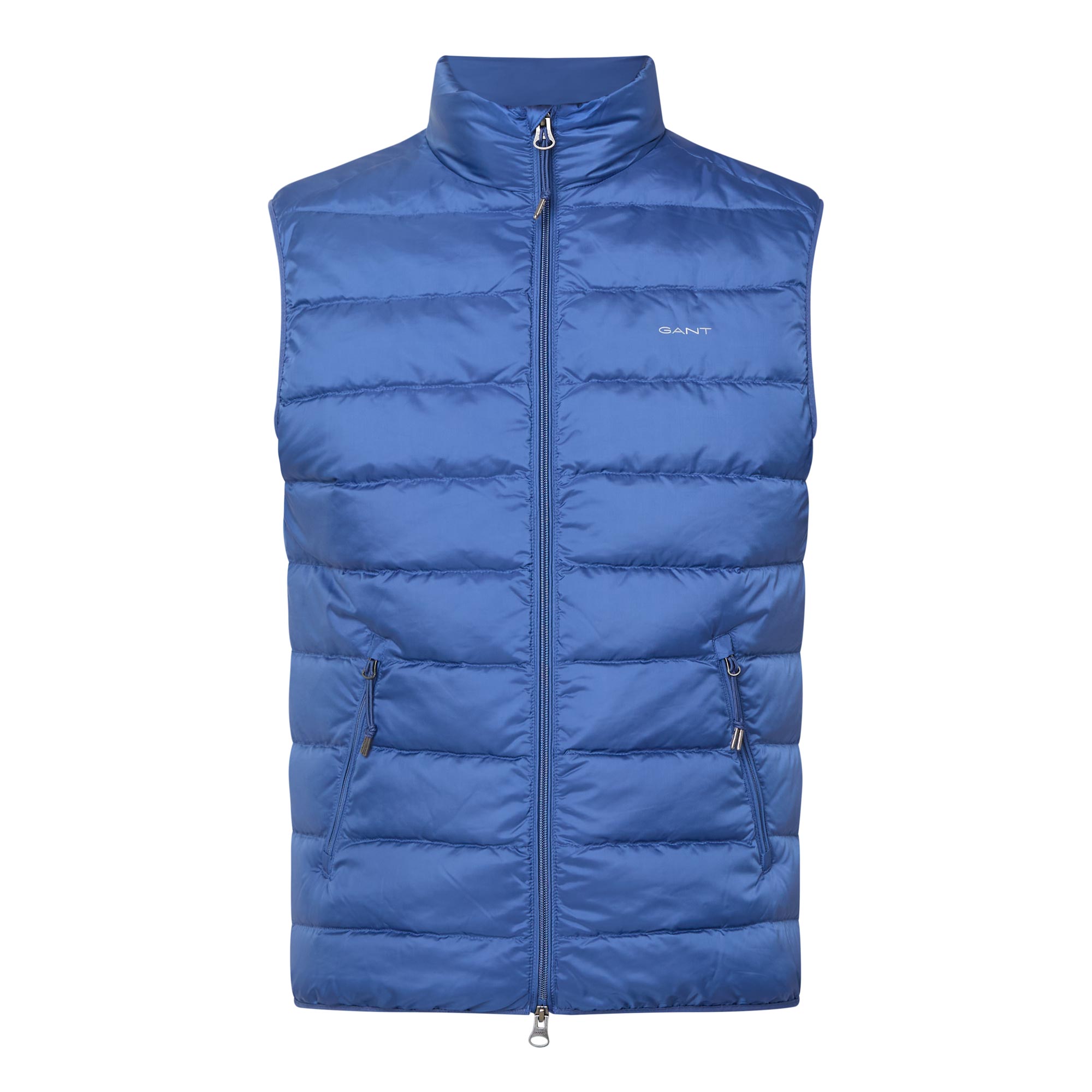 • Sleeveless, stand-up collar, full zip-through fastening, logo embroidery, two side zip pockets, padded finish