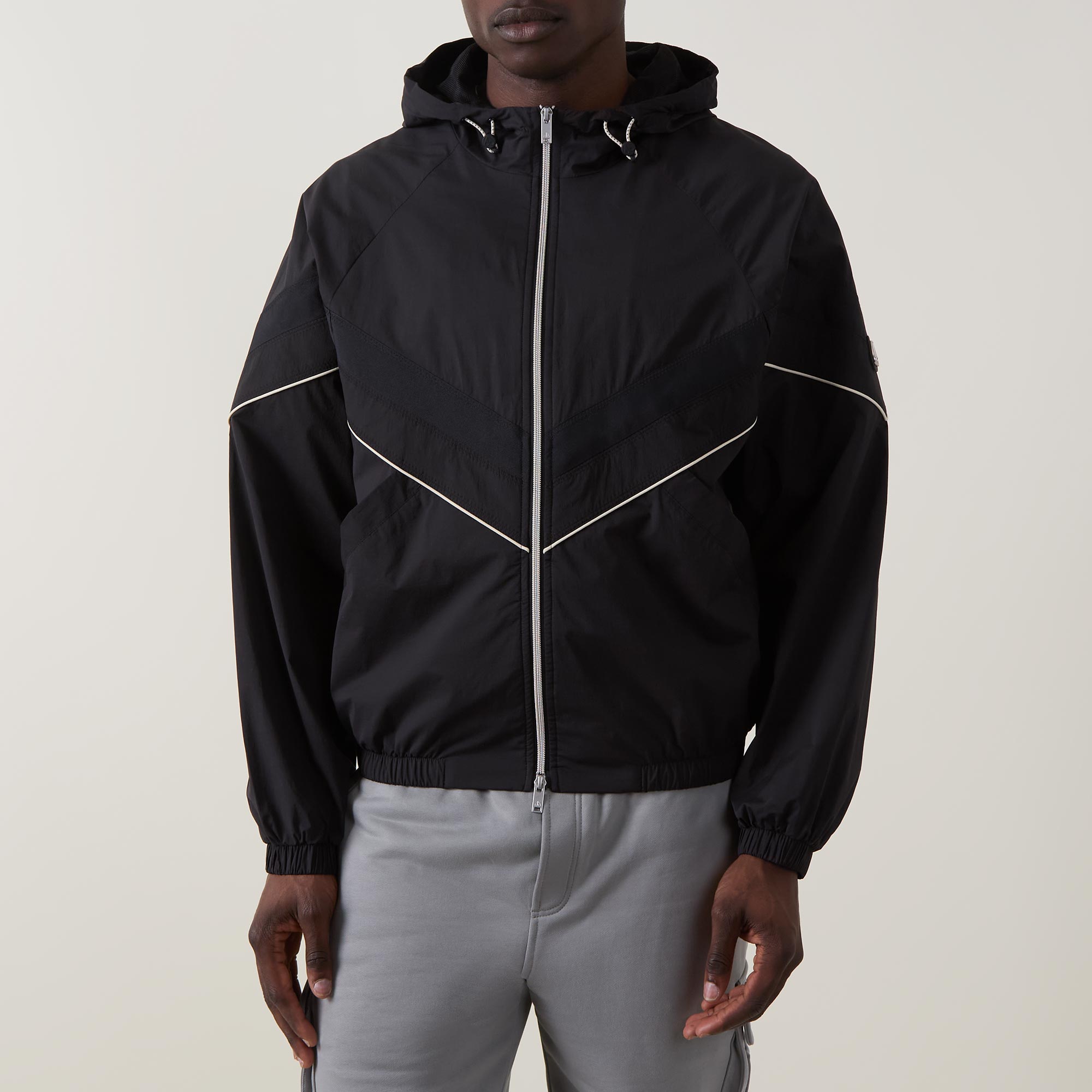 • Adjustable hood, two-way zip fastening, two snap pockets, zig-zag stitching details, colour-blocked chevron design, elasticated trims, logo details