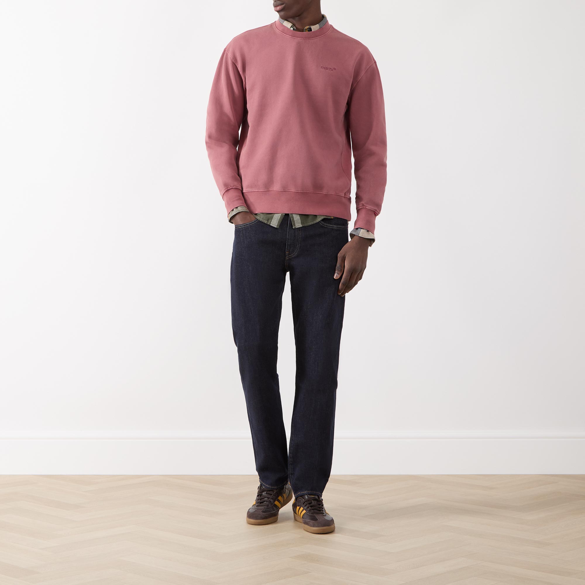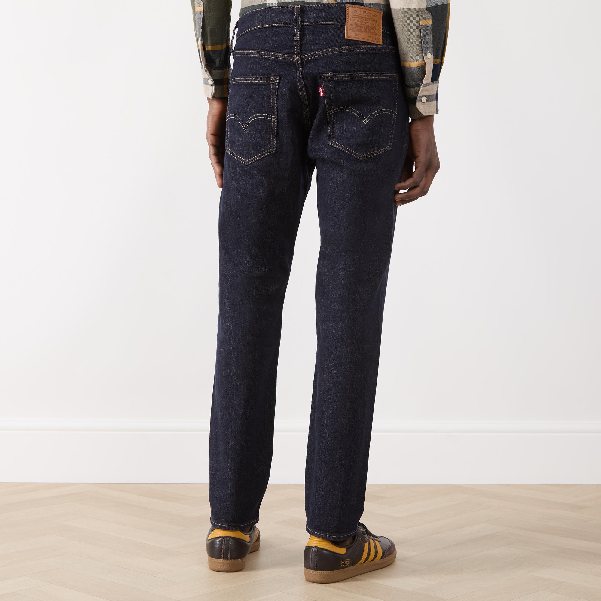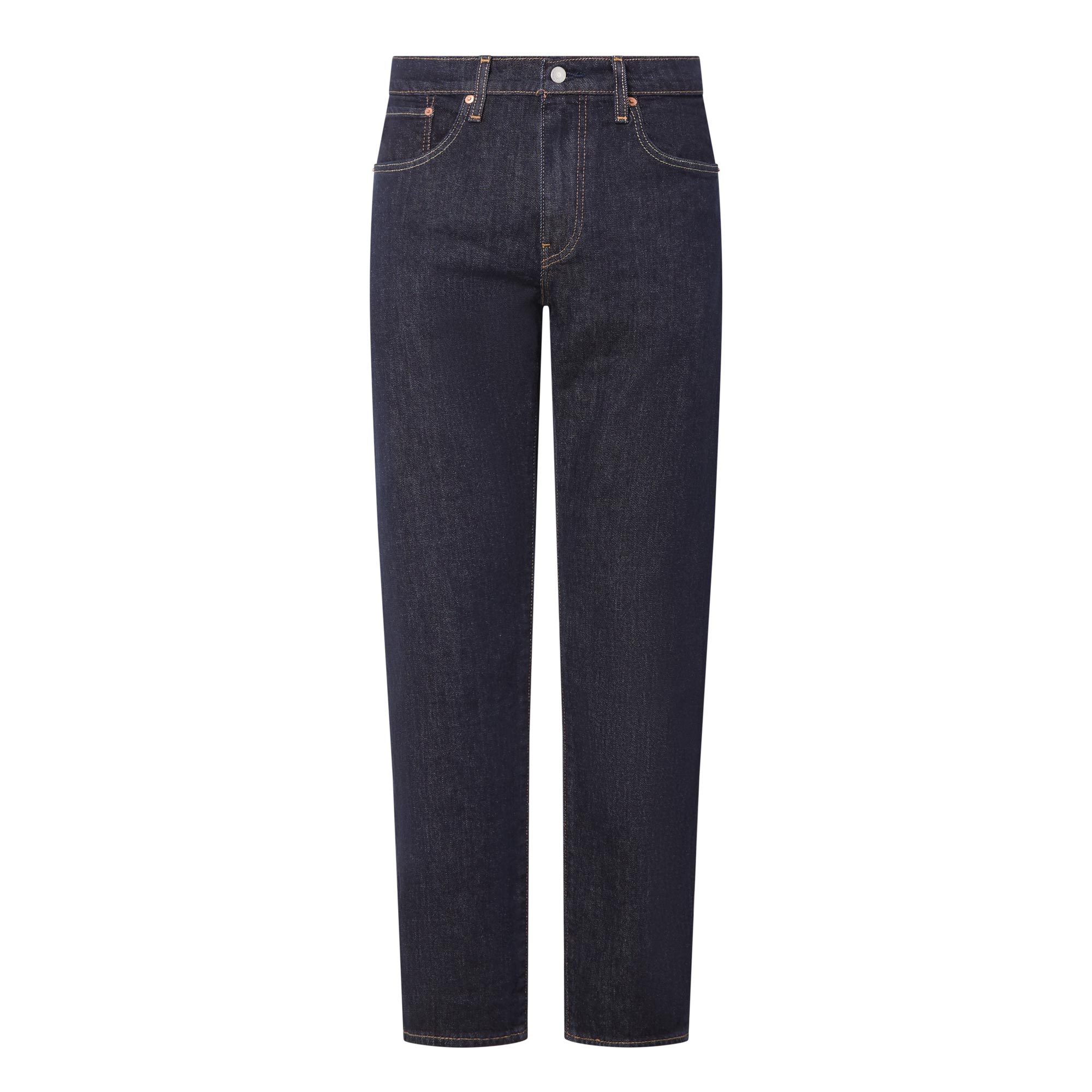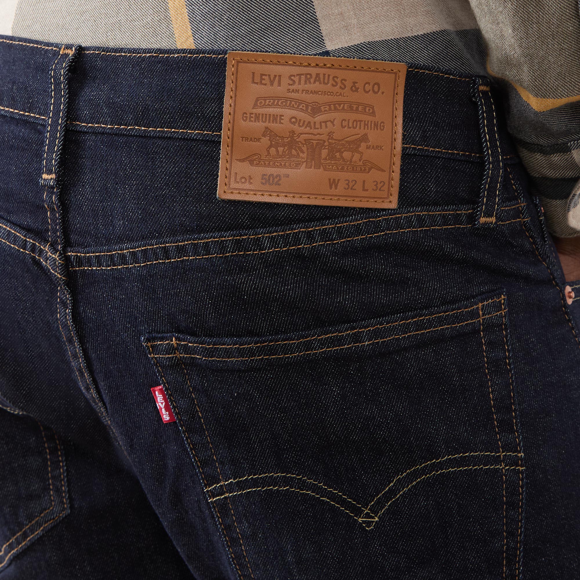 • Mid rise, tapered leg, belt loops, concealed zip fly and button fastening, five-pocket styling, clean hems, tobacco stitching, signature logo tag, logo patch, stretch denim, dark wash finish