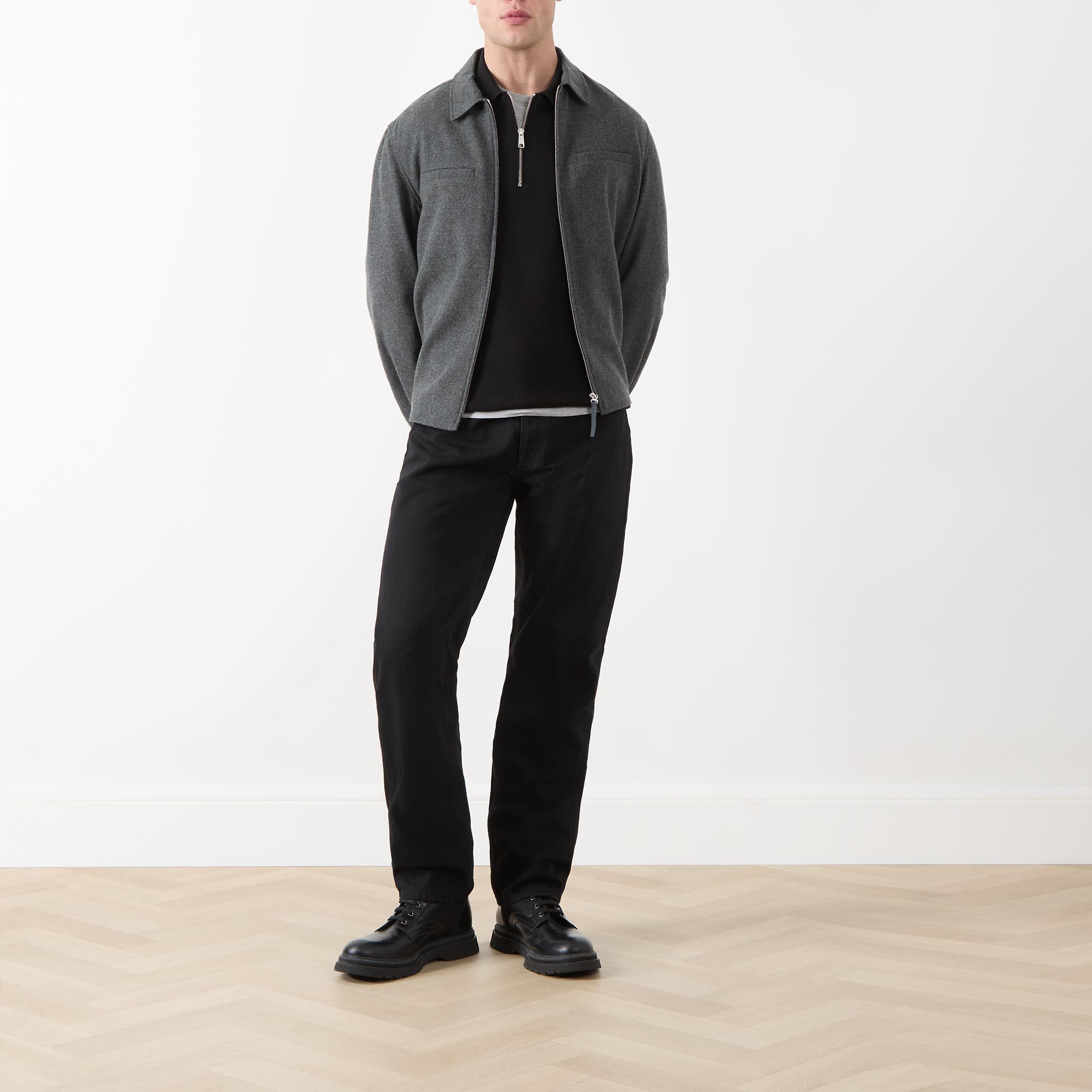 - Button and fly zip fastening, five-pocket style, belt loops, tonal stitching, logo badge