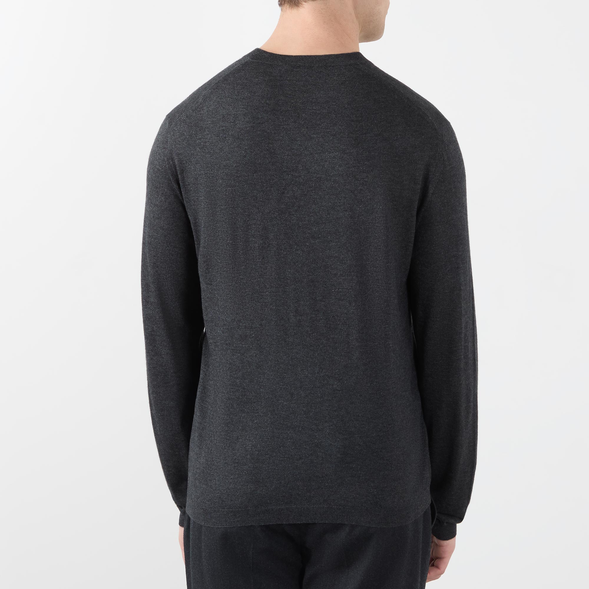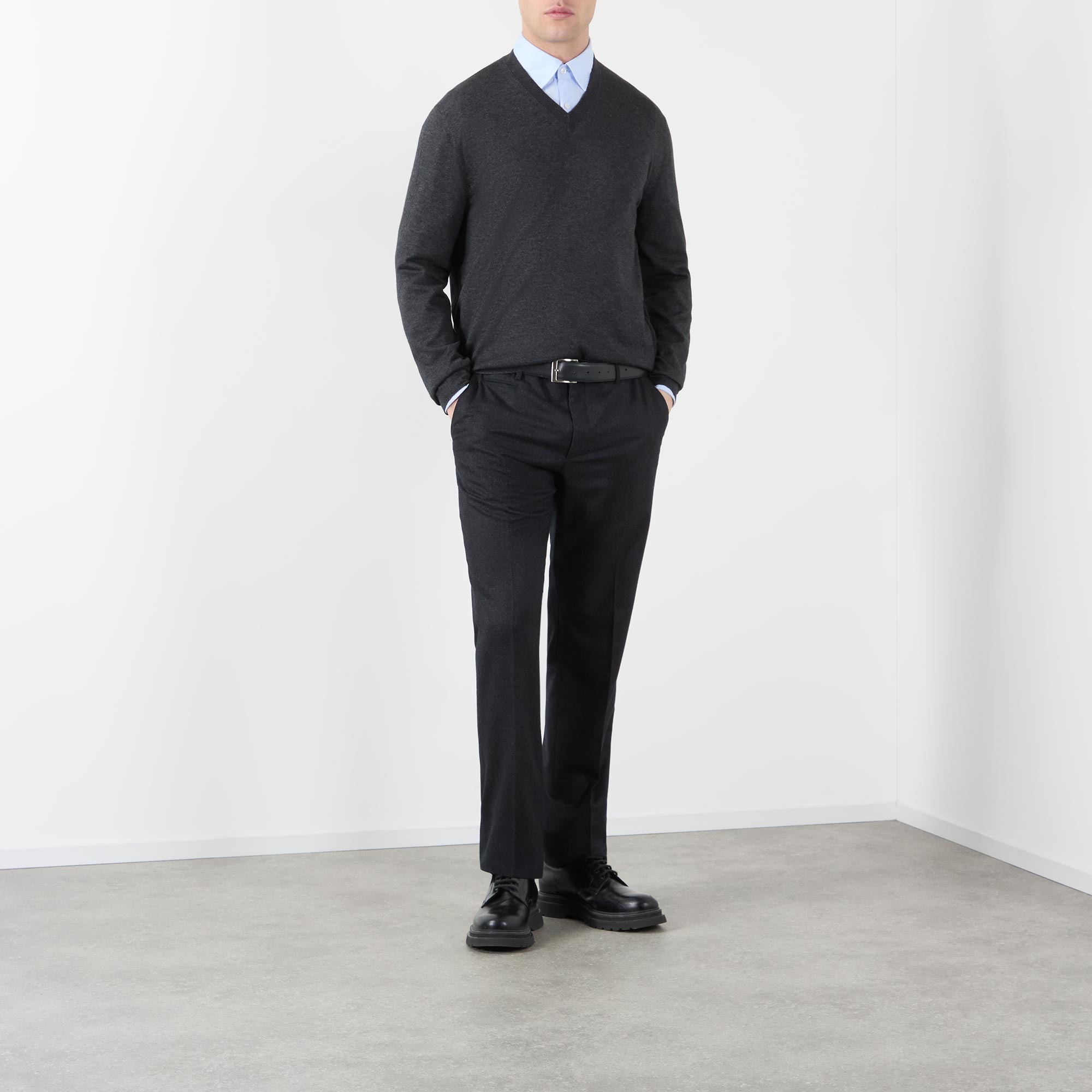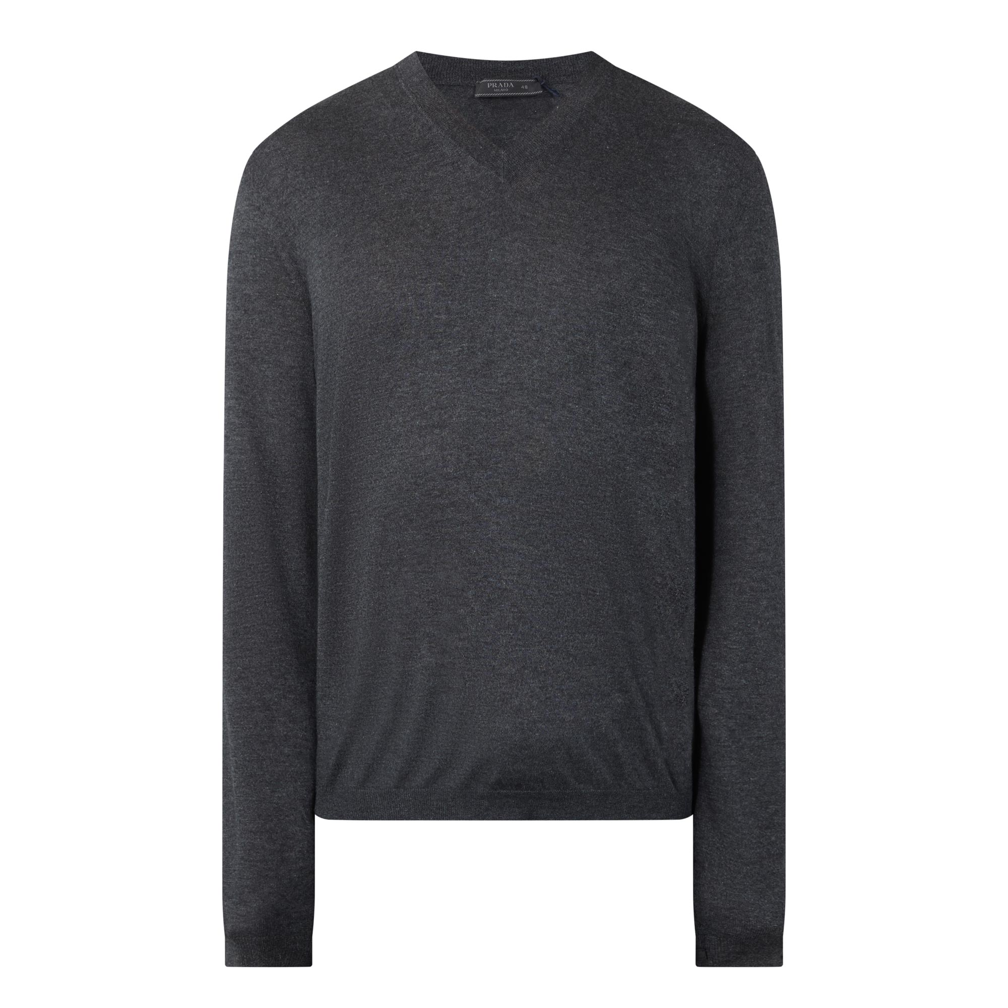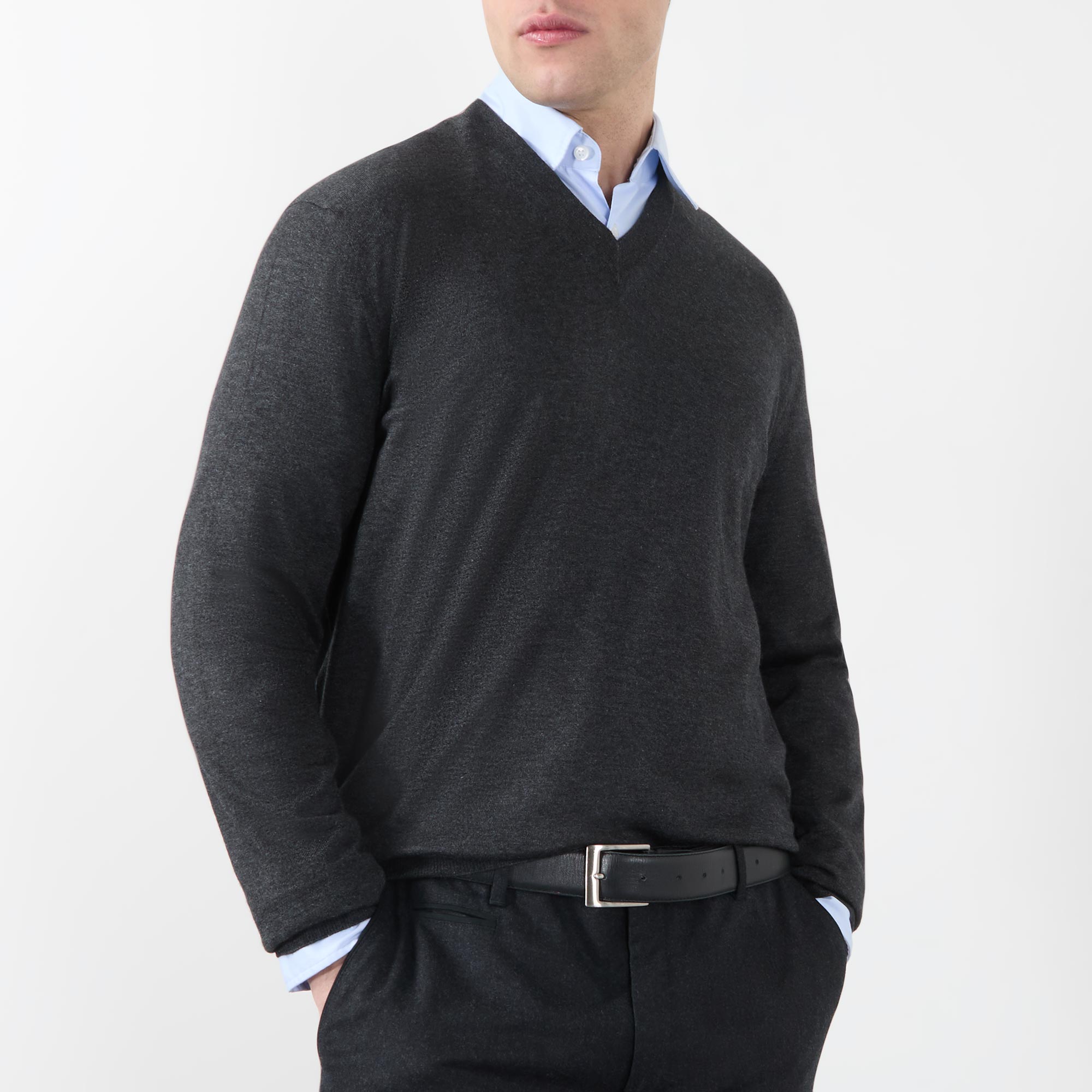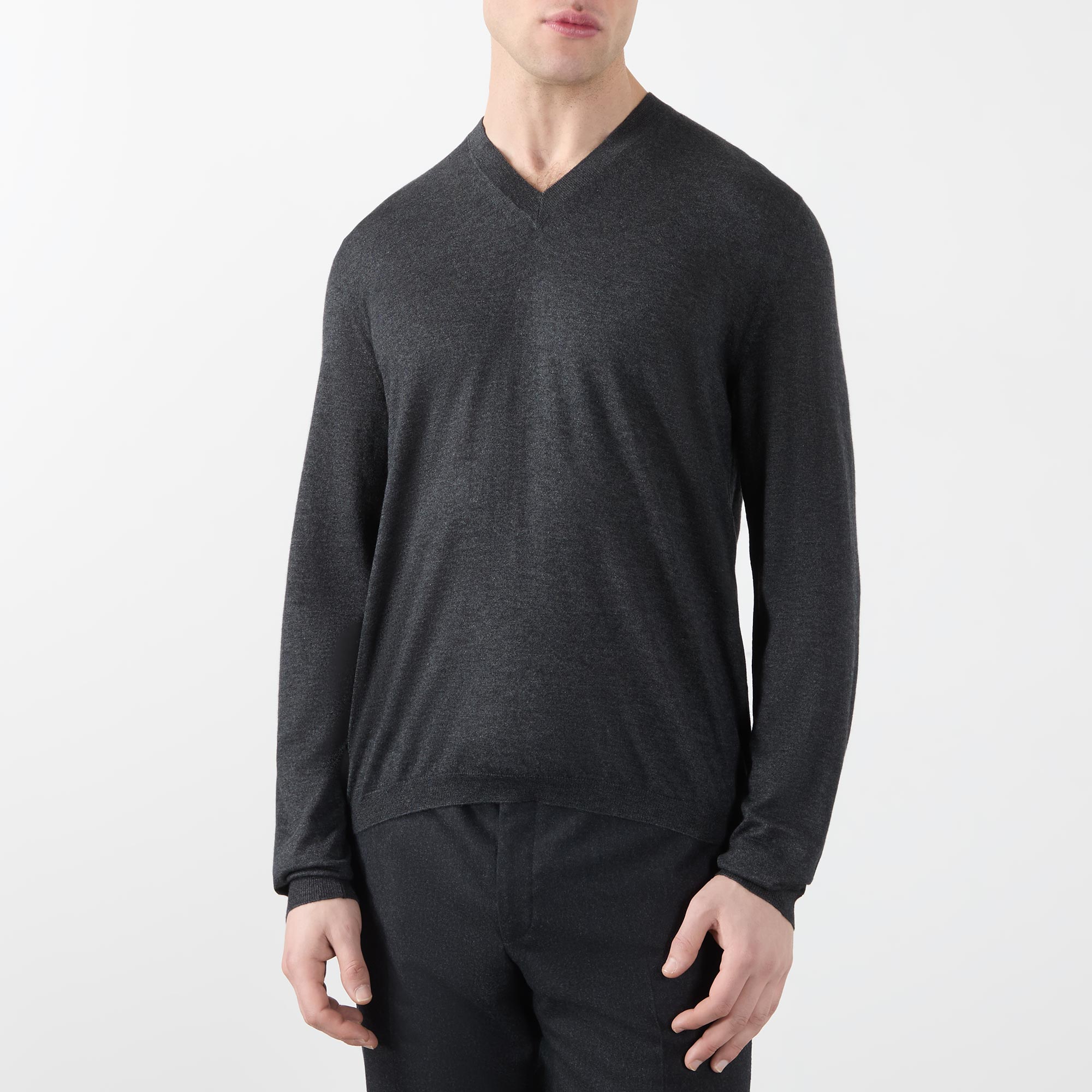 • V-neckline, long sleeves, straight hem, ribbed trims, fine knit construction, soft finish