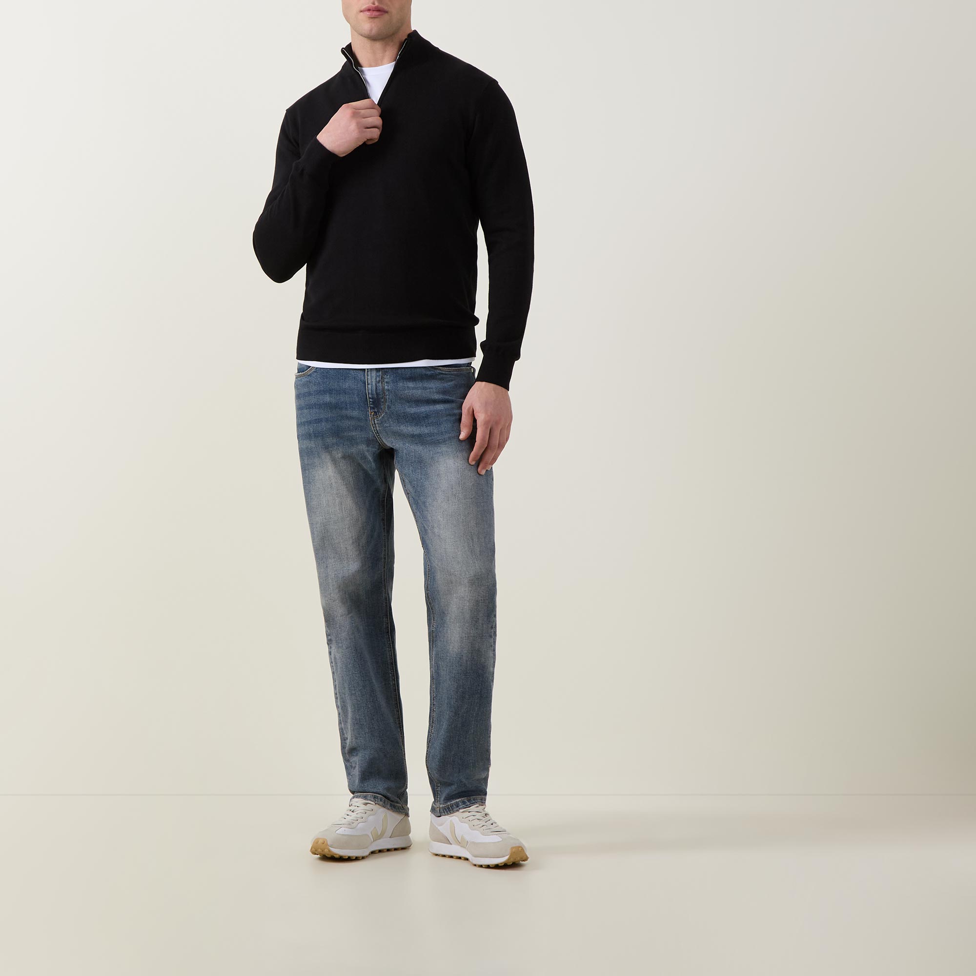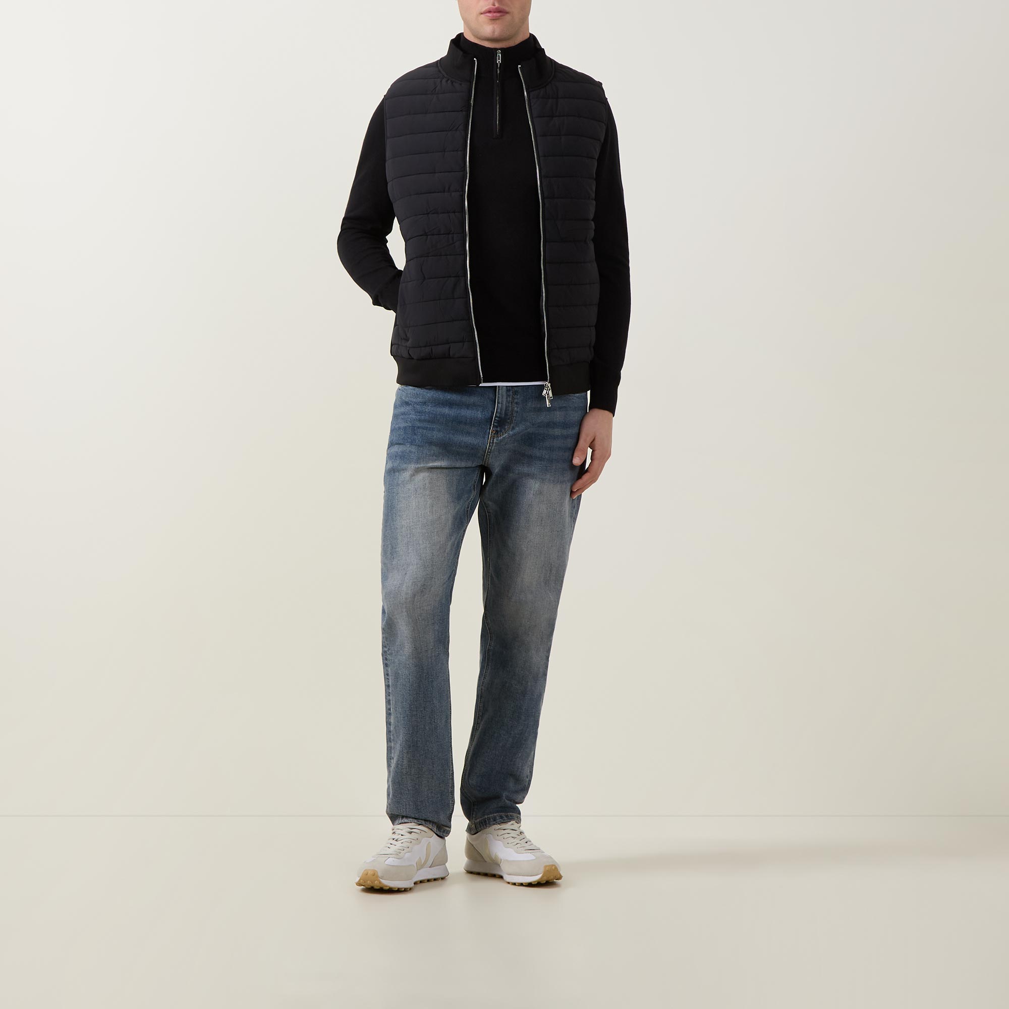 - Funnel neckline, long sleeves, half-zip fastening, ribbed trims, straight hemline
