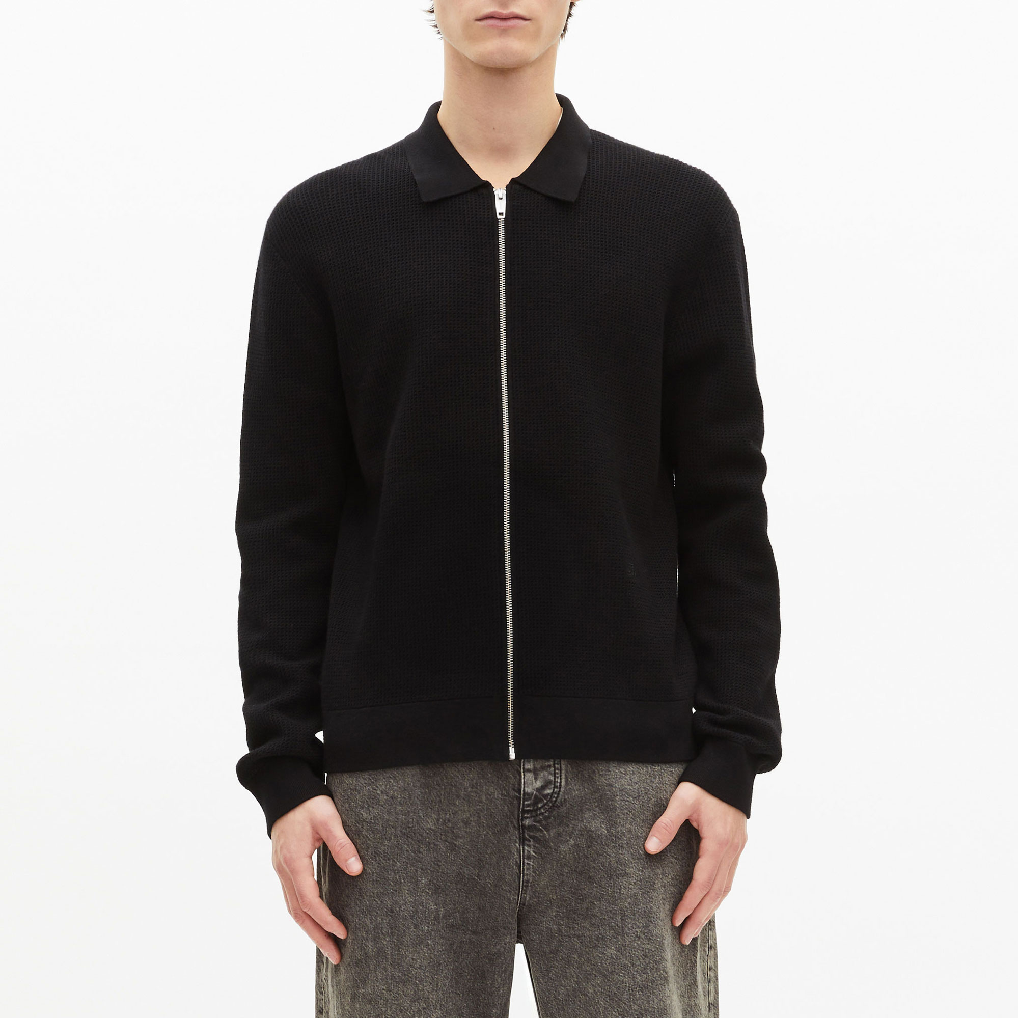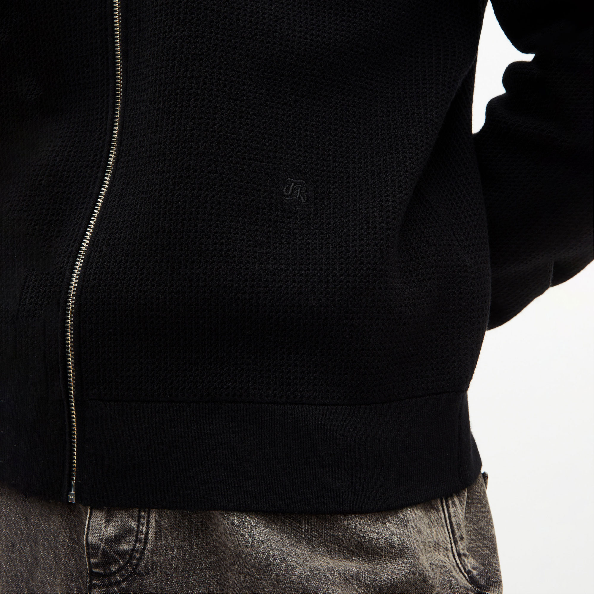 - Honeycomb pattern, classic collar, zip fastening, tone-on-tone logo embroidery detail, ribbed edges