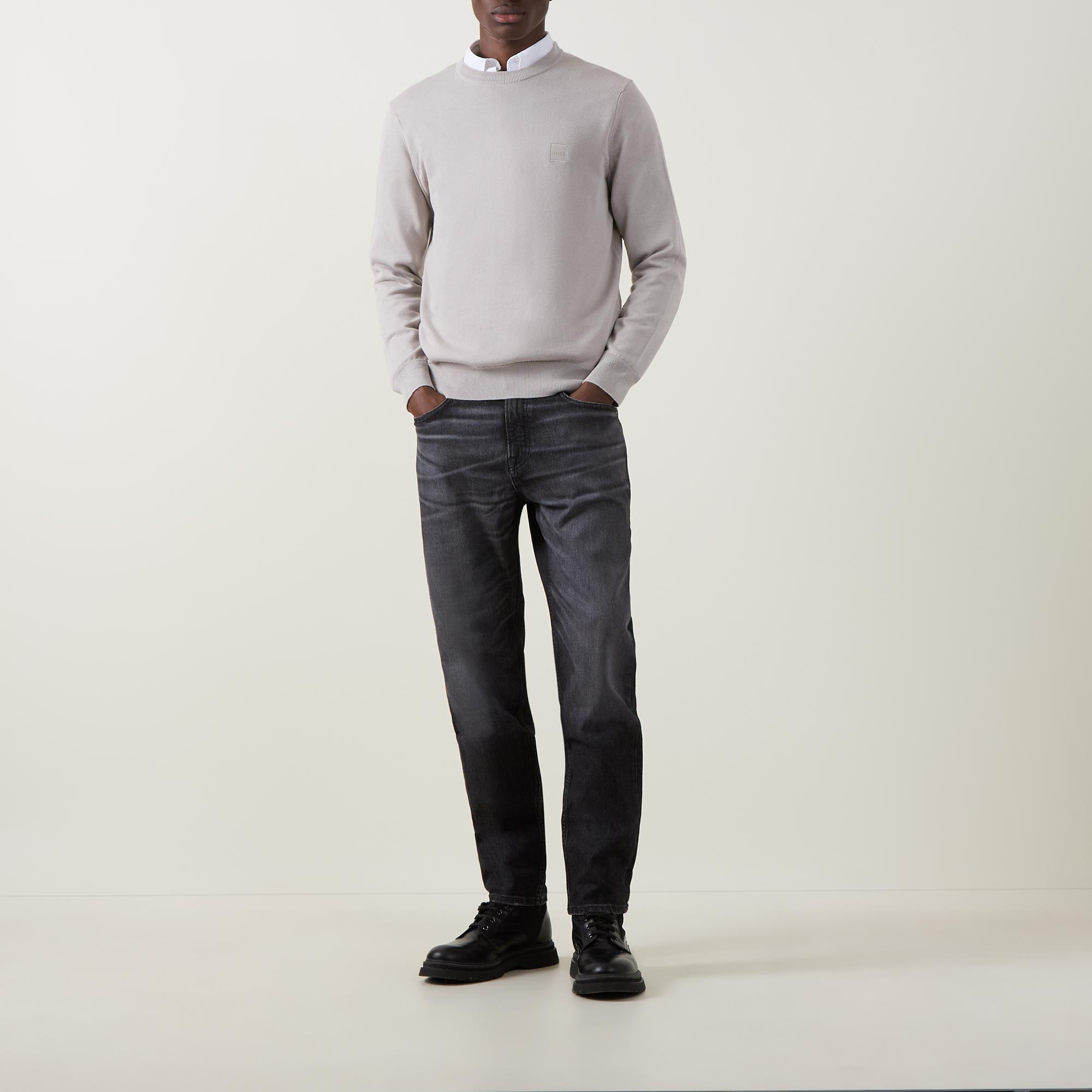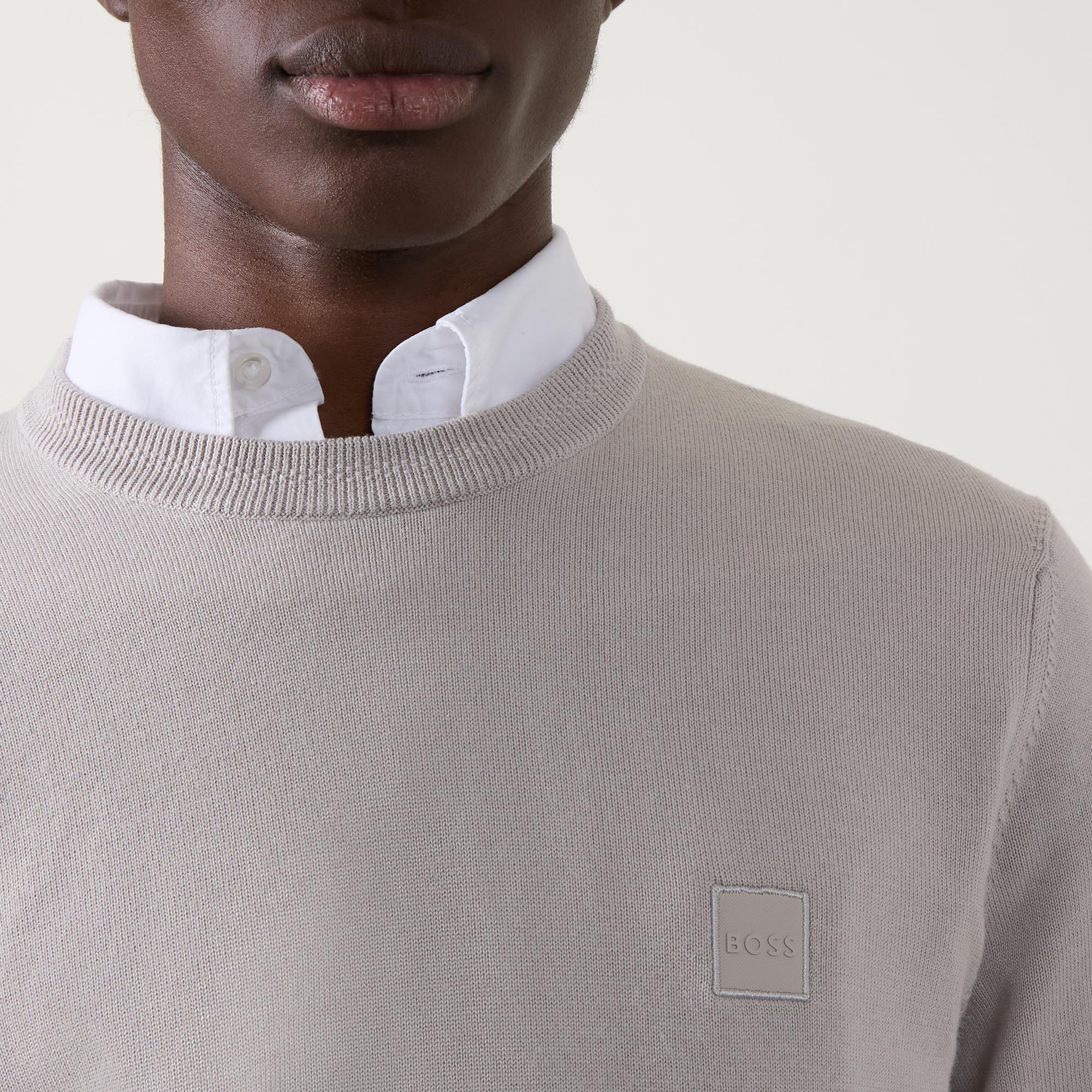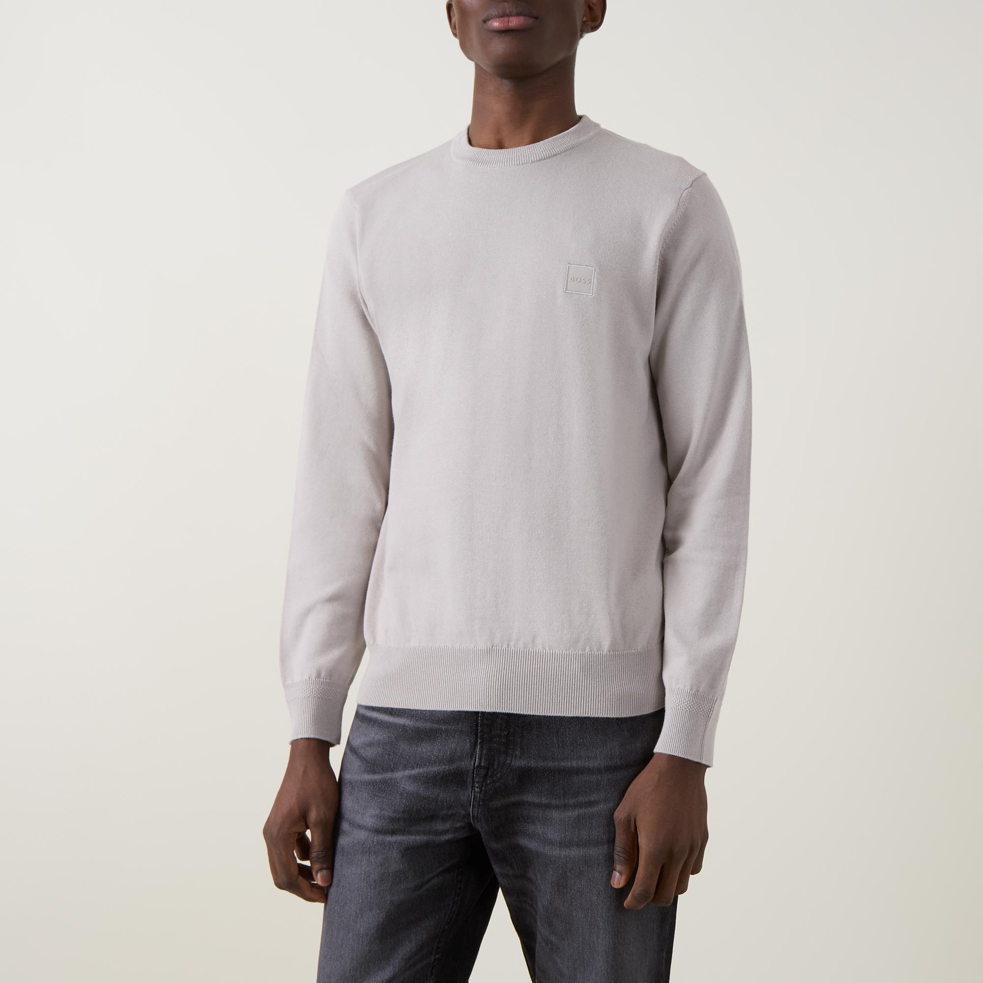 - Logo patch, crew neckline, long sleeves, ribbed trims, straight hemline