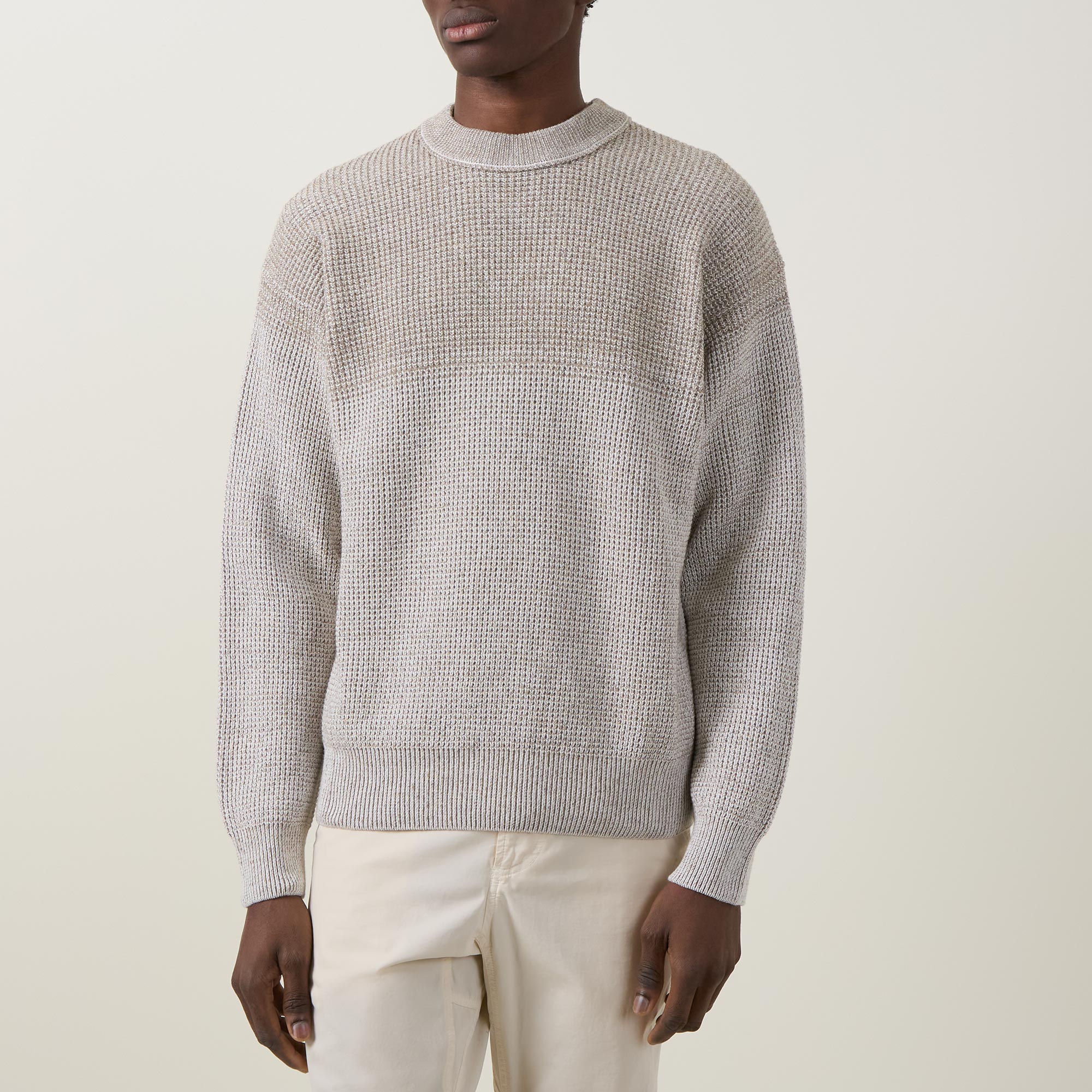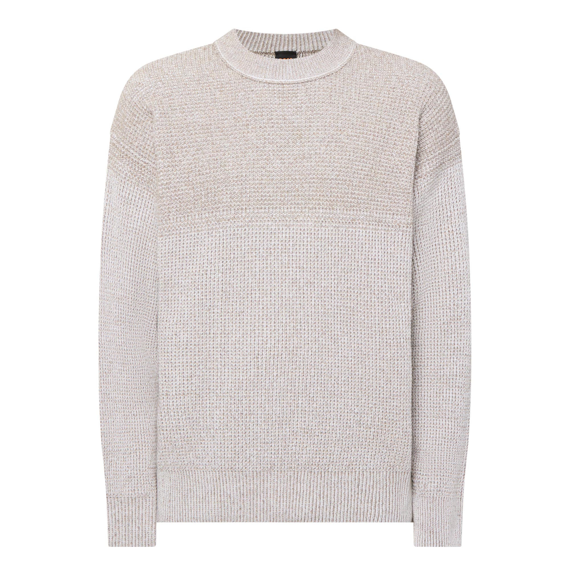 - Crew neckline, long sleeves, ribbed trims, knit structure, logo detail