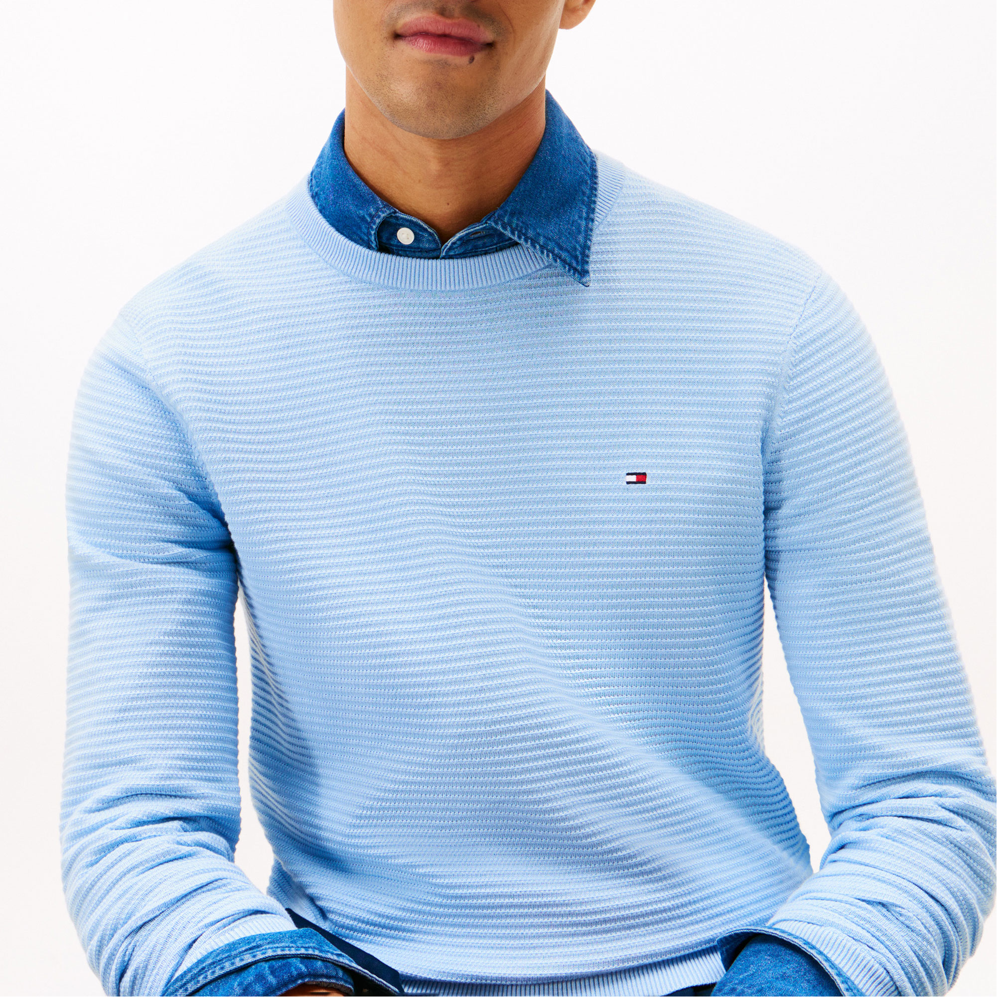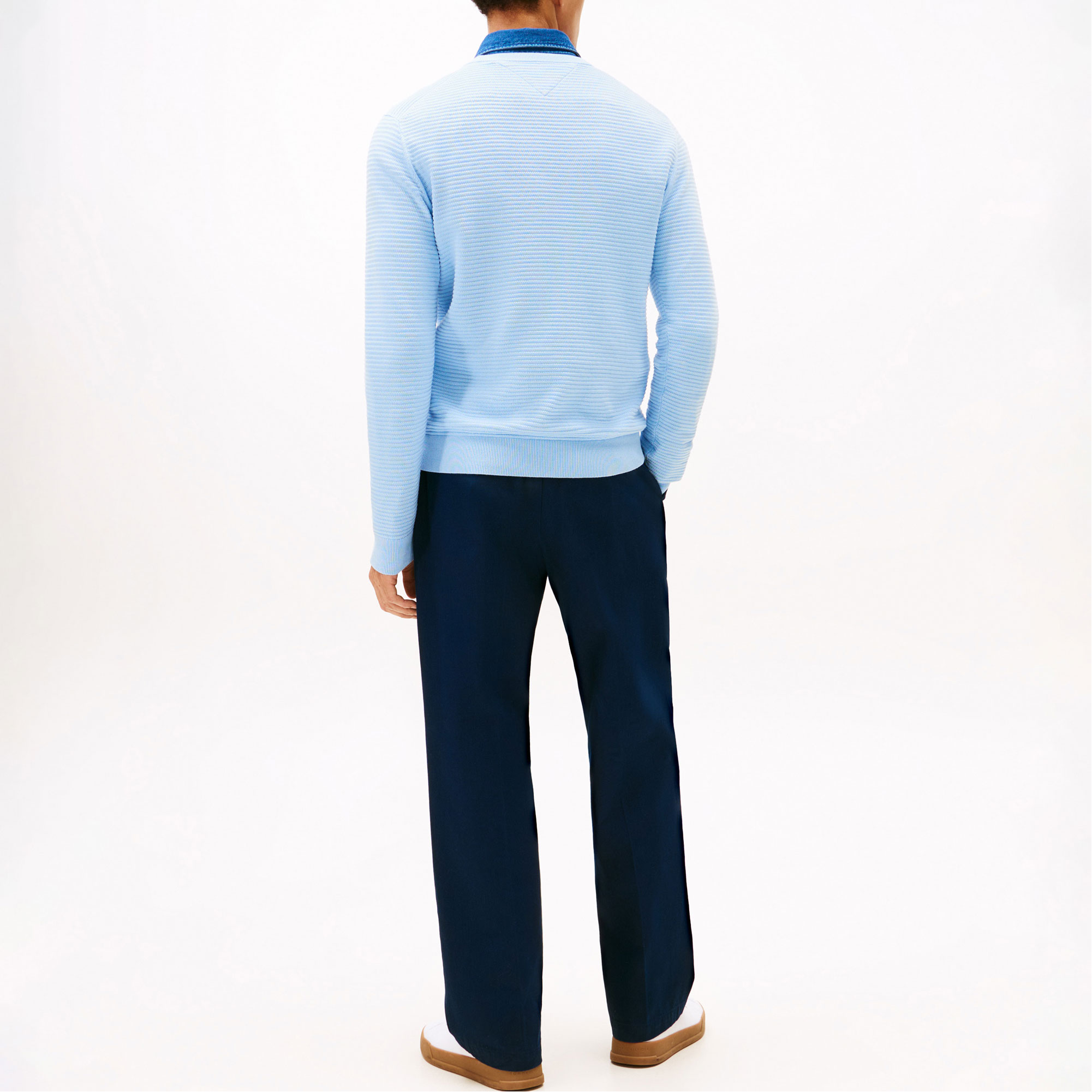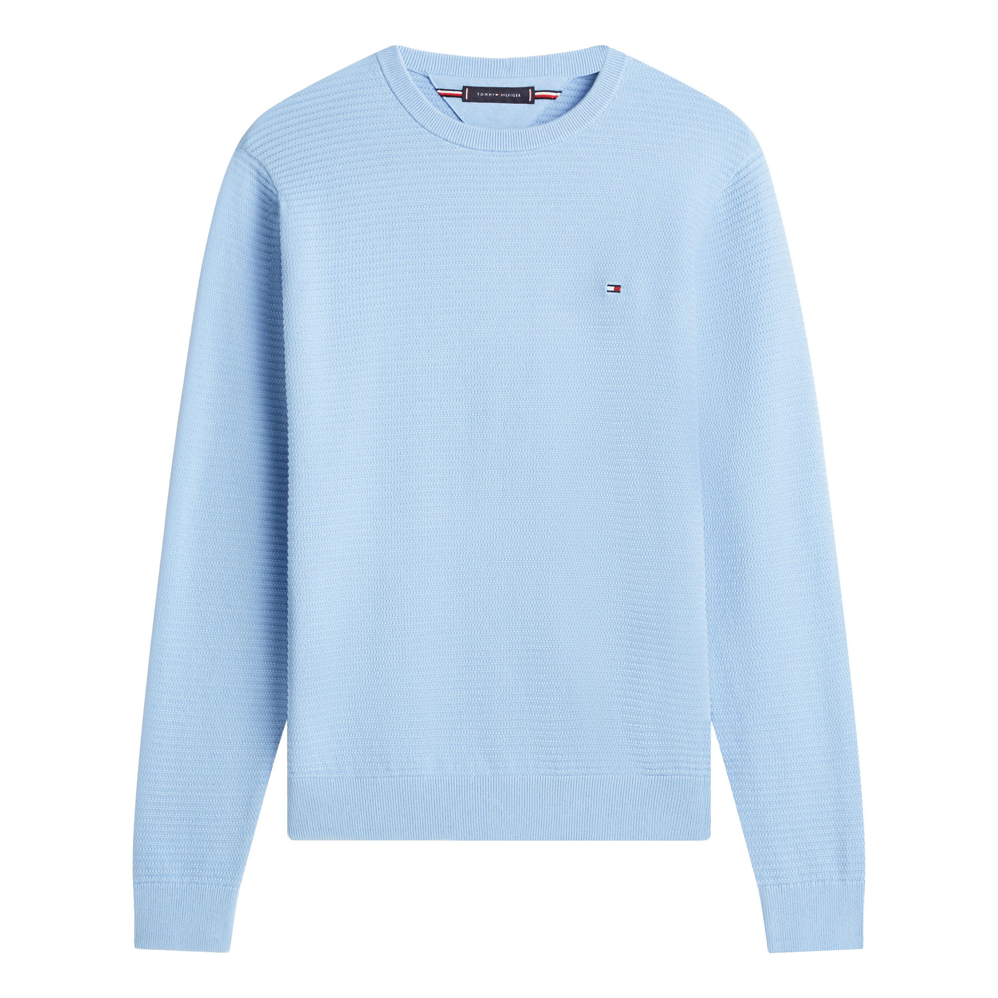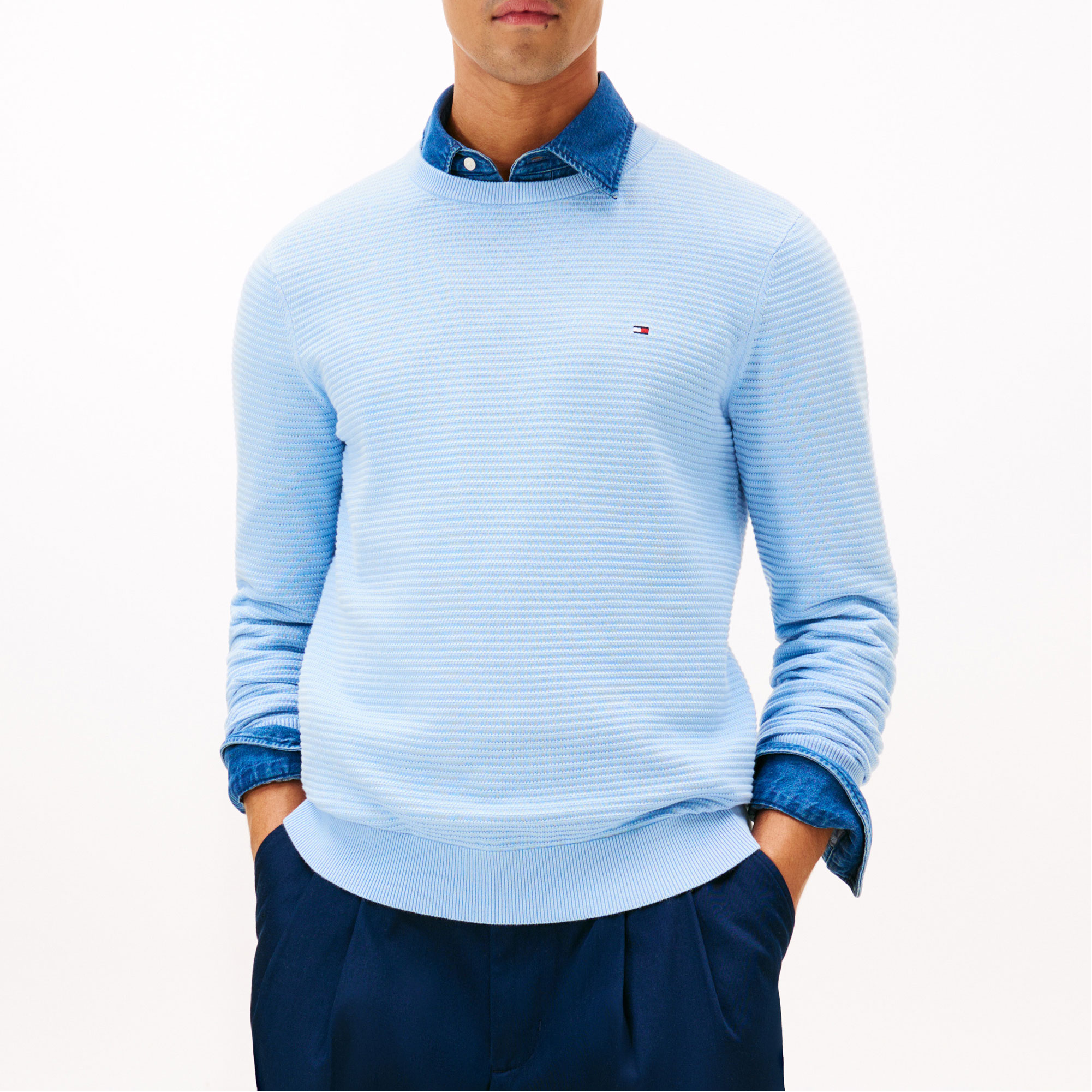 - Textured knit, crew neck, rib-knit collar, cuffs and hem, signature tape inside neckline, logo detail