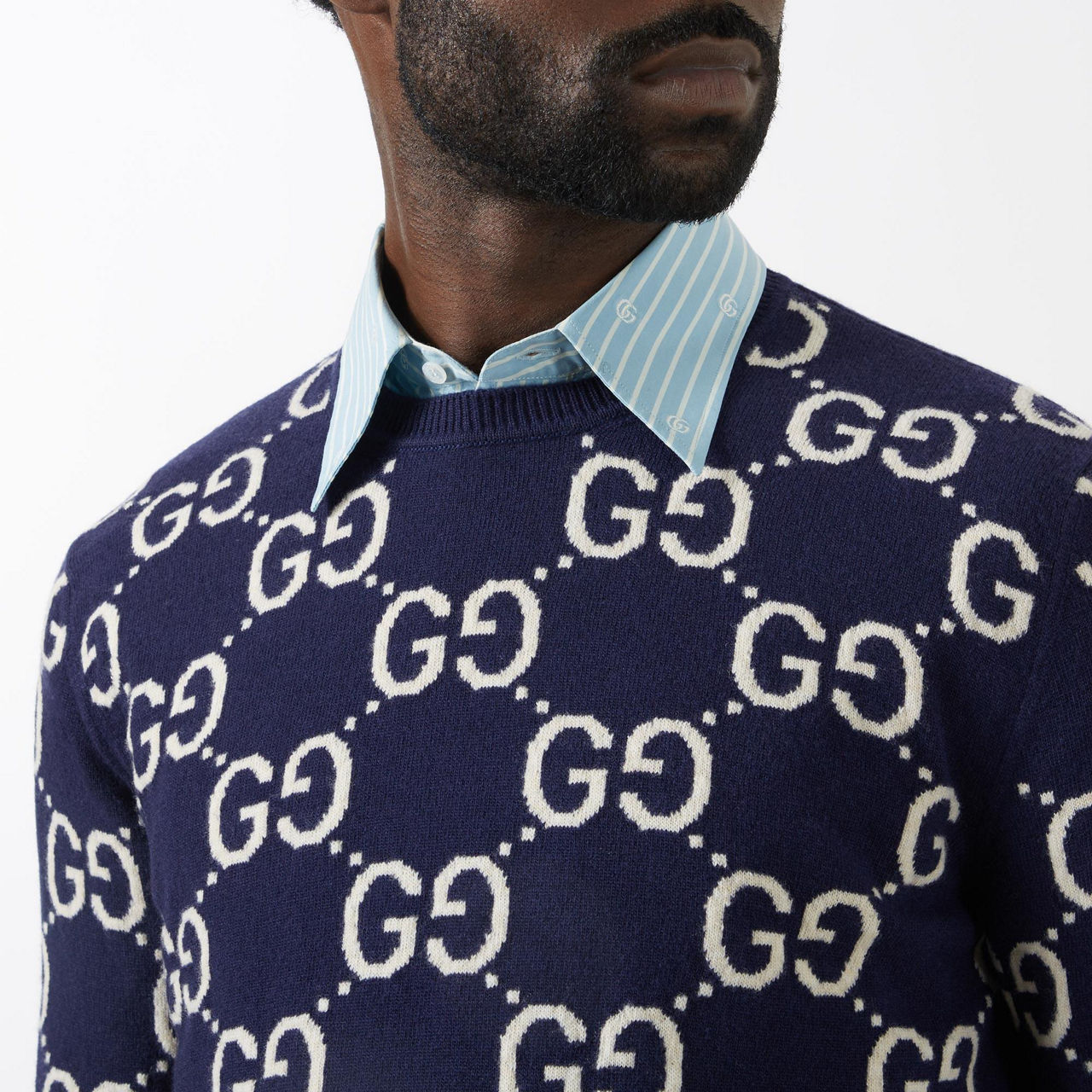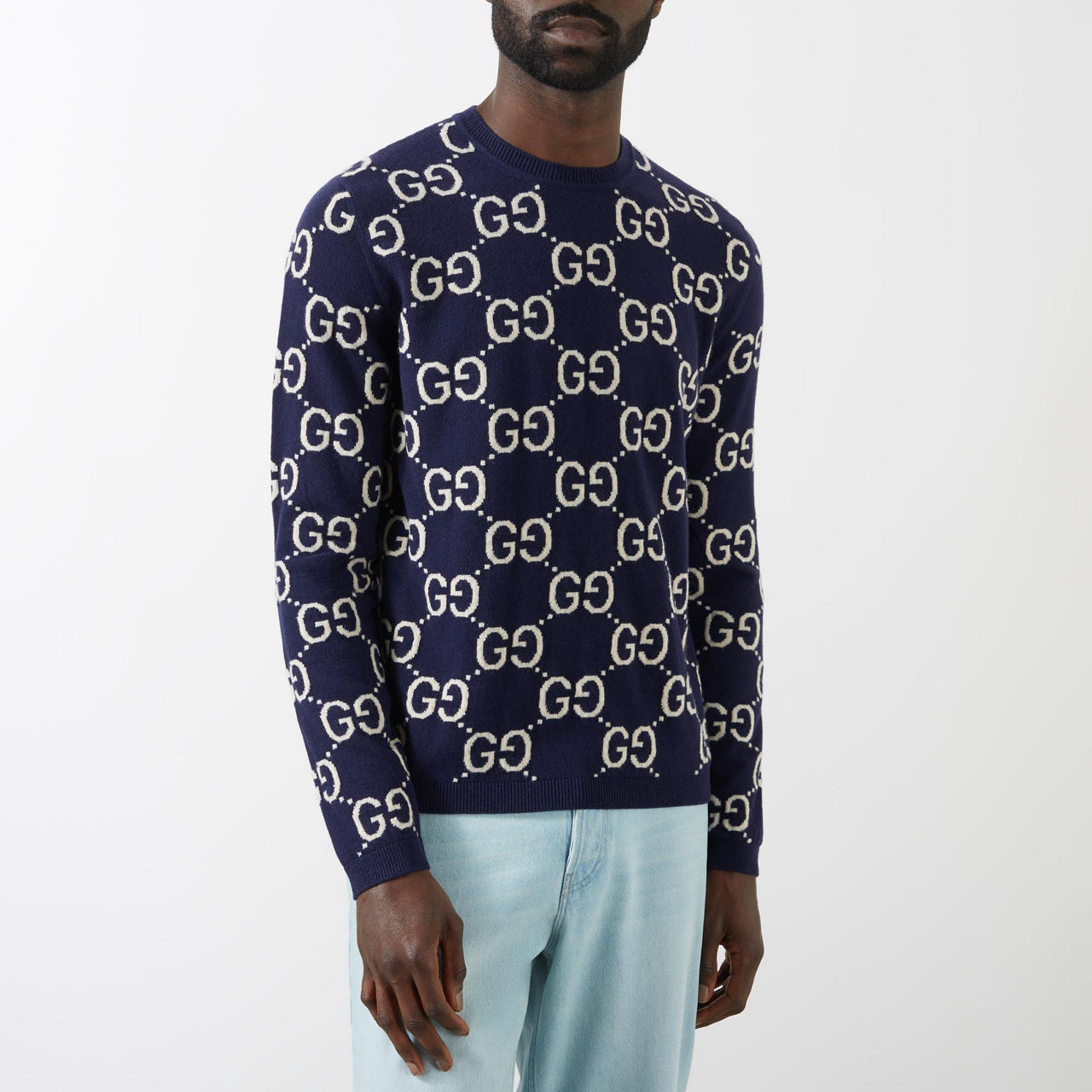 - Crew neckline, ribbed trims, knit structure, interlocking G logo motif